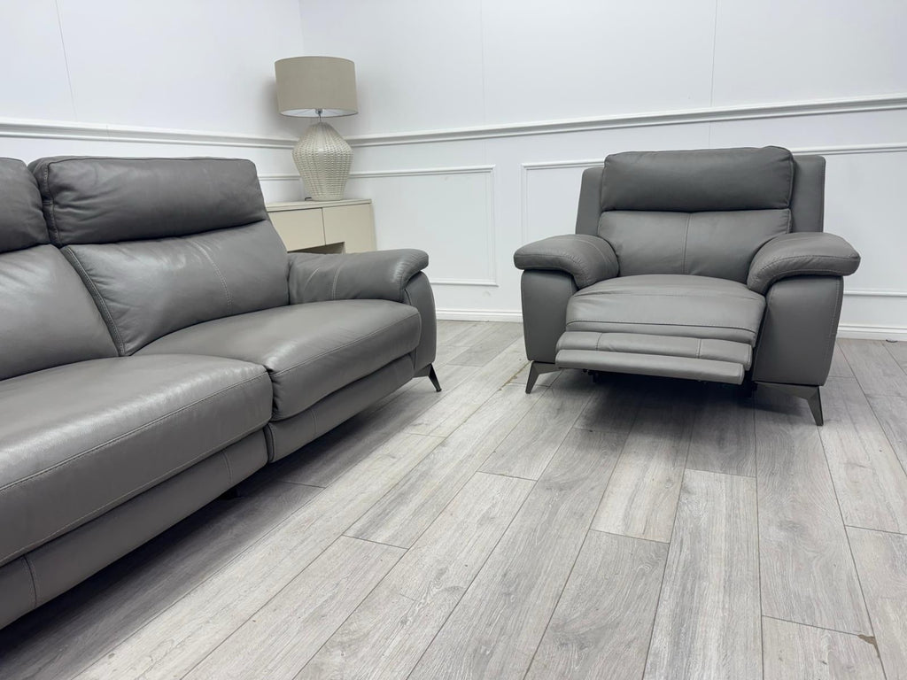 Furniture Village Missouri Power Recliner 3 Seater Sofa Set & Armchair Grey