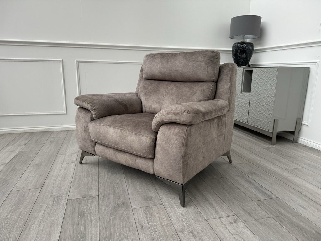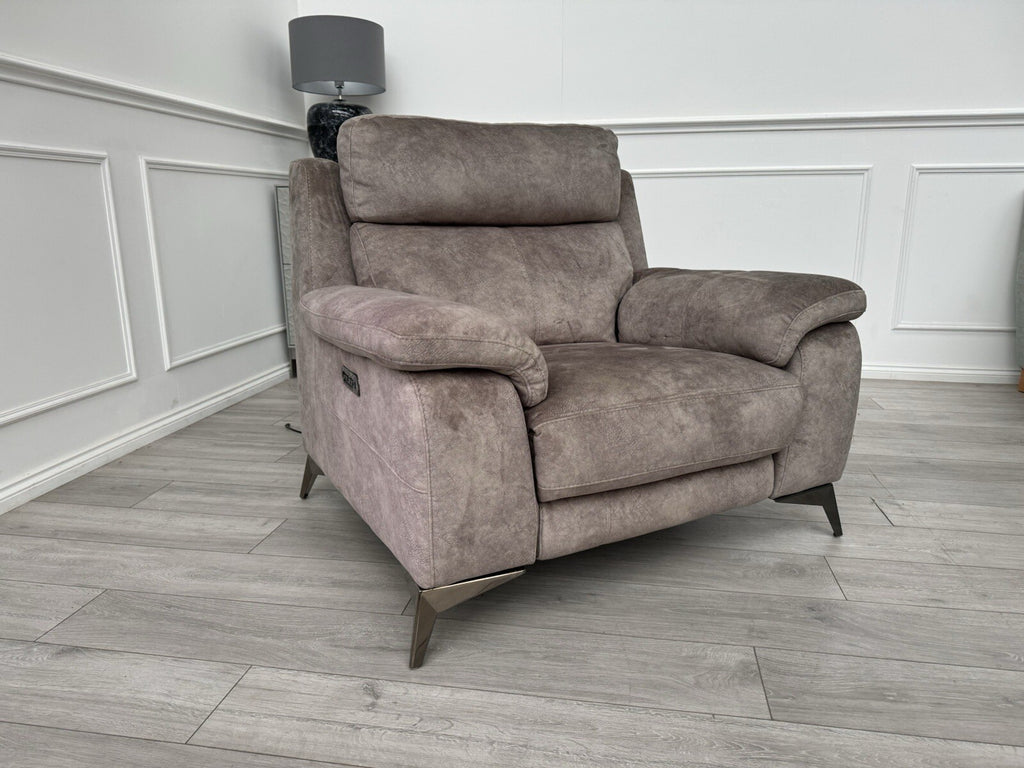 Furniture Village Missouri Power Recliner + Headrest Mink/Brown Fabric Armchair