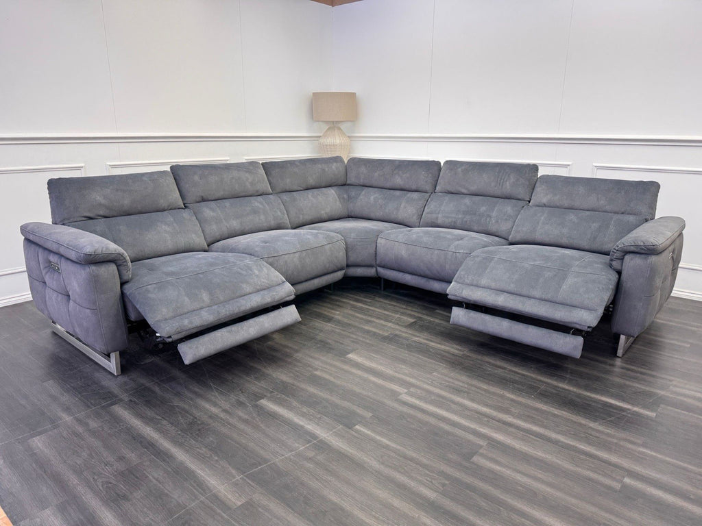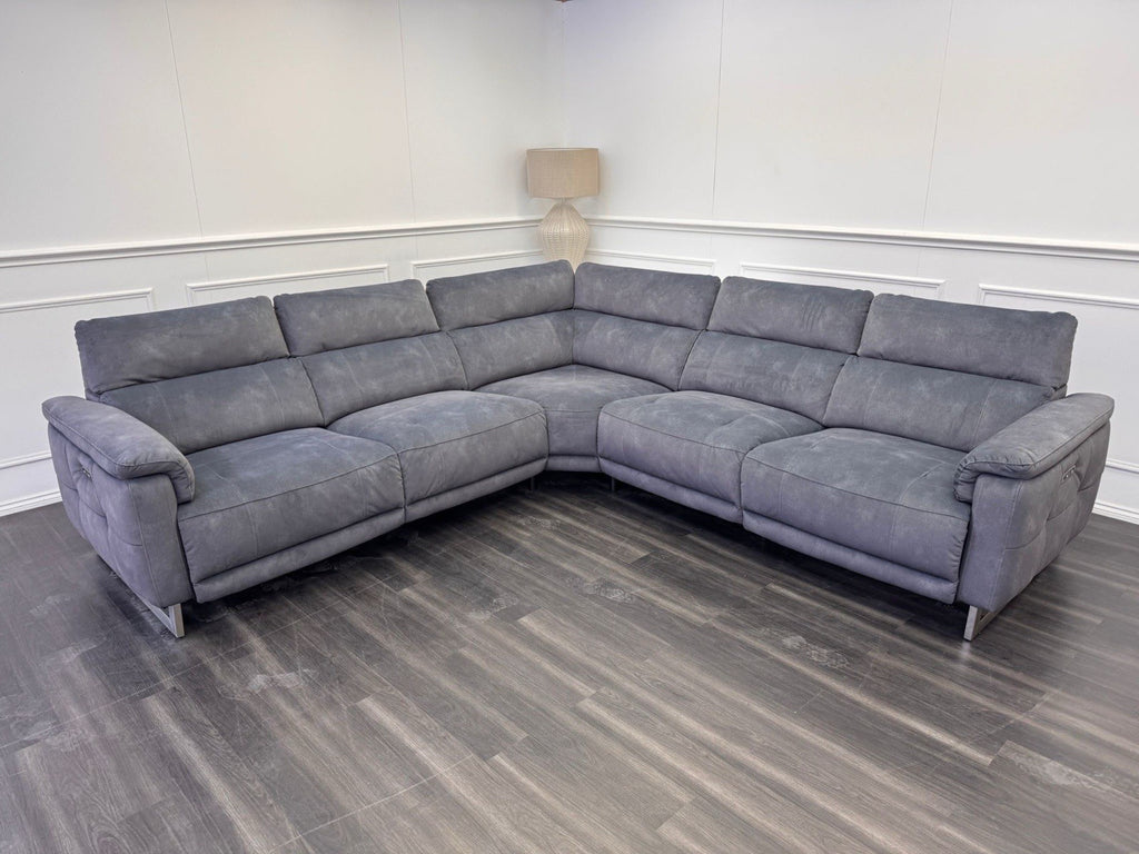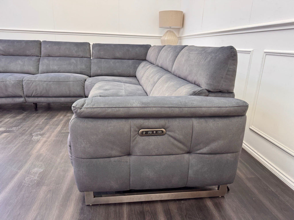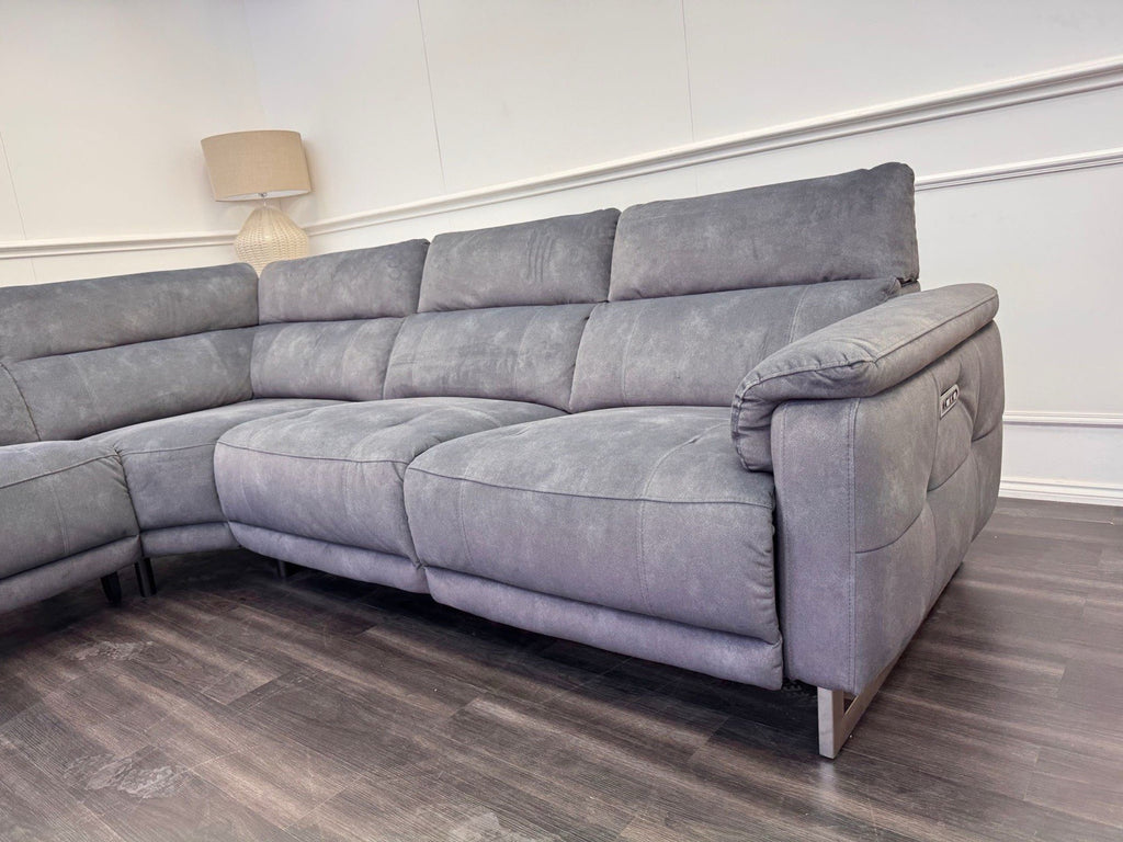 Furniture Village Moet Grey Fabric Power Recliner Corner Sofa Power Headrests