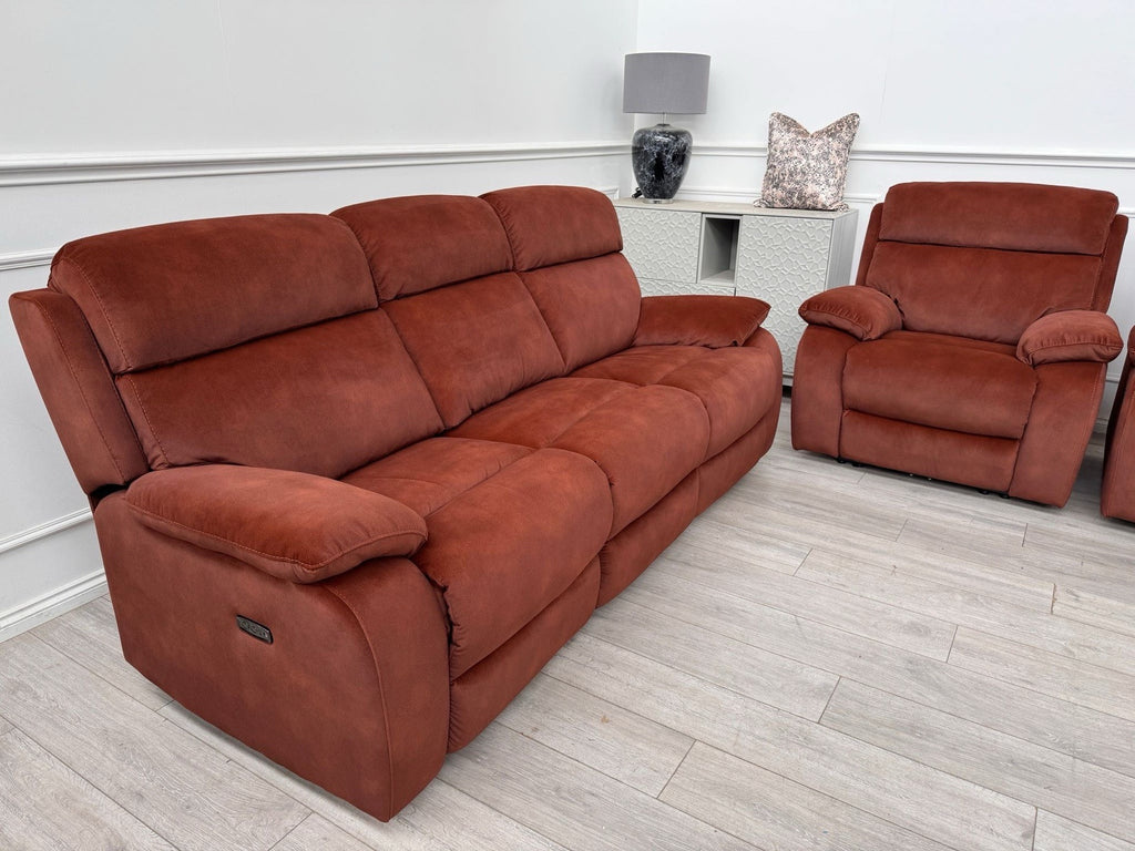 Furniture Village Moreno Burnt Orange Power Recliner 3 Seater And 2x Armchairs