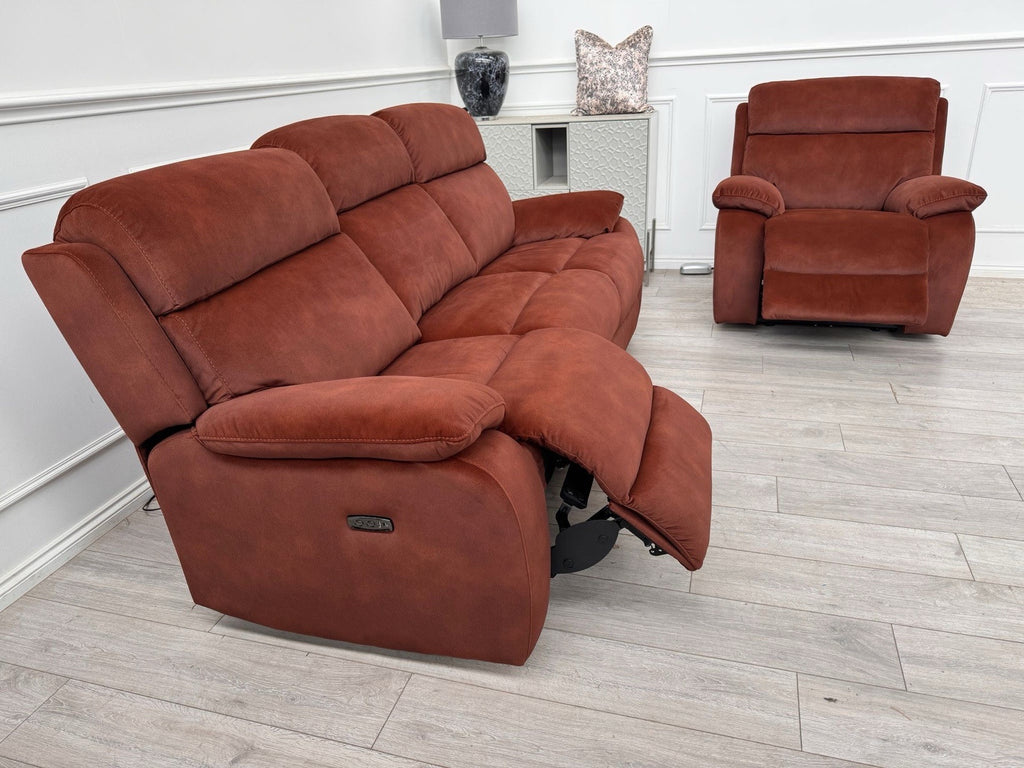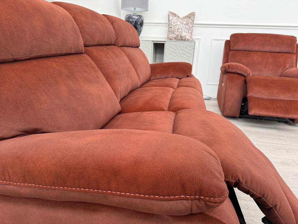 Furniture Village Moreno Burnt Orange Power Recliner 3 Seater And Armchair