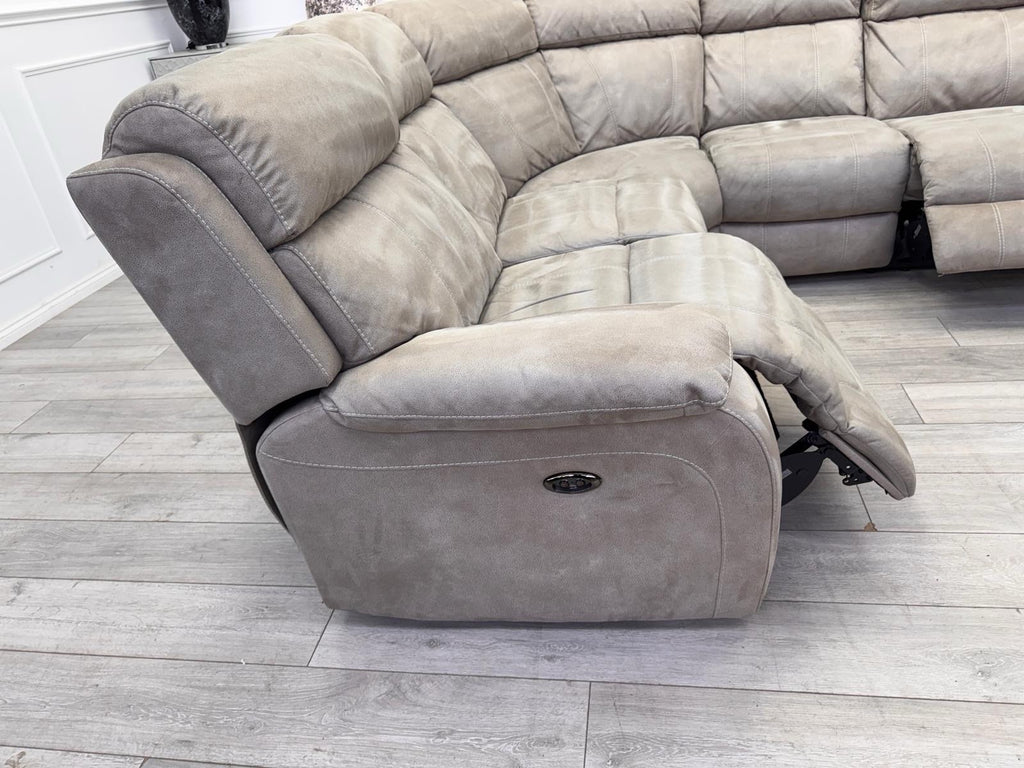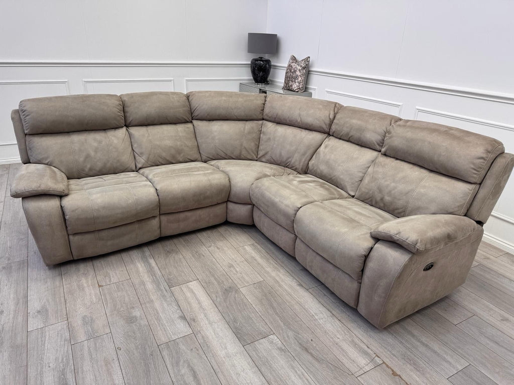 Furniture Village Moreno Power Reclining Corner Sofa In Beige Fabric