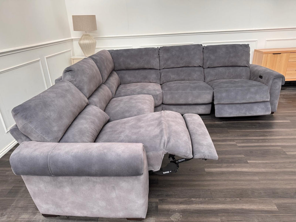 Furniture Village Nixon large Power Reclining Corner Sofa In grey Lux Velvet
