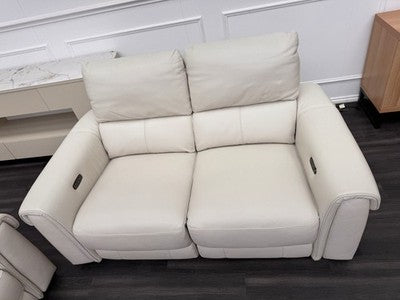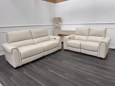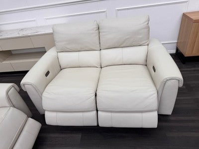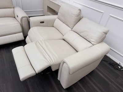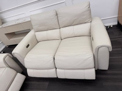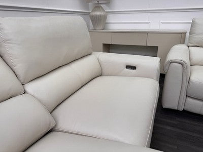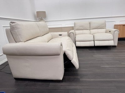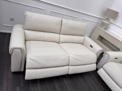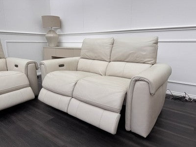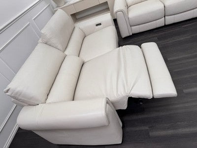 Furniture Village Nixon Leather 3 & 2 Seater Sofa Set Power Recliner Frost