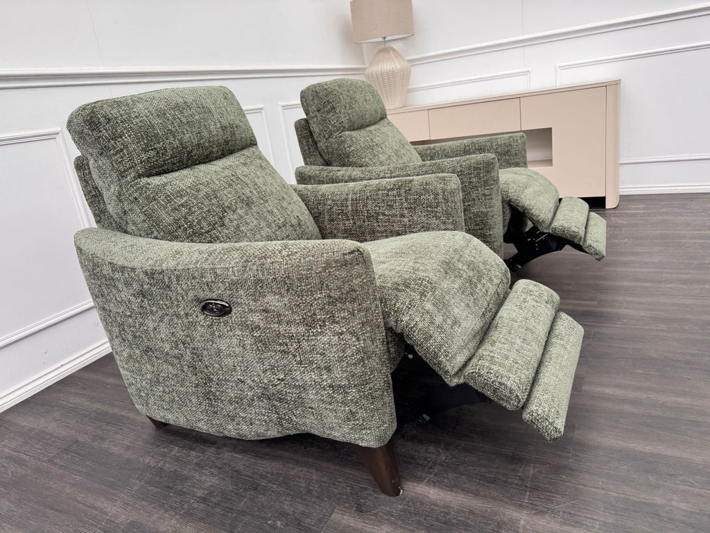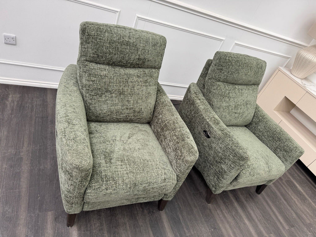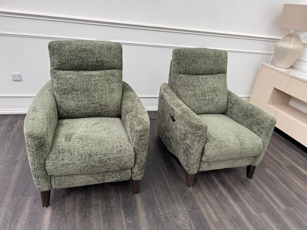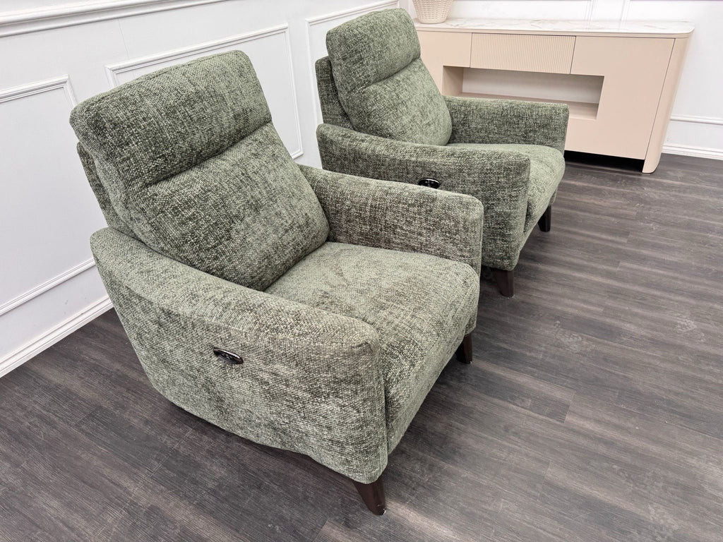 Furniture Village Pair Petit Olive Fabric Armchairs Power Recliner