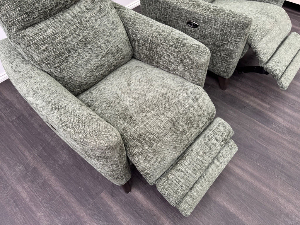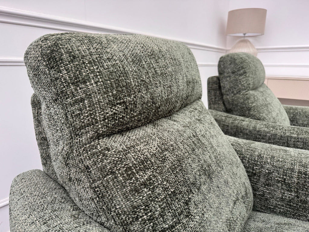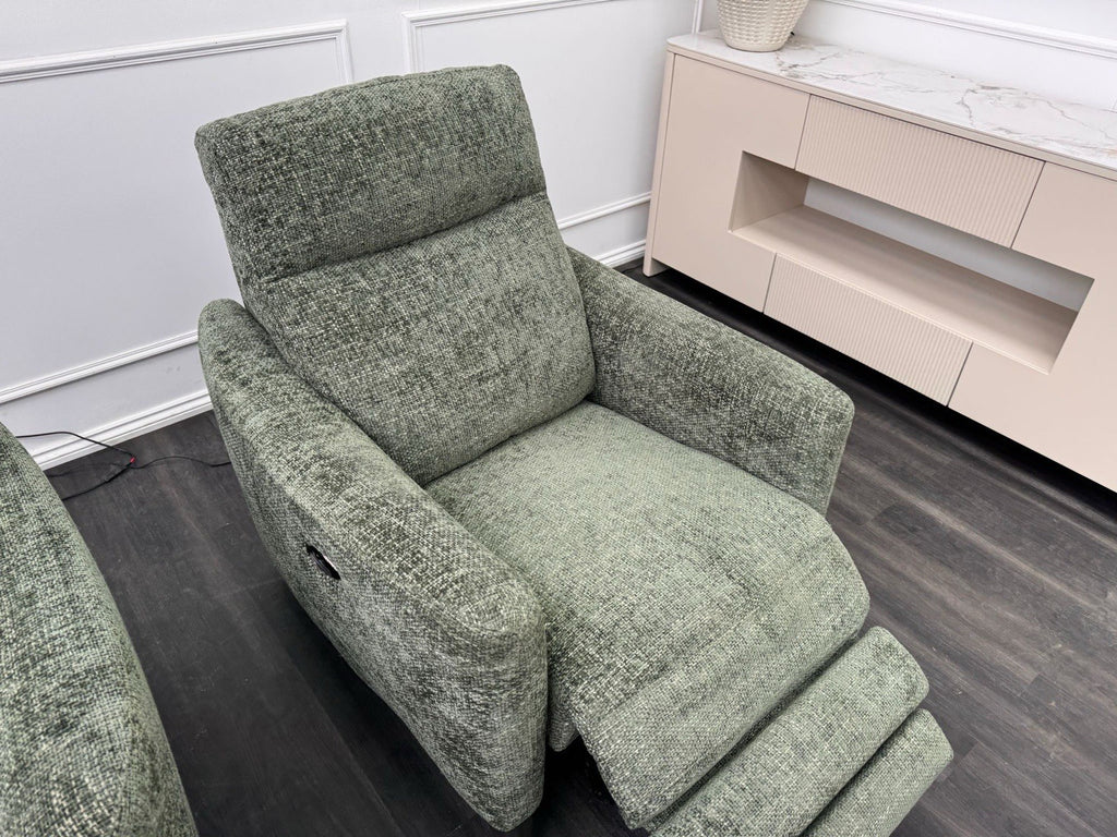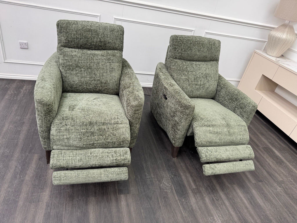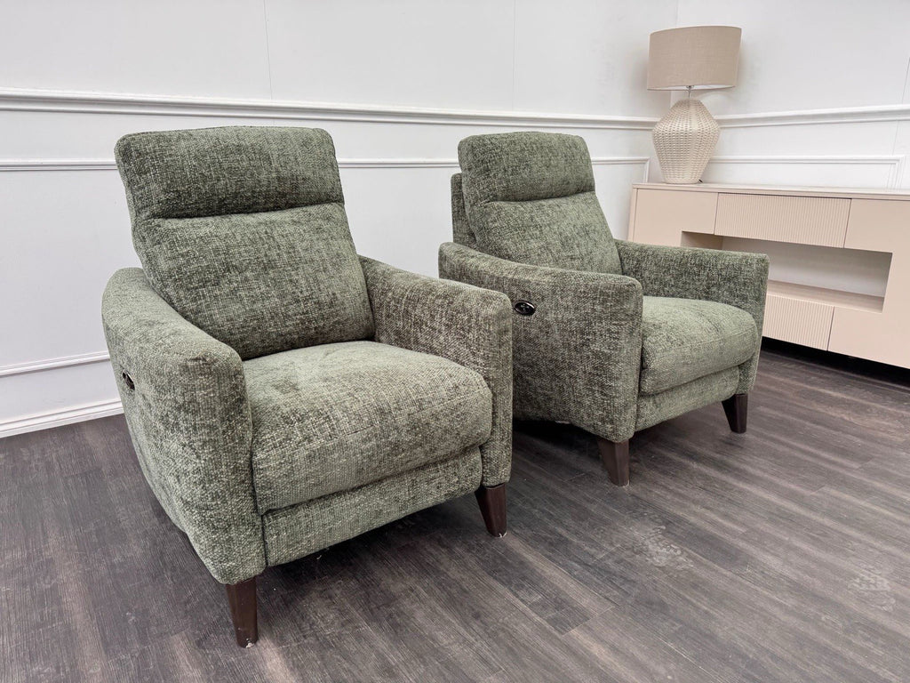 Furniture Village Pair Petit Olive Fabric Armchairs Power Recliner