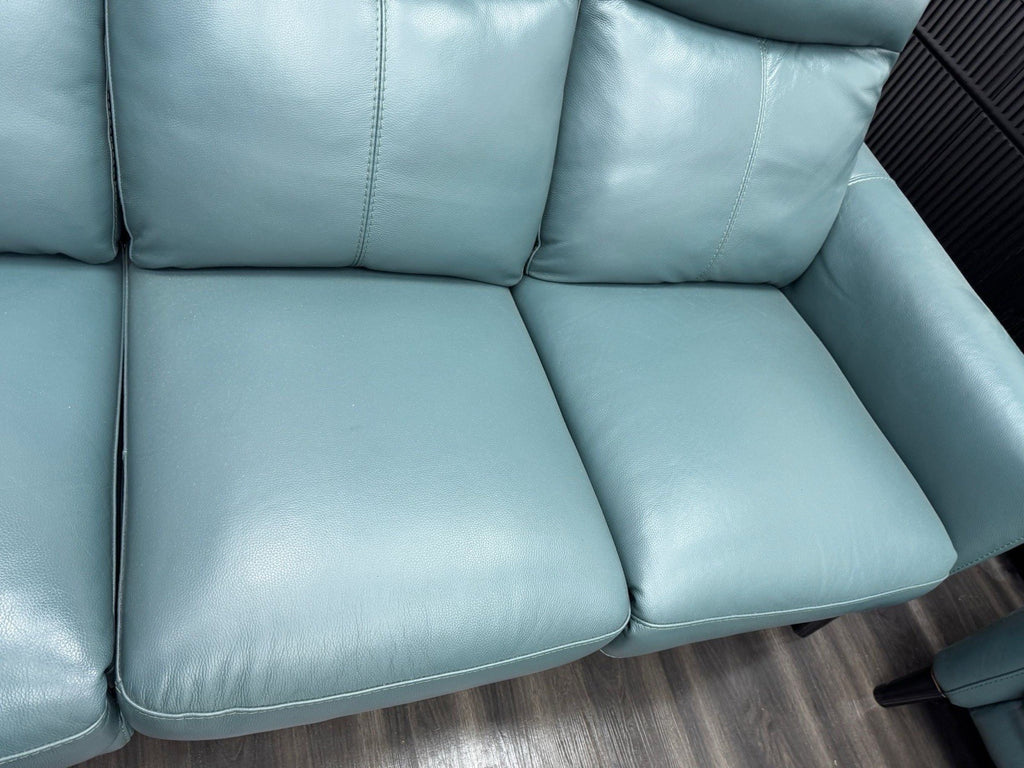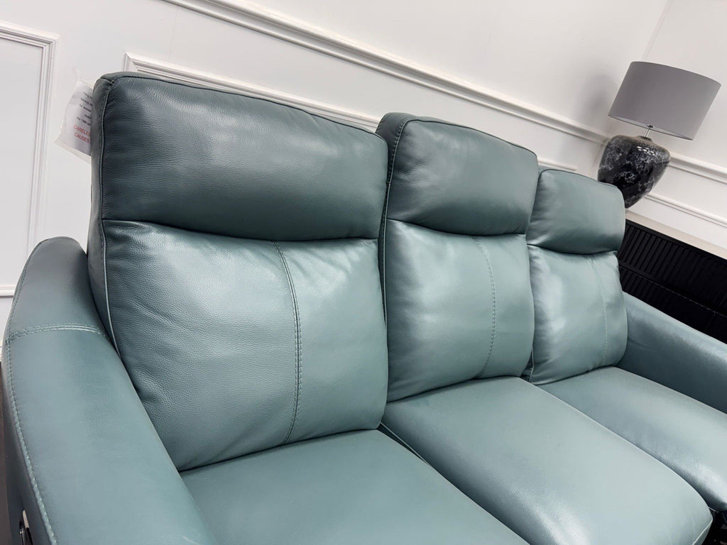 Furniture Village Petit 3 & 3 Seater Sofa Set Power Recliner Lake Green Leather