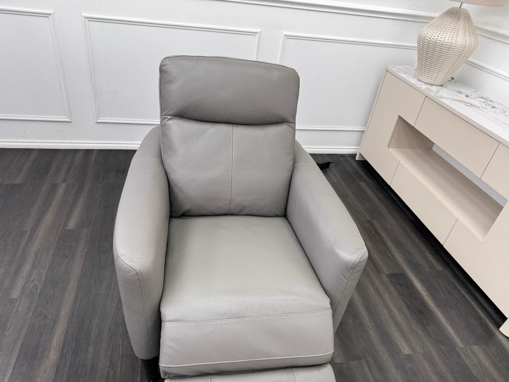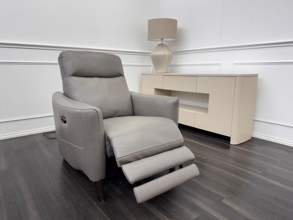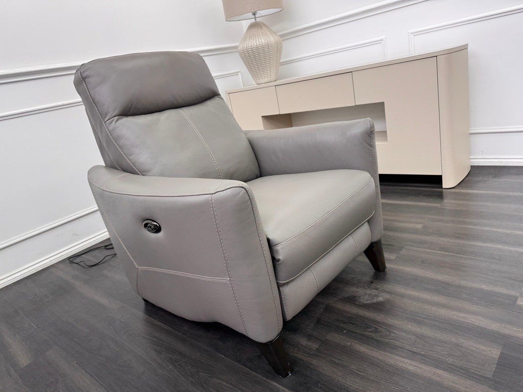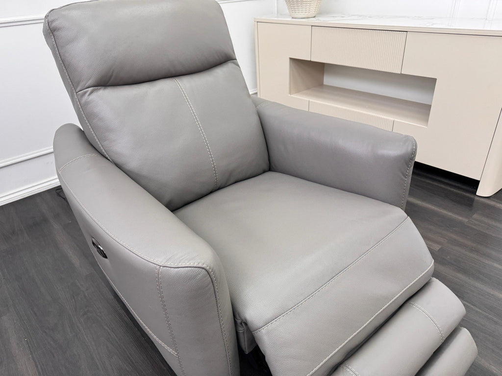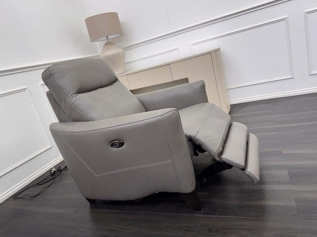 Furniture Village Petit Grey Leather Armchair Power Recliner