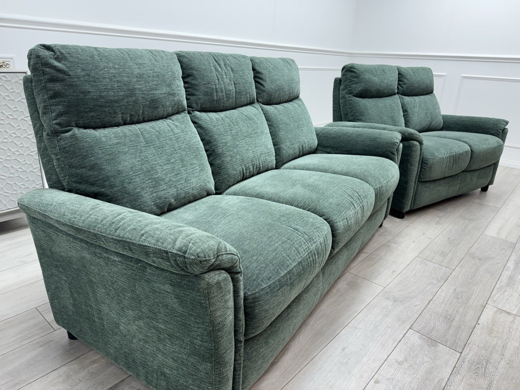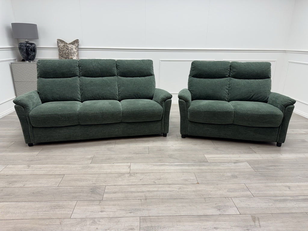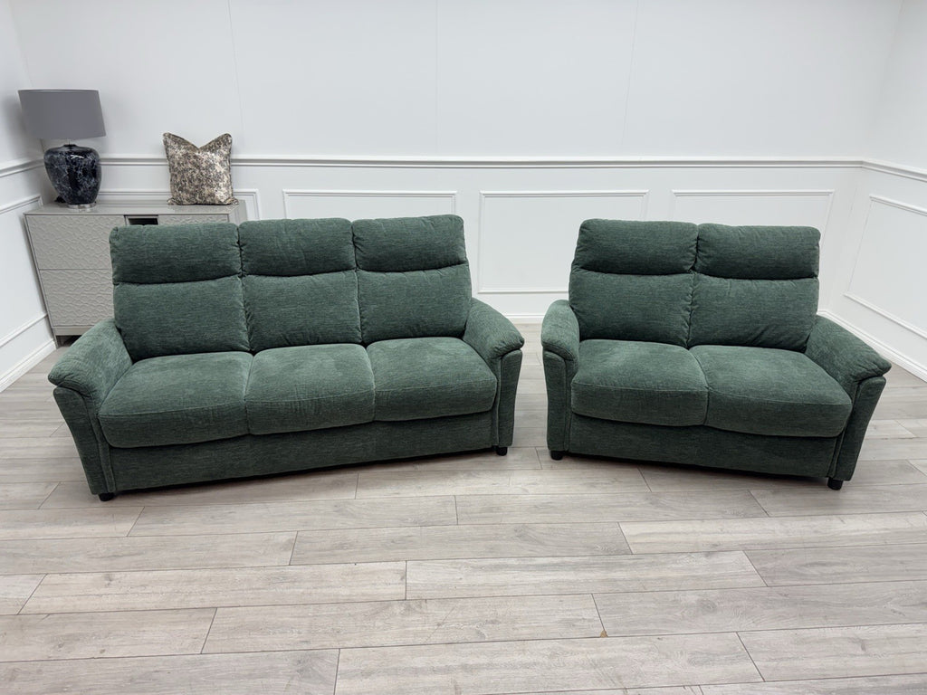 Furniture Village Piccolo Static 3 & 2 Seater Moss Green Fabric Sofa Set