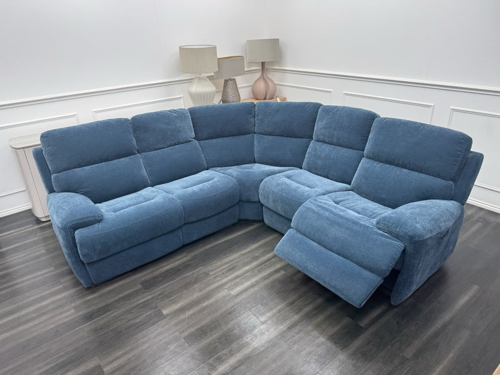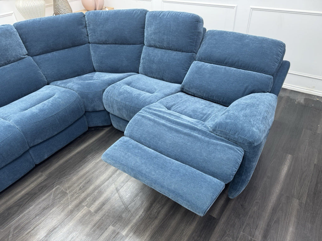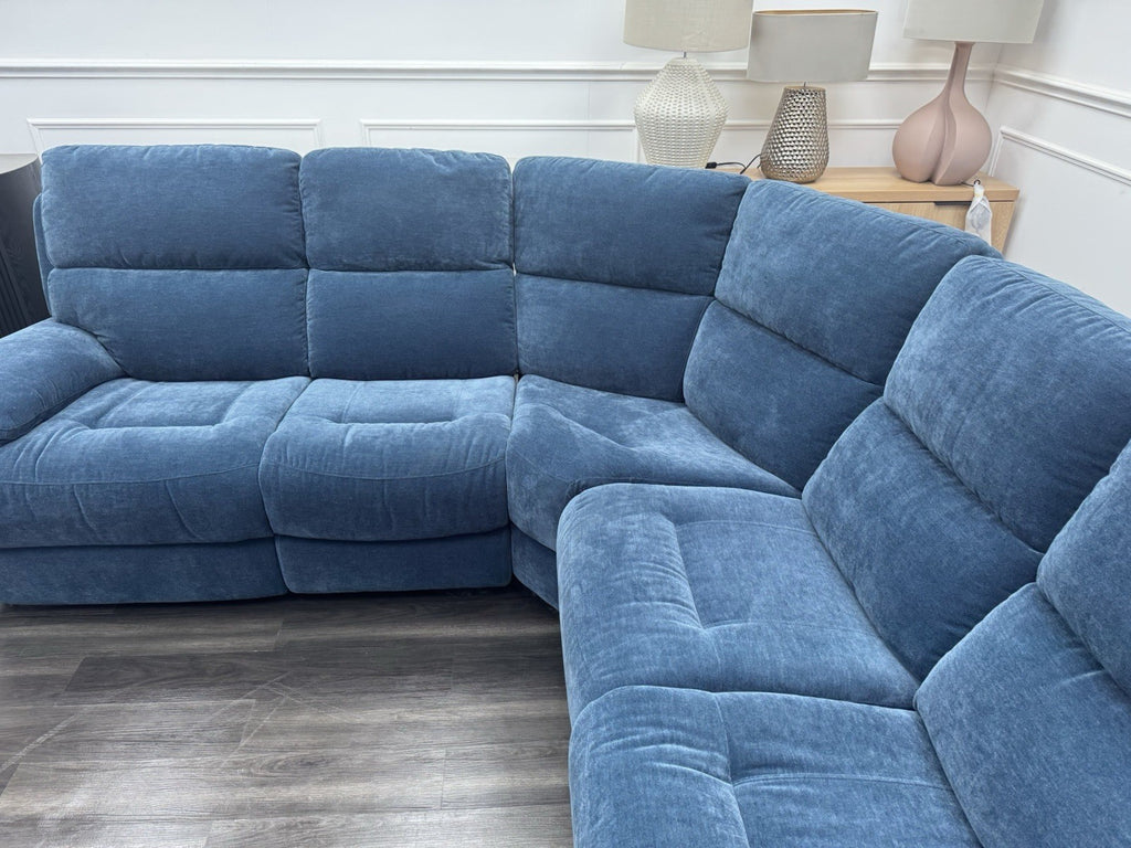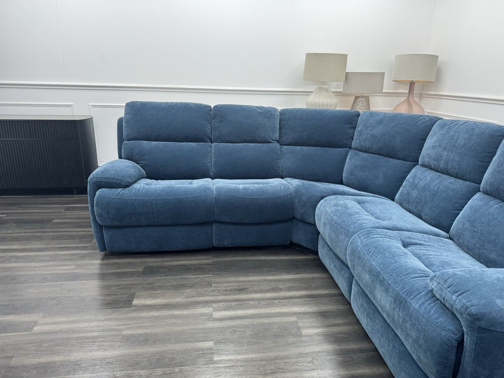 Furniture Village Power Recliner Corner Sofa In Navy Blue Chenille Fabric