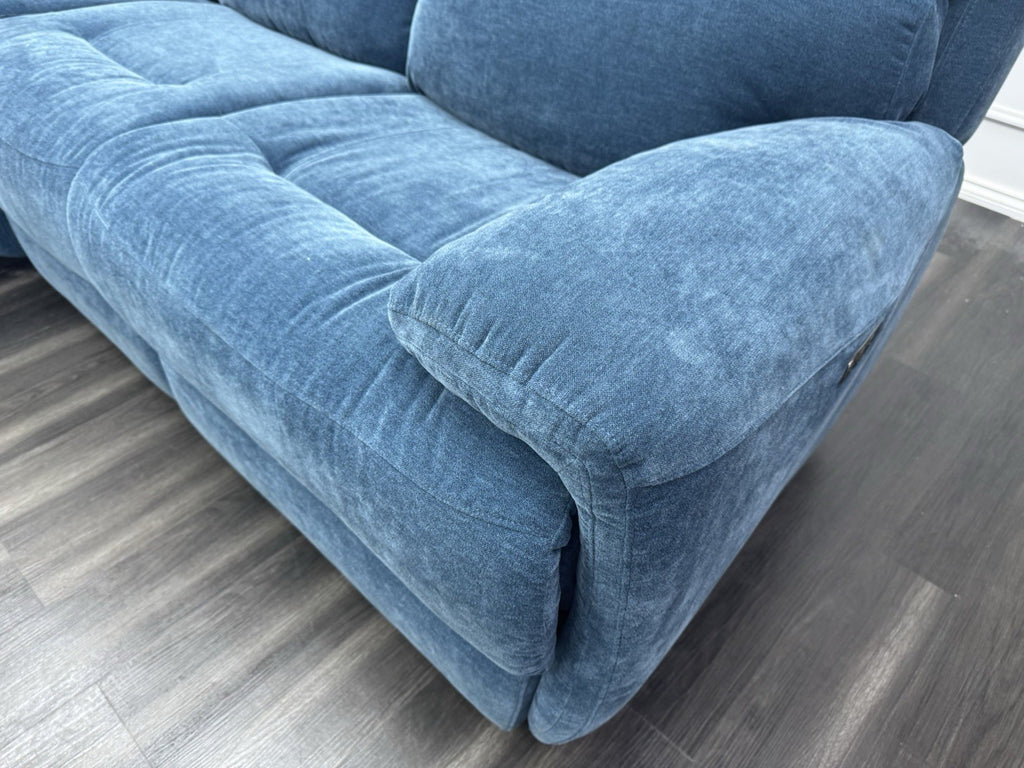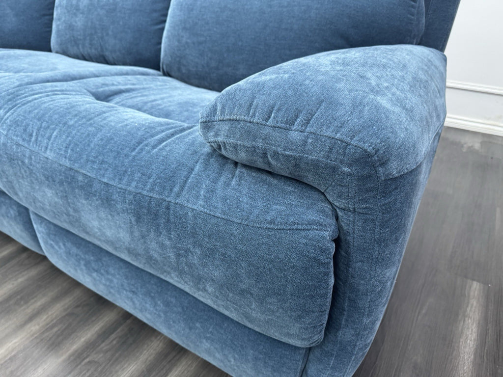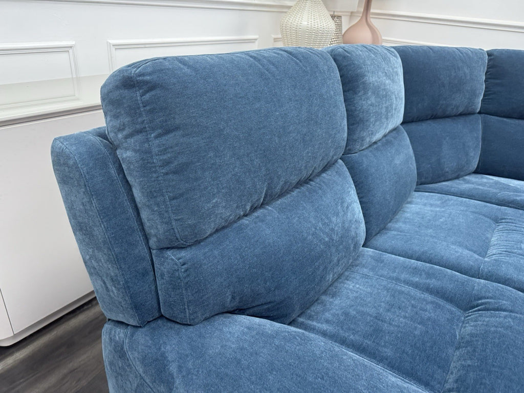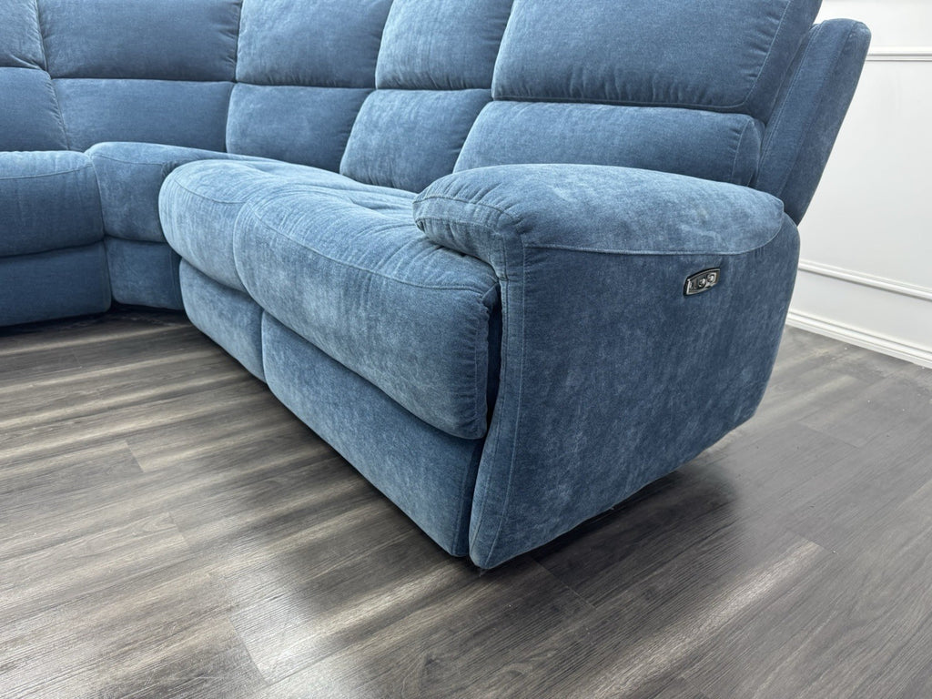 Furniture Village Power Recliner Corner Sofa In Navy Blue Chenille Fabric