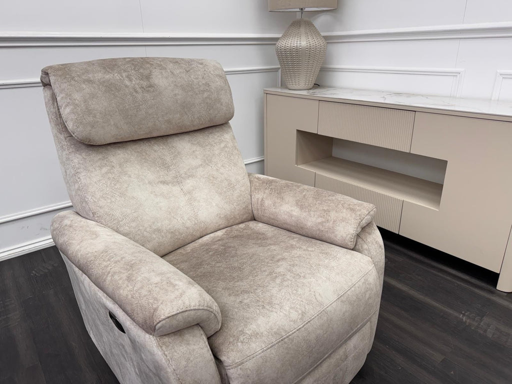 Furniture Village Rowen Beige Fabric Armchair Power Recliner+Swivel+Rocking