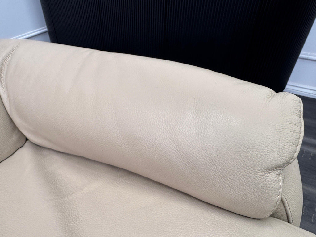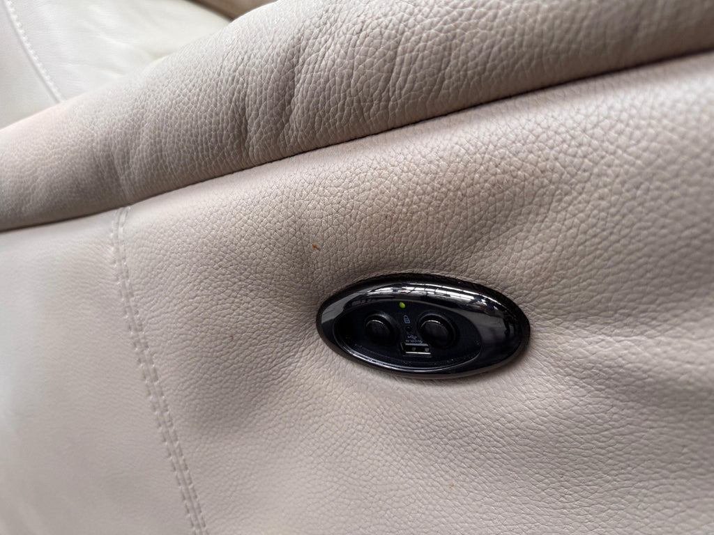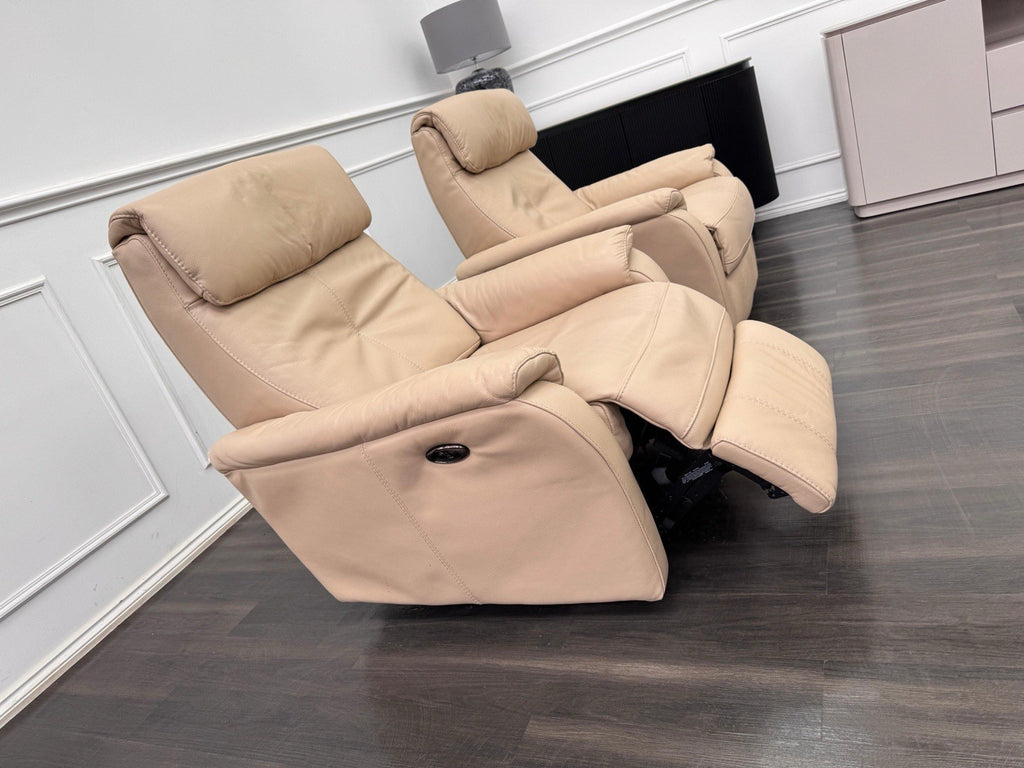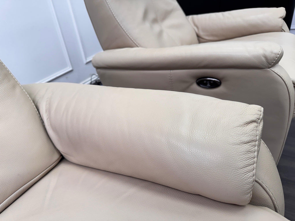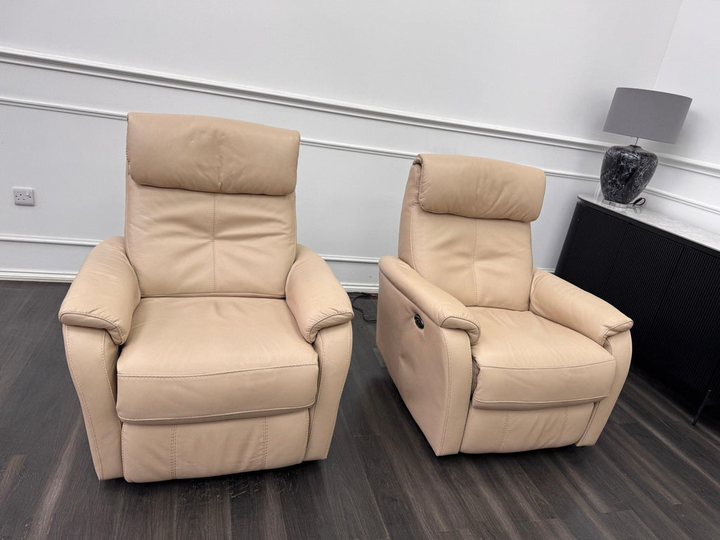 Furniture Village Rowen Beige Leather Pair Of Armchairs Power Recliner