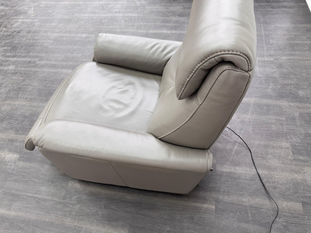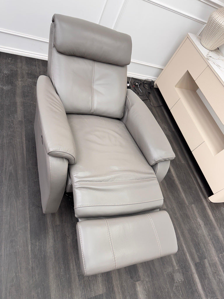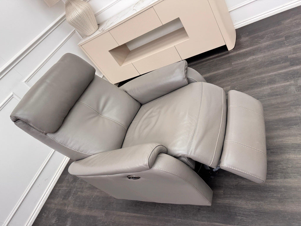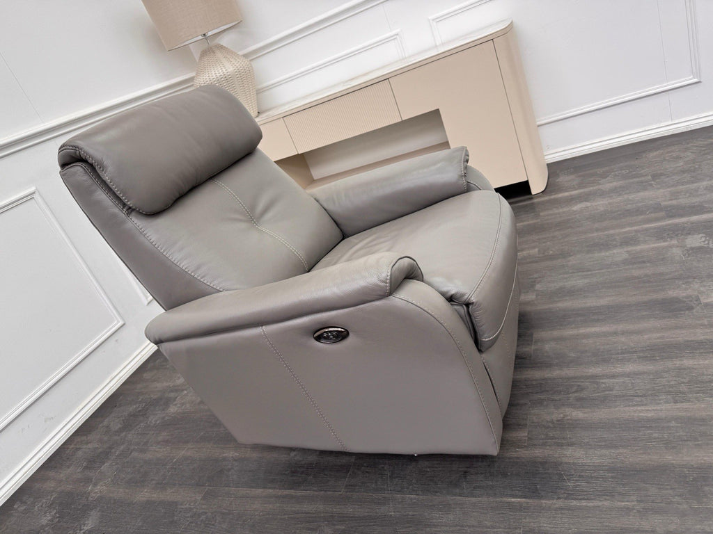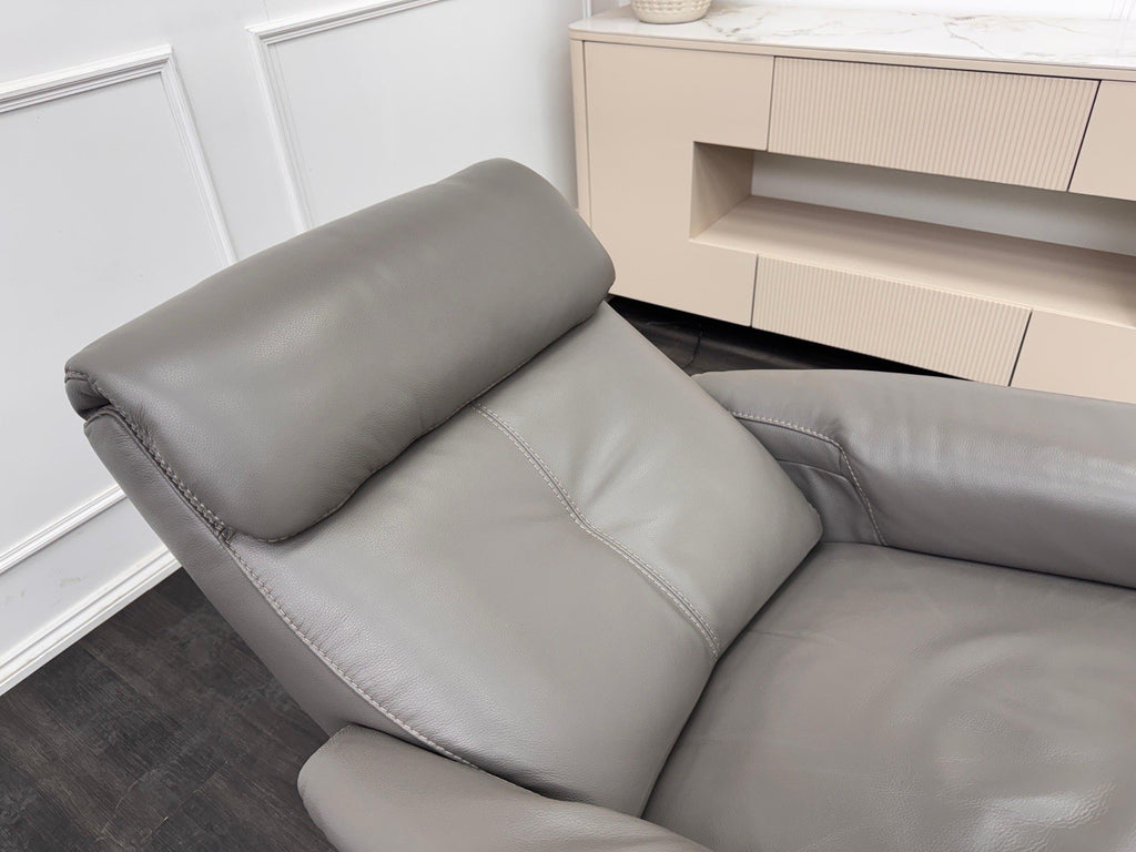 Furniture Village Rowen Grey Leather Armchair Power Recliner+Swivel+Rocking