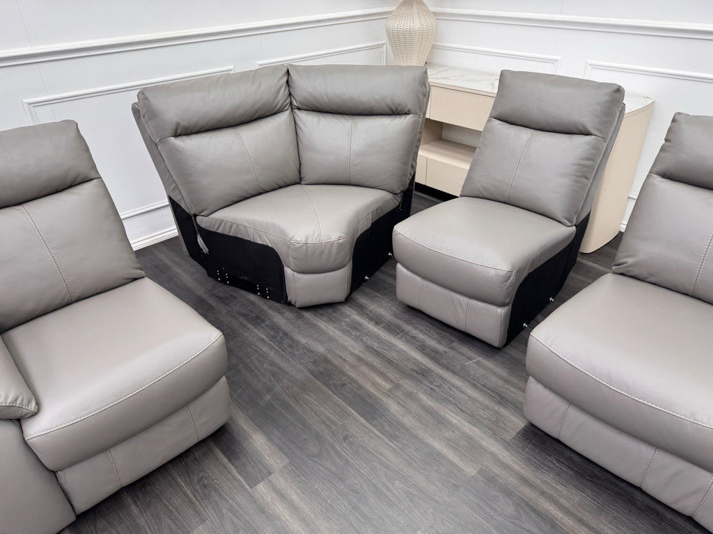 Furniture Village Snug Static L-Shape Corner Sofa In Grey Leather