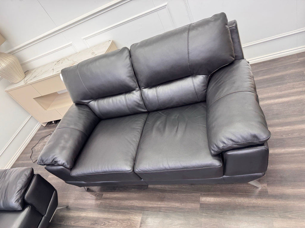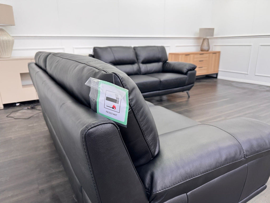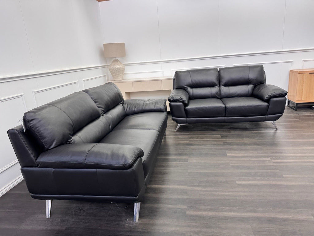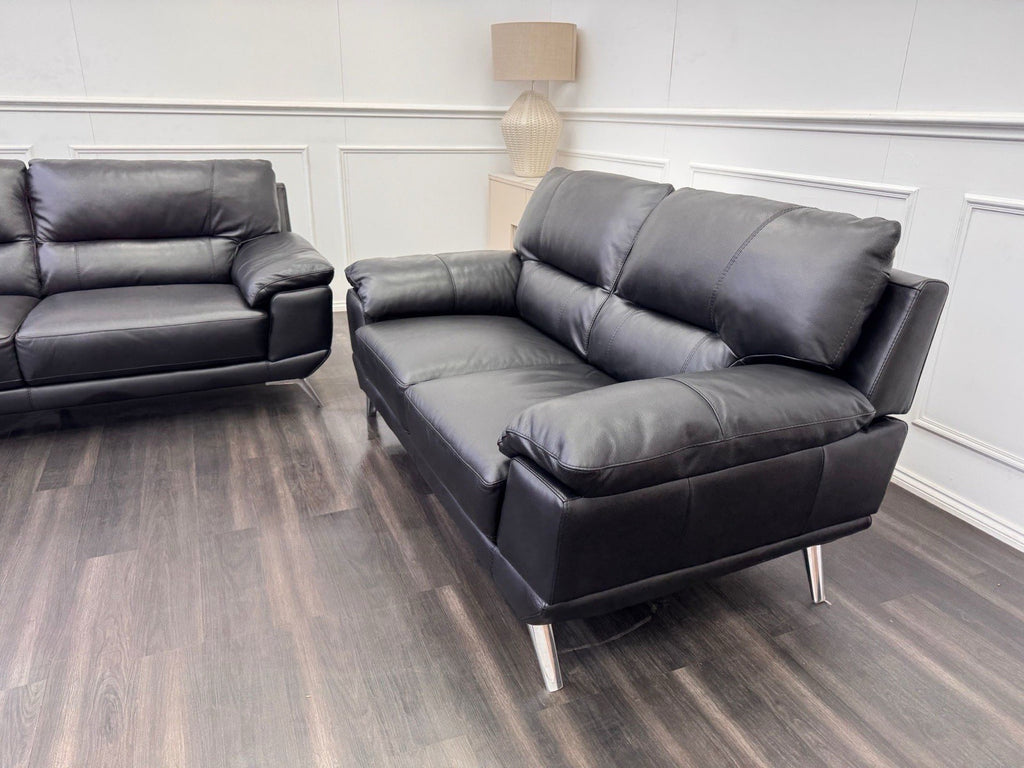 Furniture Village Static 3 & 2 Seater Sofa Set Black Leather