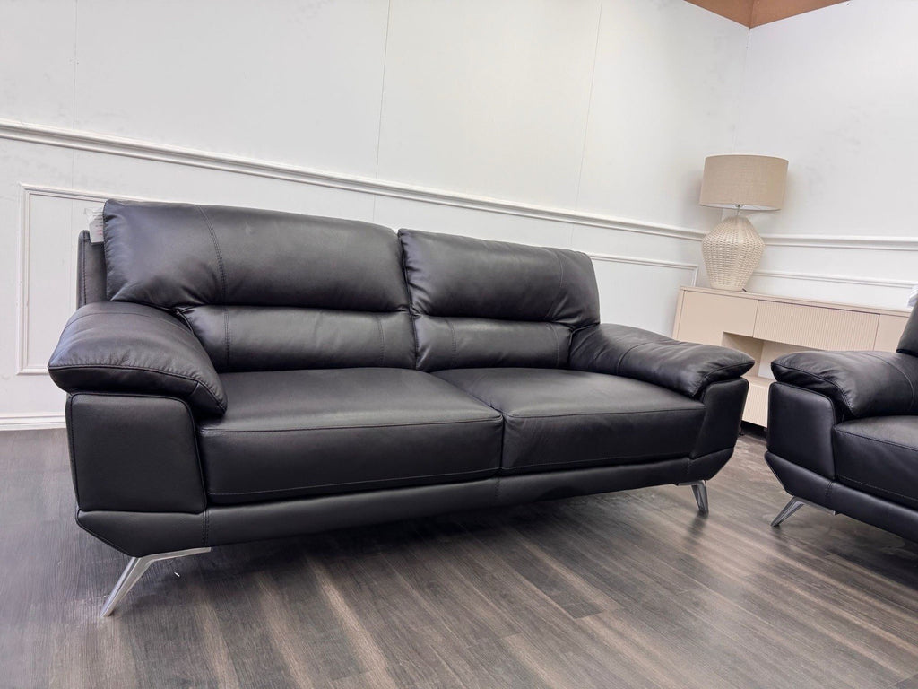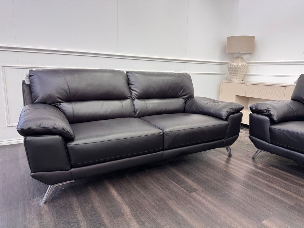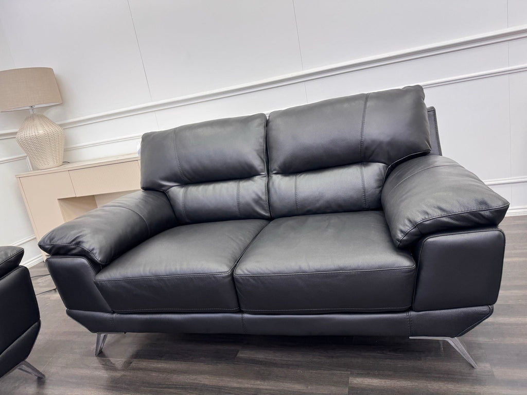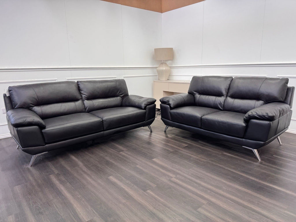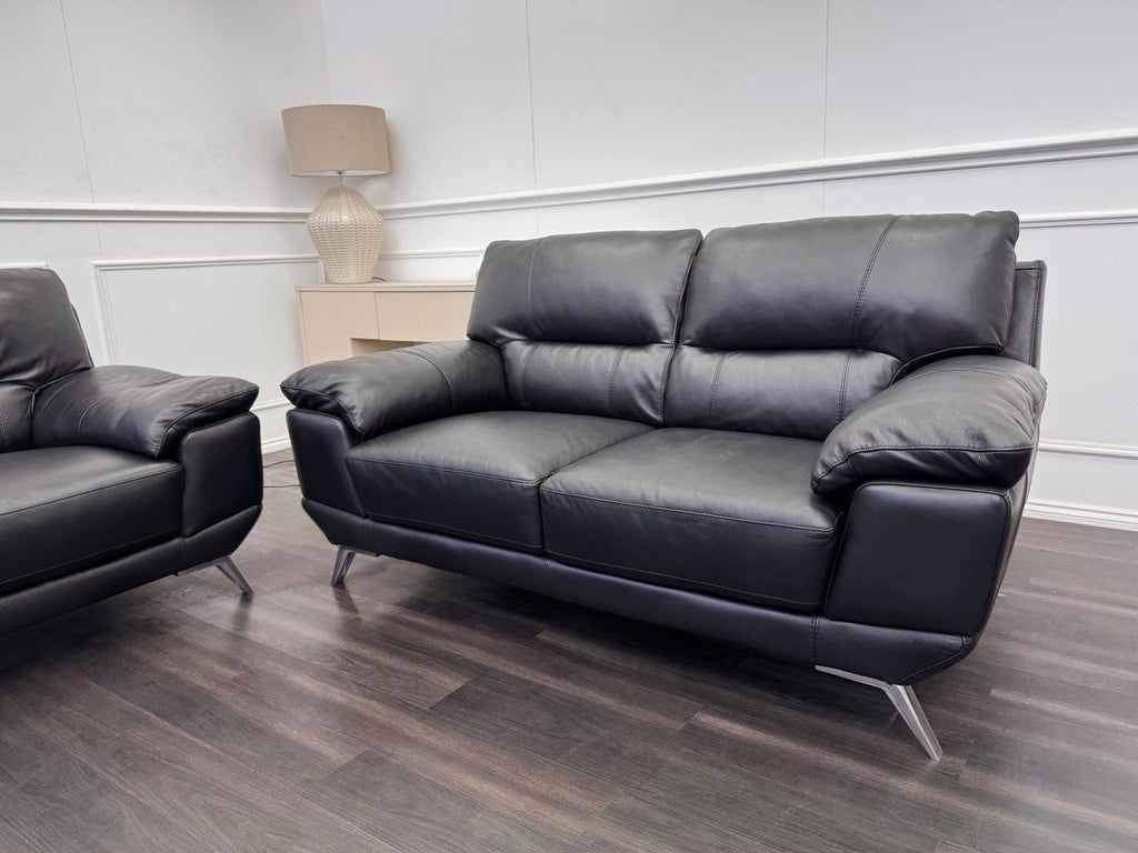 Furniture Village Static 3 & 2 Seater Sofa Set Black Leather