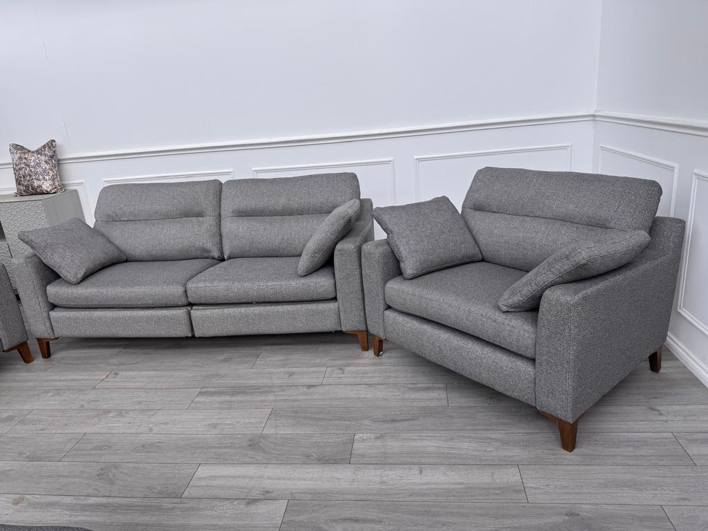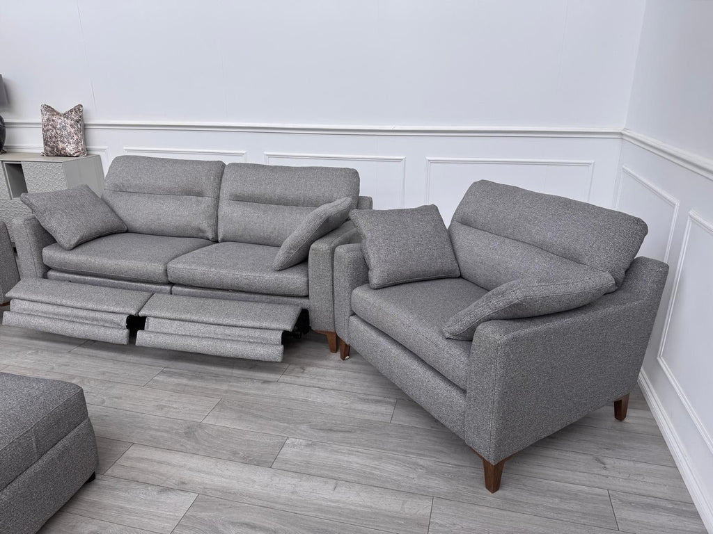 Furniture Village UNIQA Grey Fabric 3 & 2 & 1 Seater Power Recliner Sofa Set