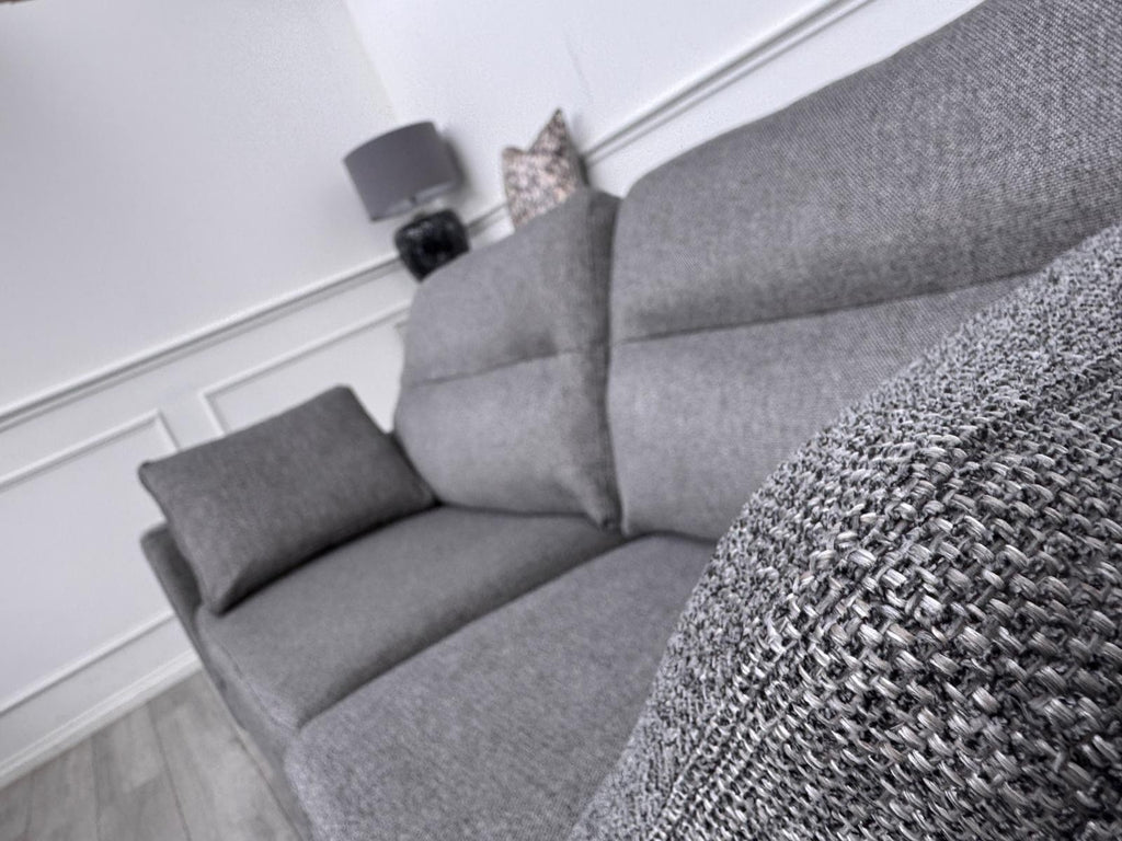Furniture Village UNIQA Grey Fabric 3 Seater Power Recliner & Loveseat Sofa Set