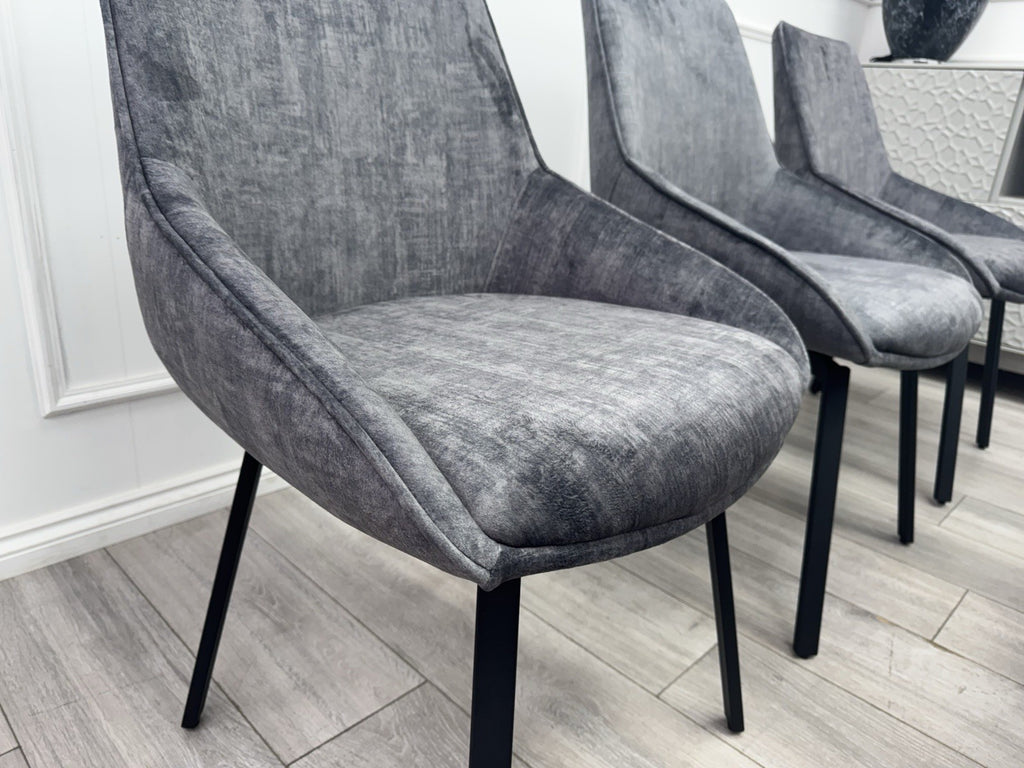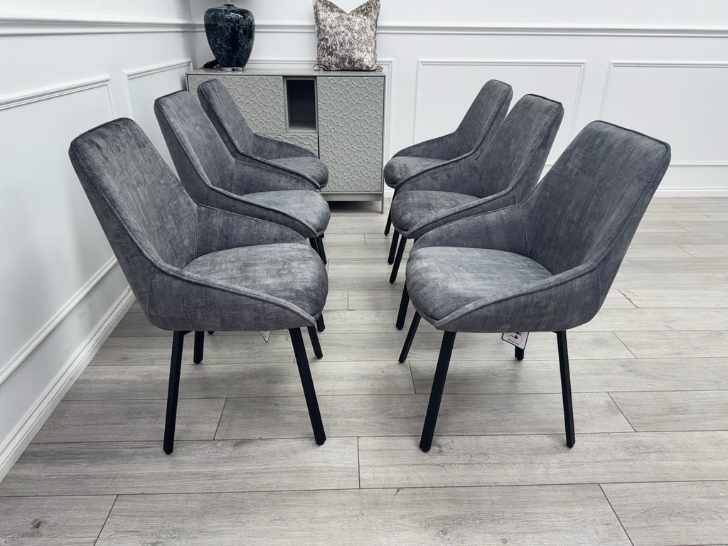 Furniture Village Veja Grey Velvet Set Of 6 Swivel Dining Chairs