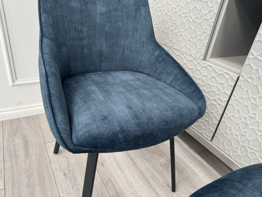 Furniture Village Veja Navy Blue Velvet Set Of 8 Swivel Dining Chairs (Delivery)