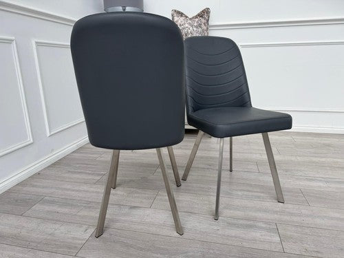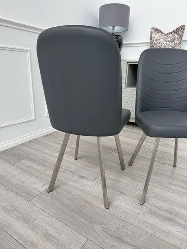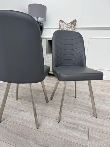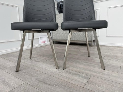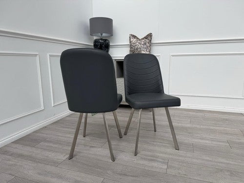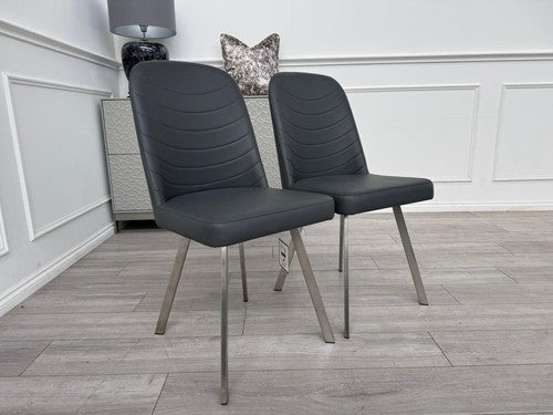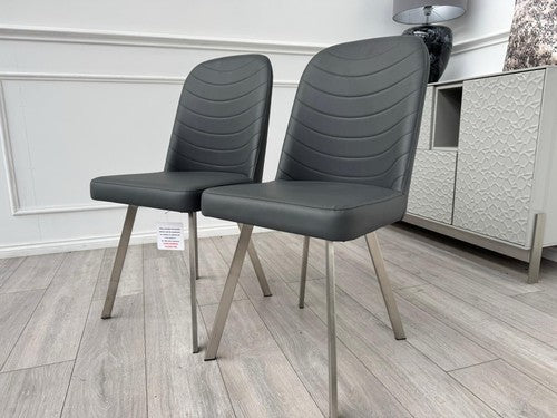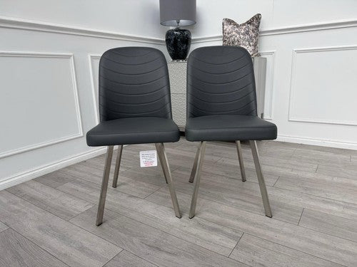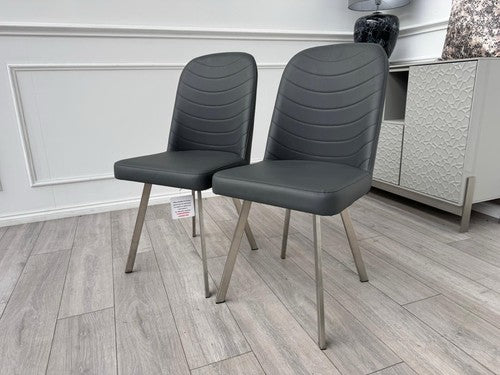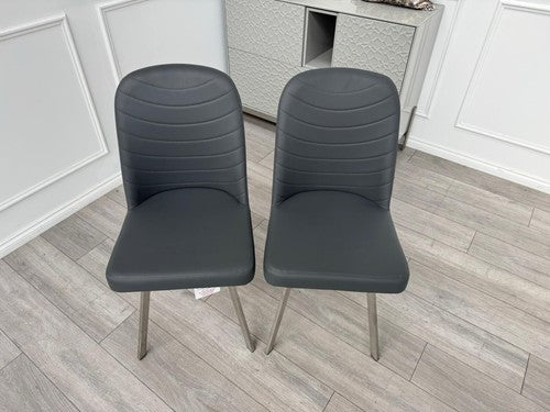 Furniture Village Wizard Pair of Grey Faux Leather Dining Chairs