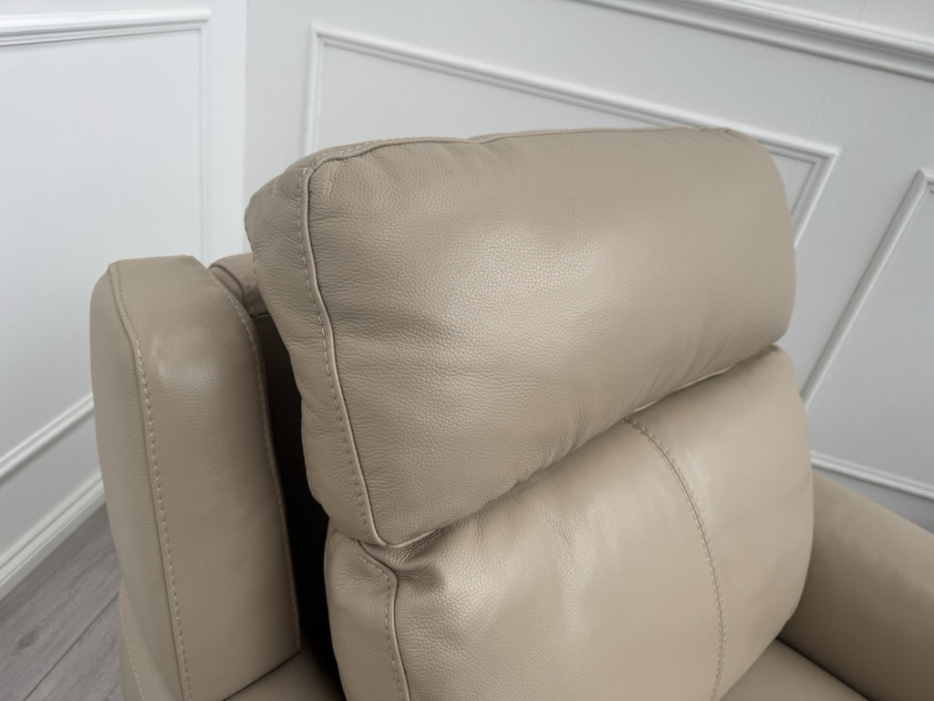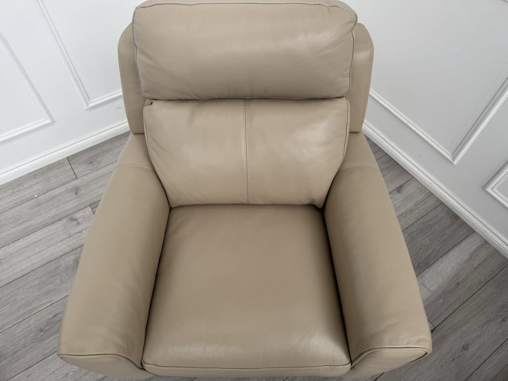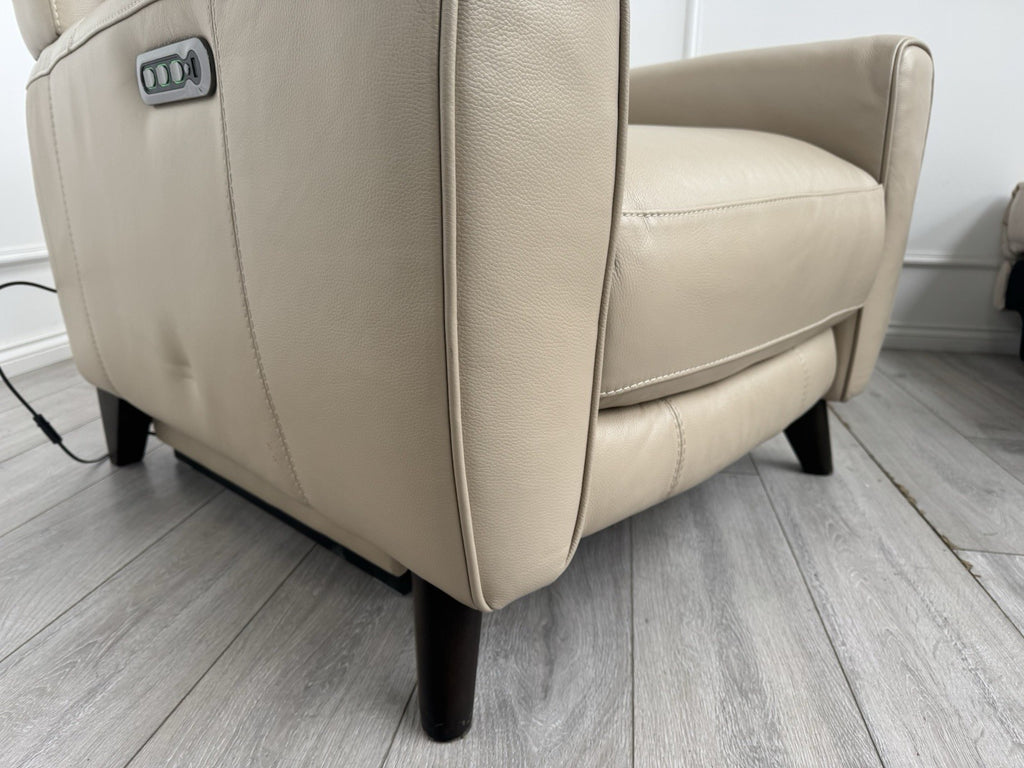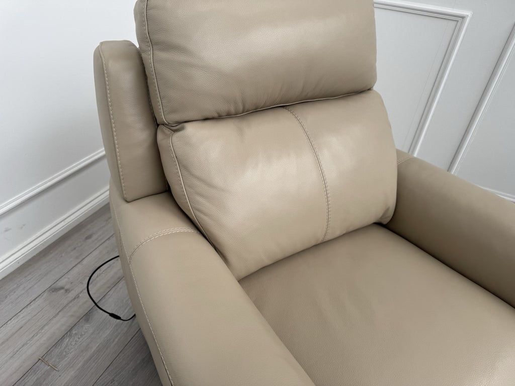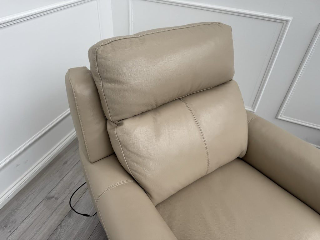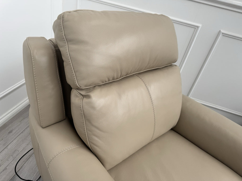 Furniture Village Zen Beige Leather Power Recliner Armchair + Headrest + Lumbar