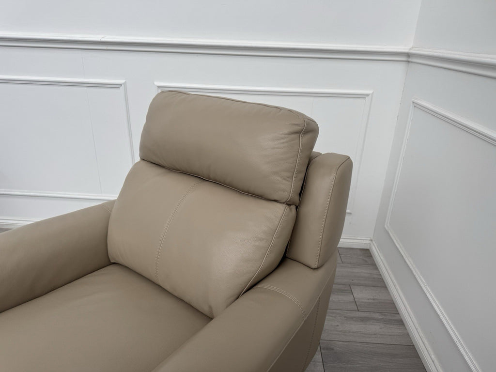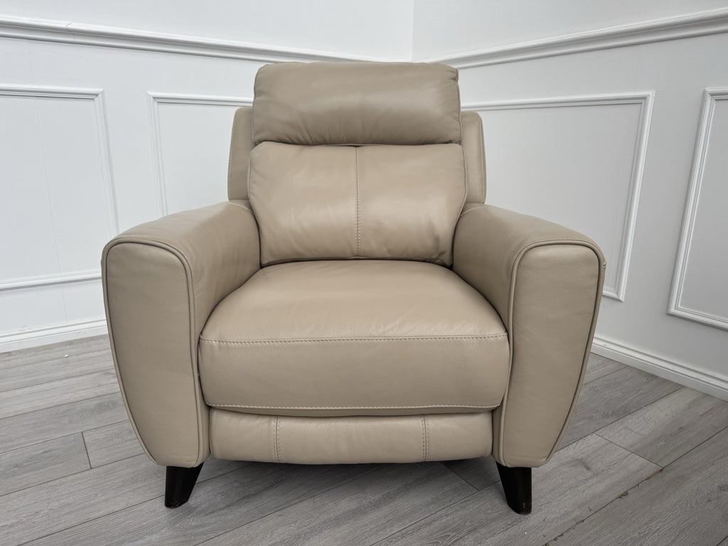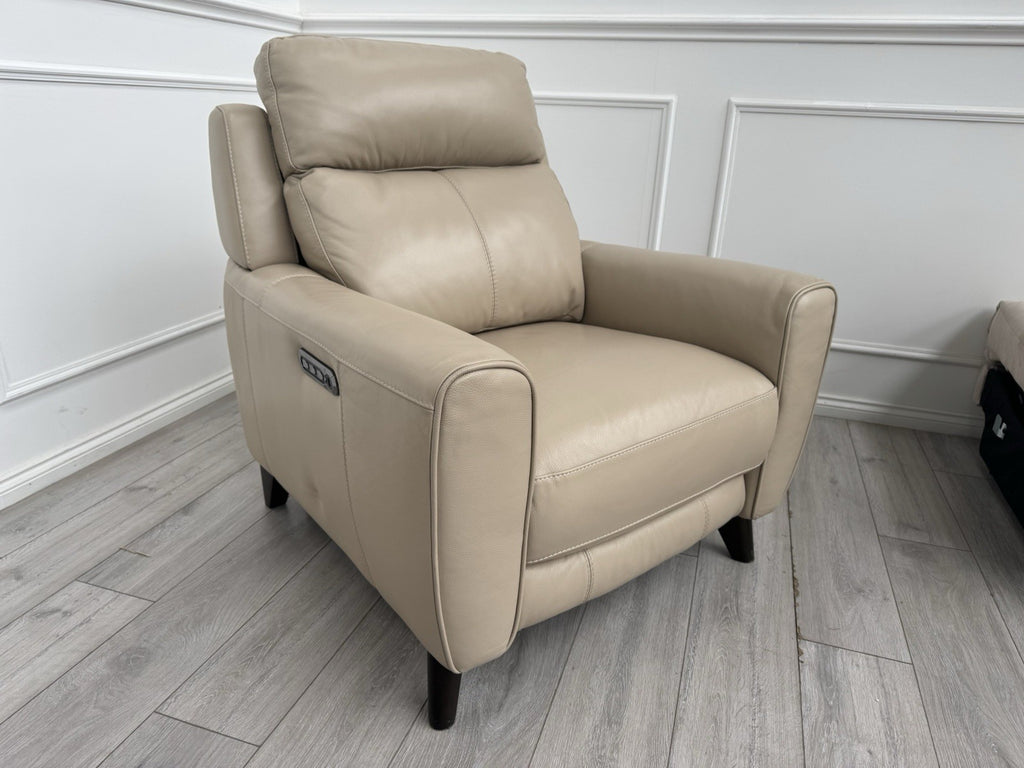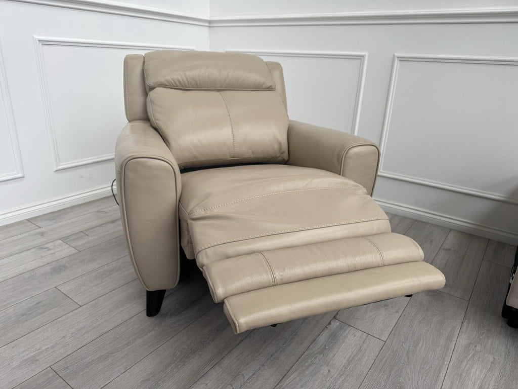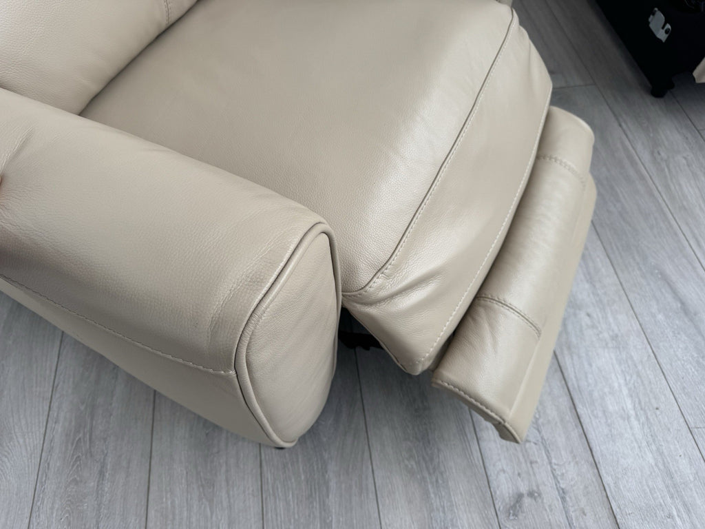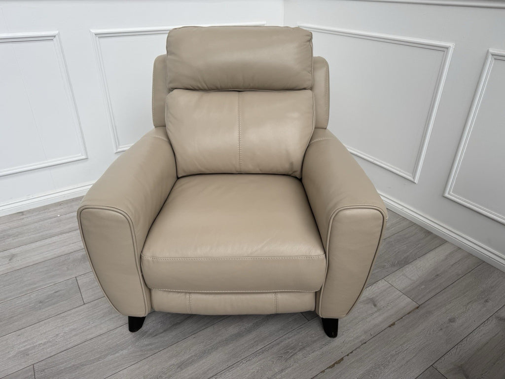 Furniture Village Zen Beige Leather Power Recliner Armchair + Headrest + Lumbar