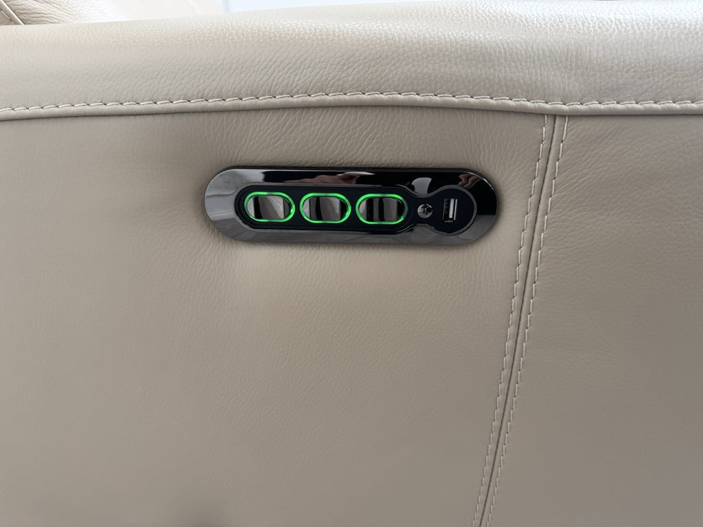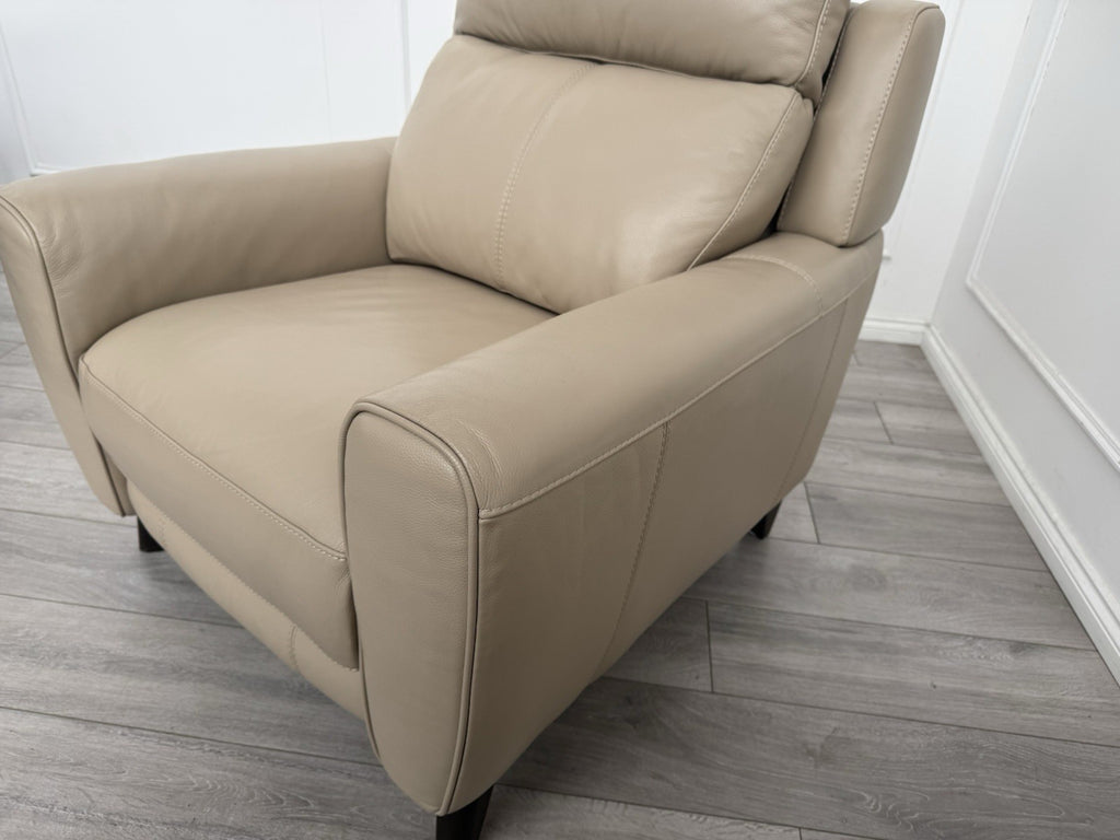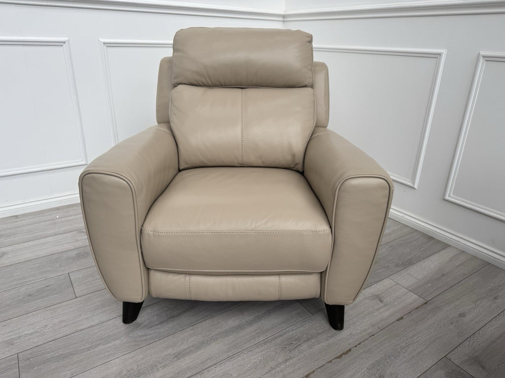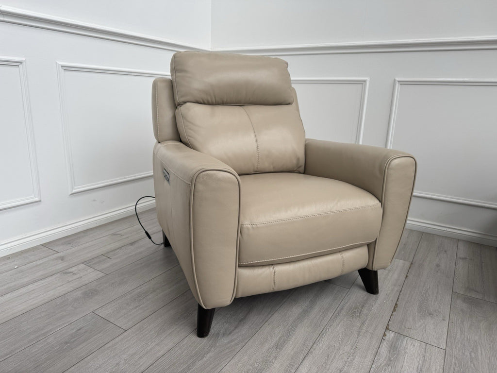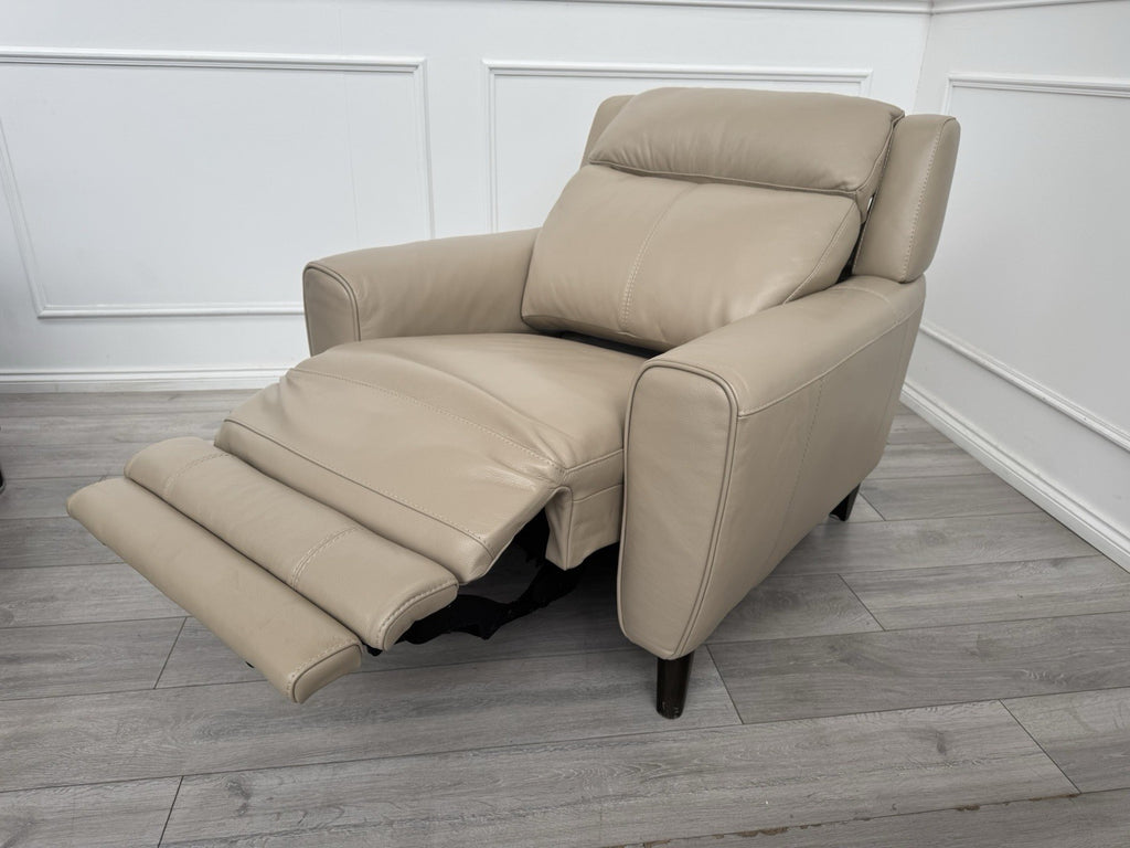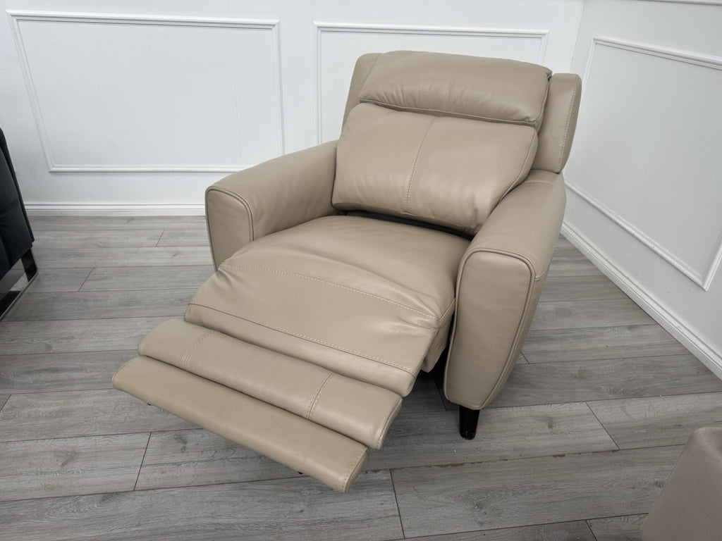 Furniture Village Zen Beige Leather Power Recliner Armchair + Headrest + Lumbar