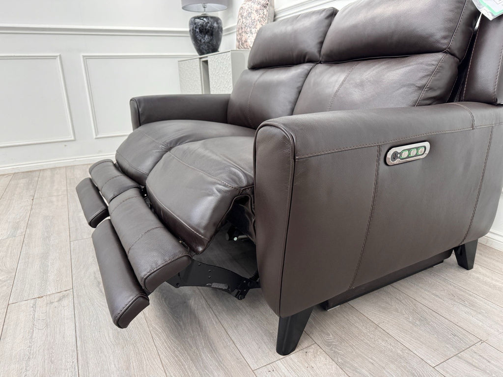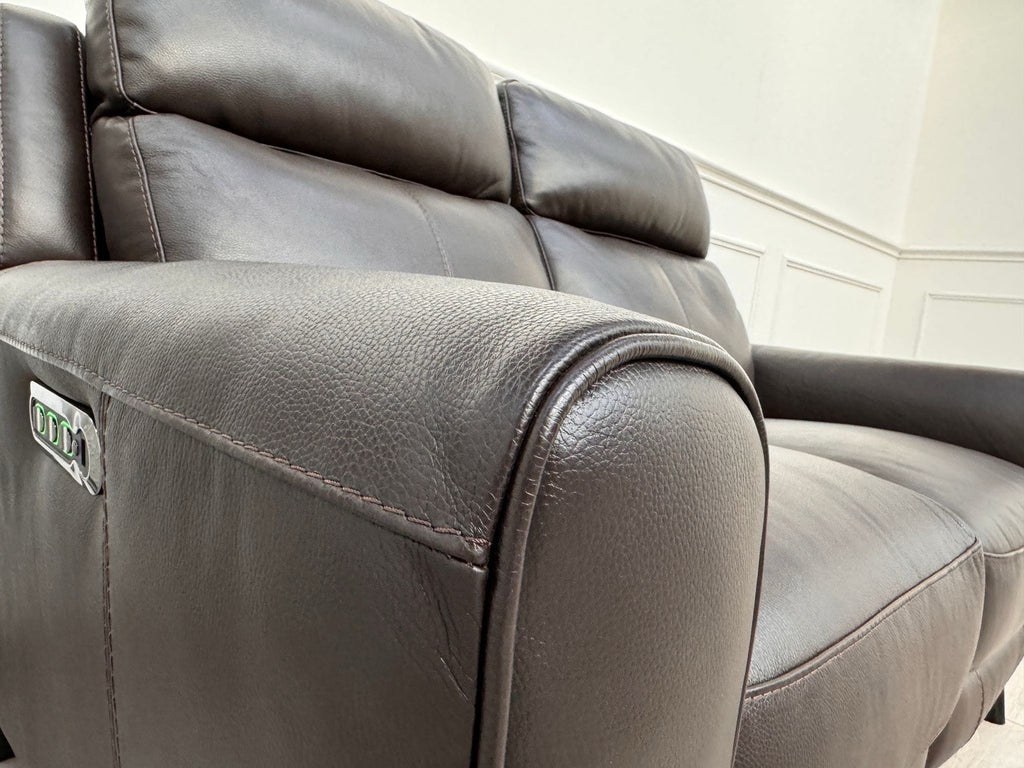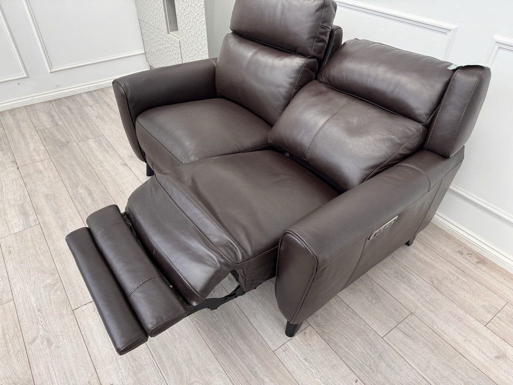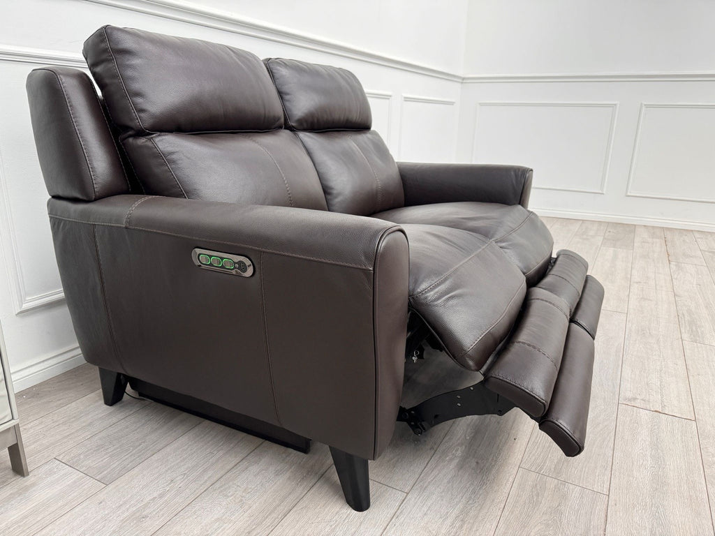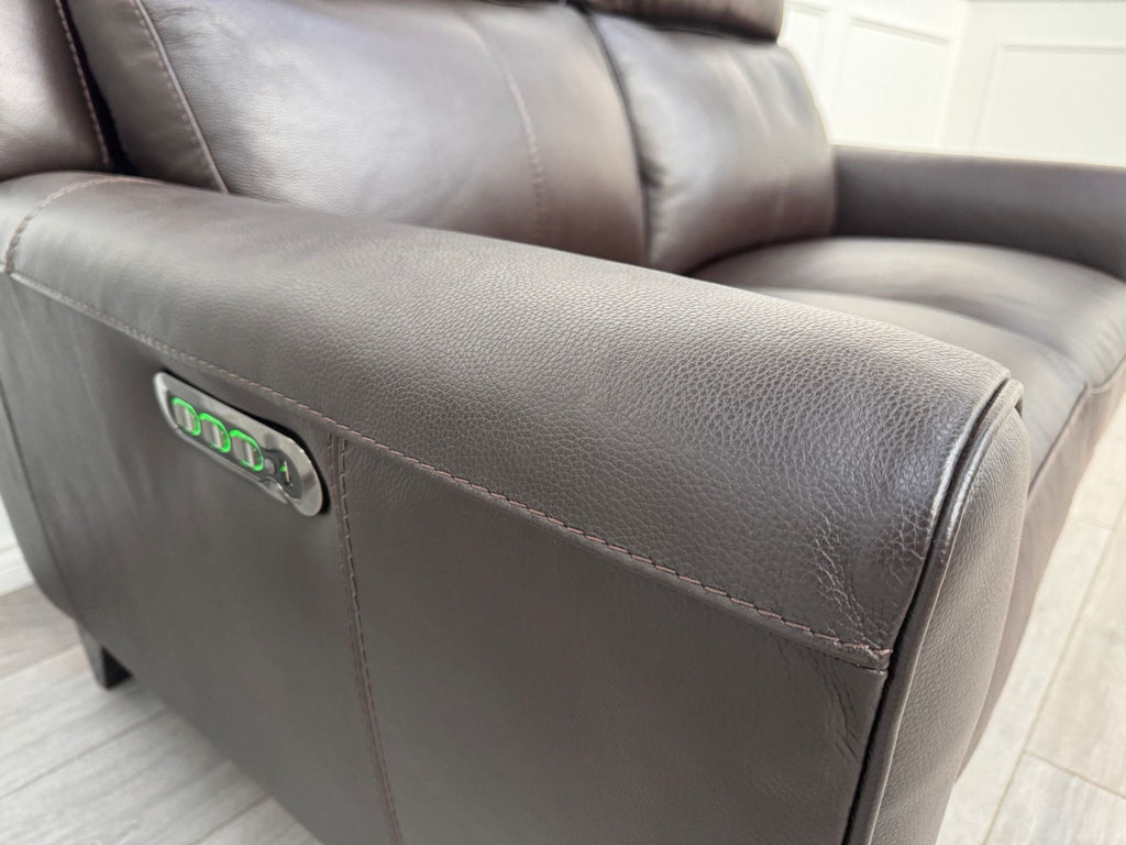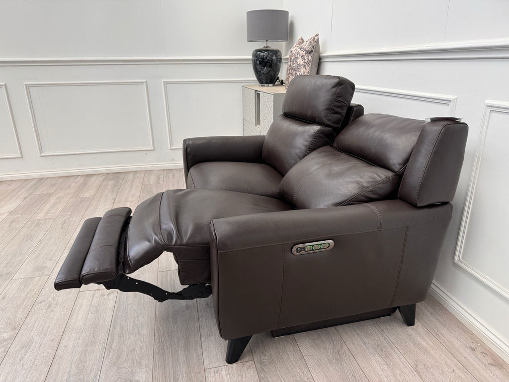 Furniture Village Zen Brown Leather 2 Seater Power Recliner, Lumbar & Headrest