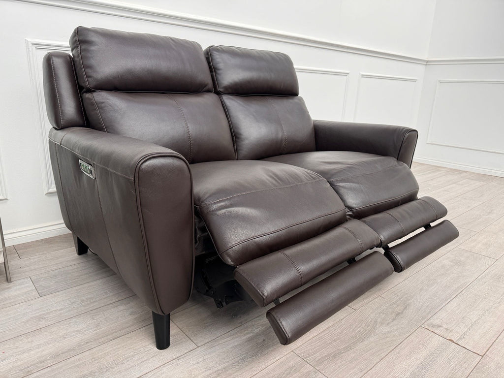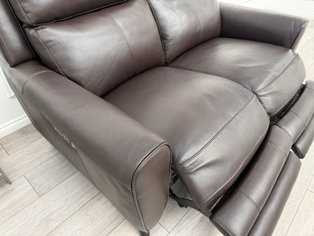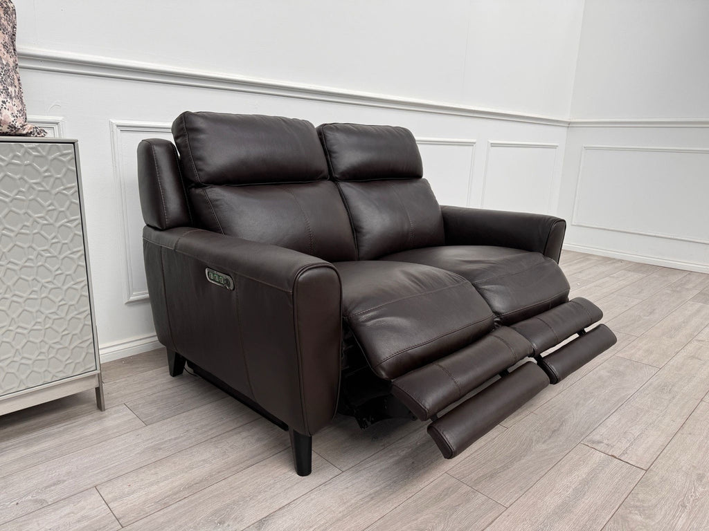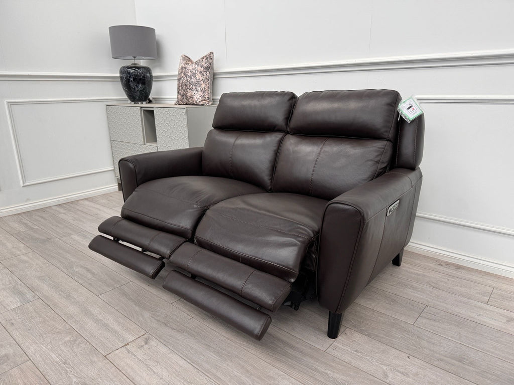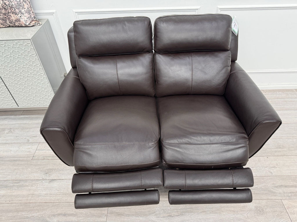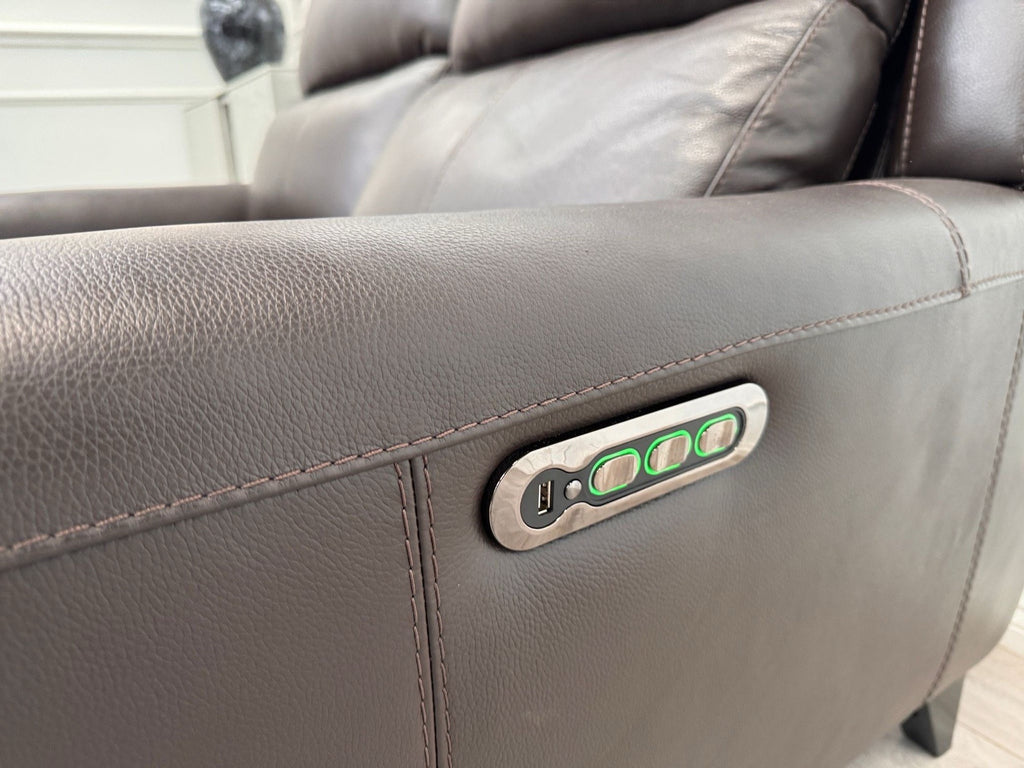 Furniture Village Zen Brown Leather 2 Seater Power Recliner, Lumbar & Headrest
