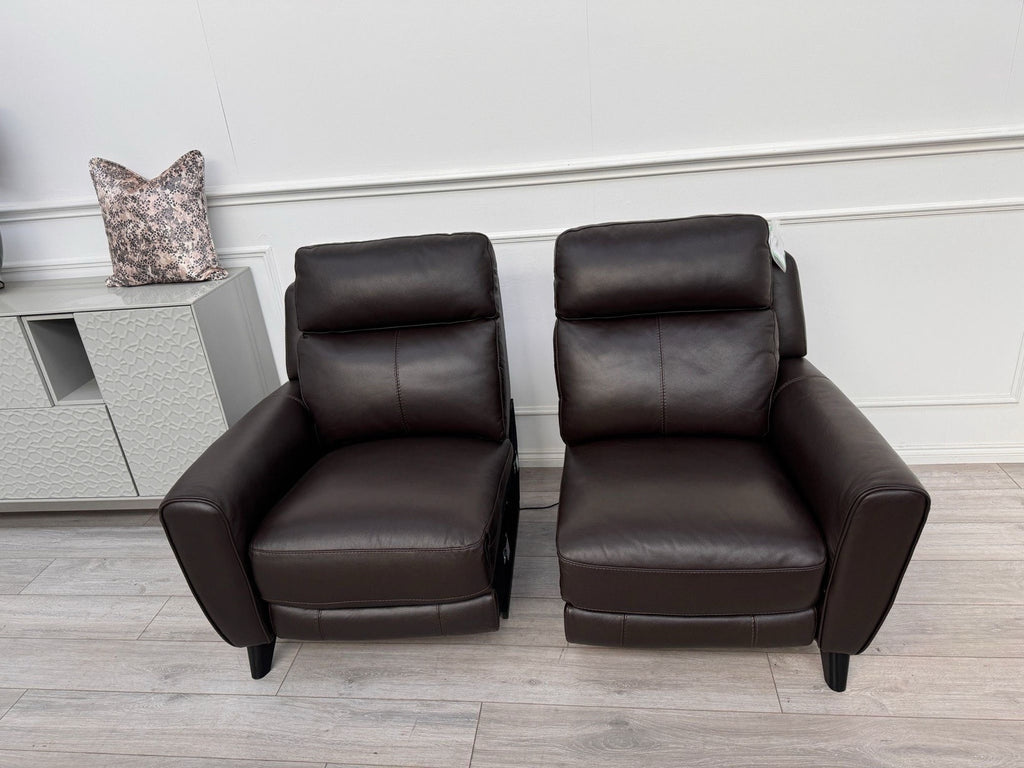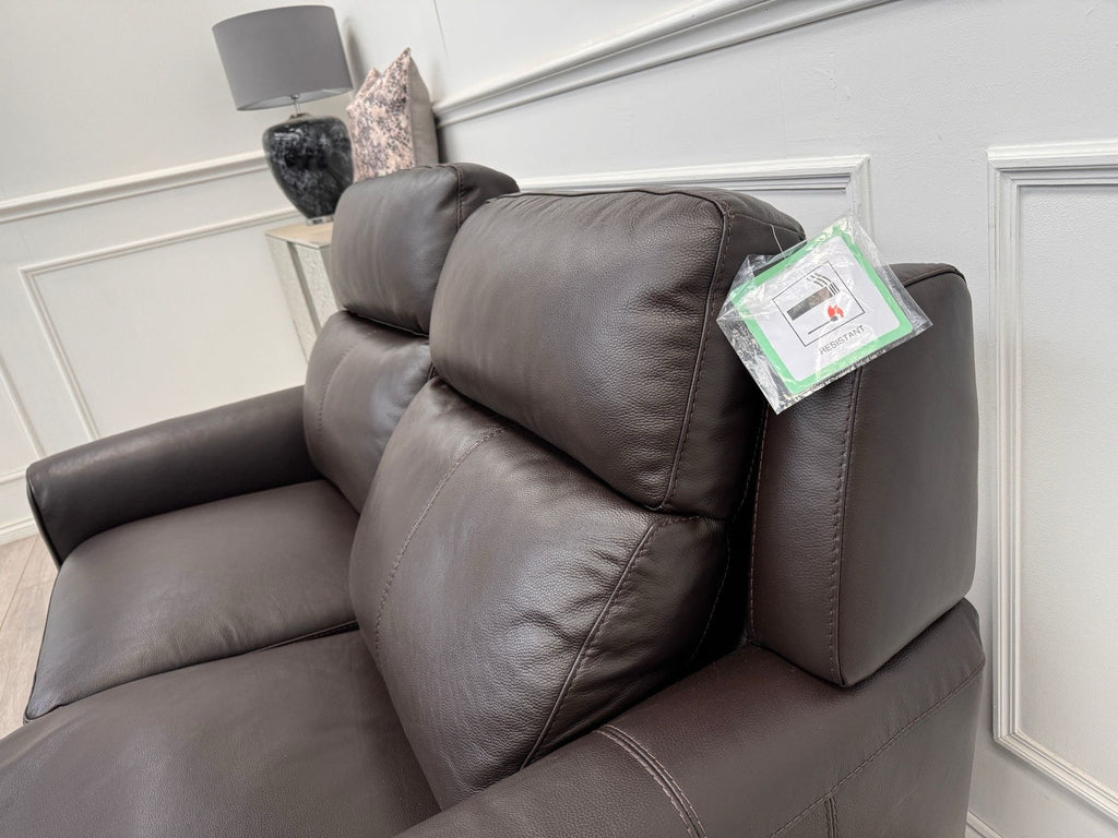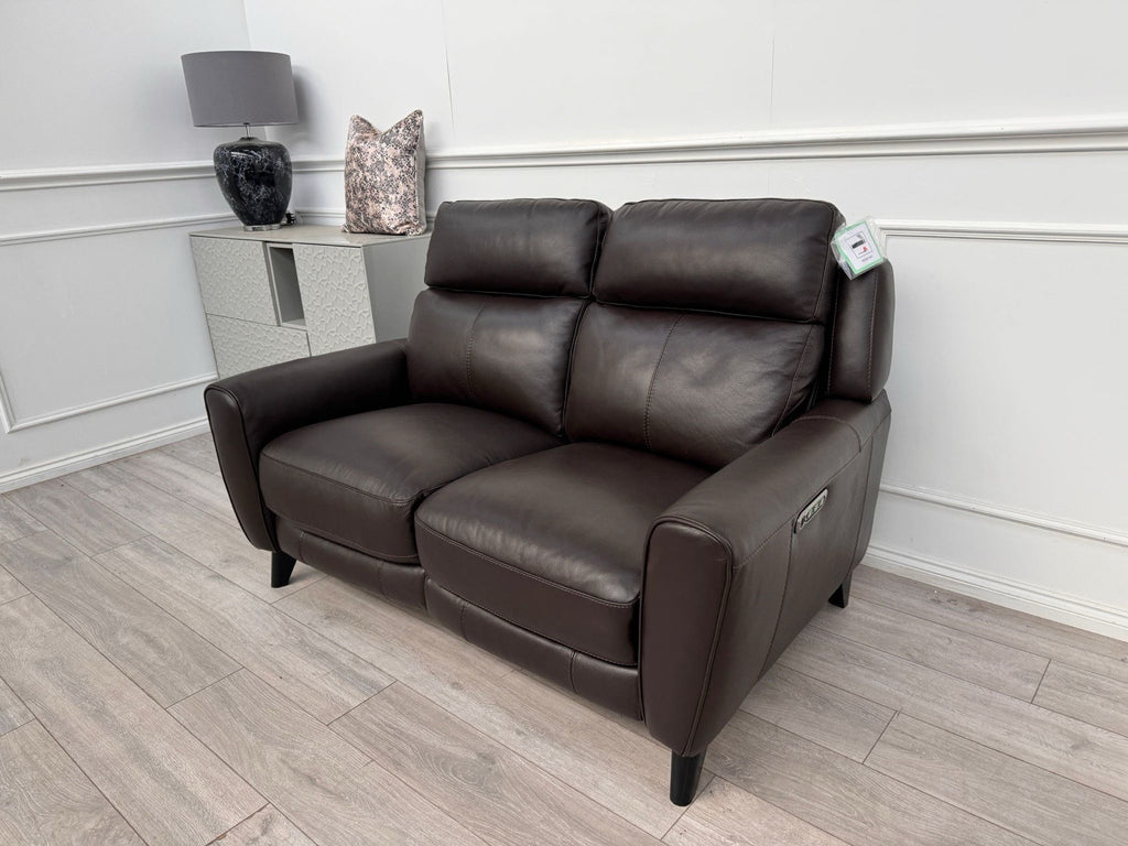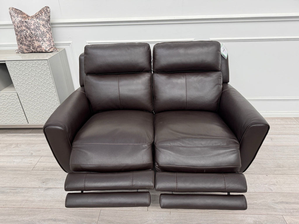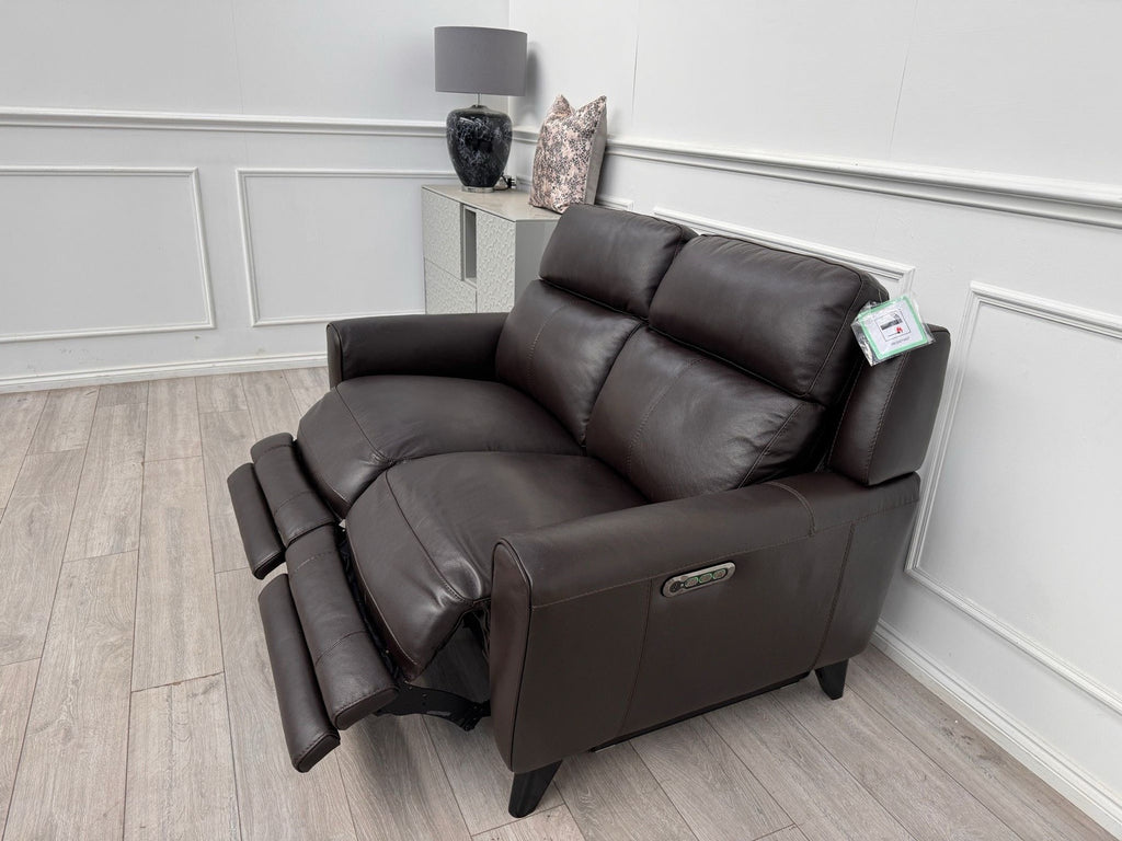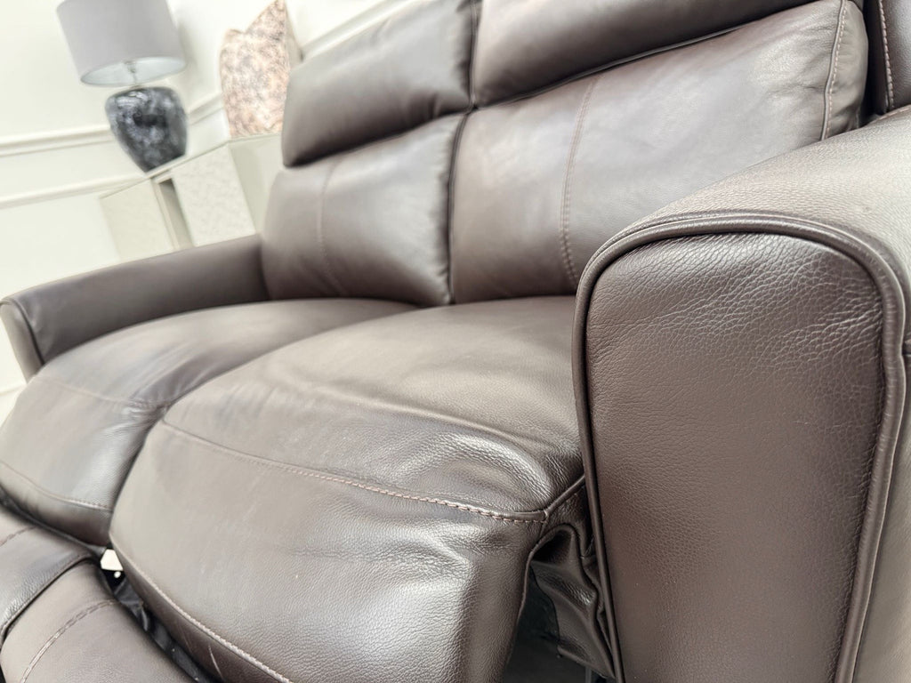 Furniture Village Zen Brown Leather 2 Seater Power Recliner, Lumbar & Headrest