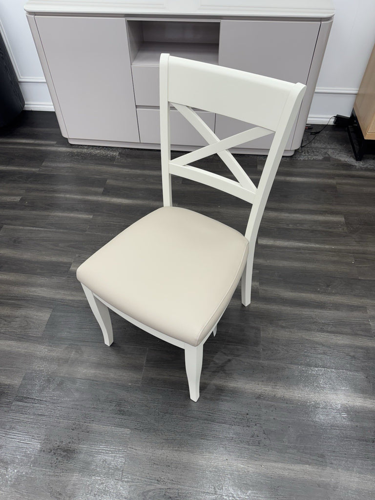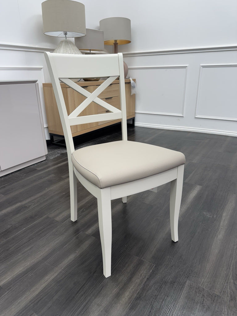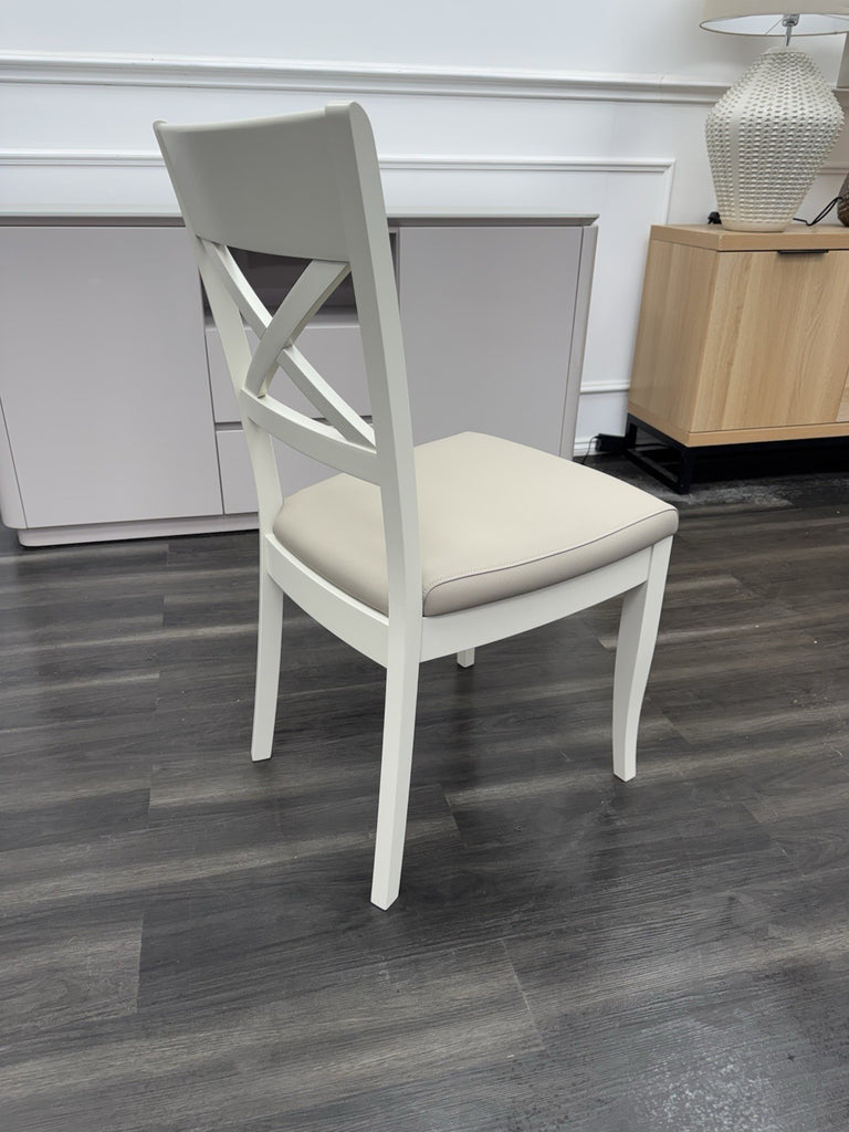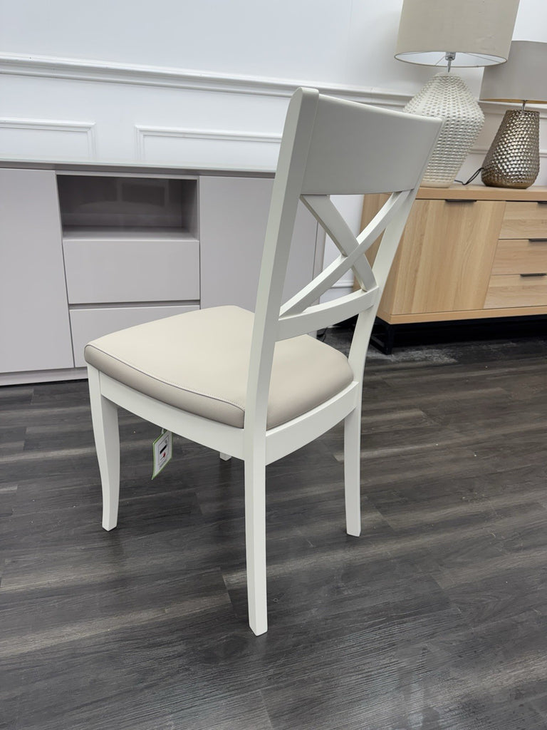FV Annecy Cross Back Leather Dining Chair White Painted Wooden (Choose Quantity)