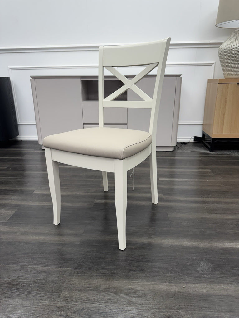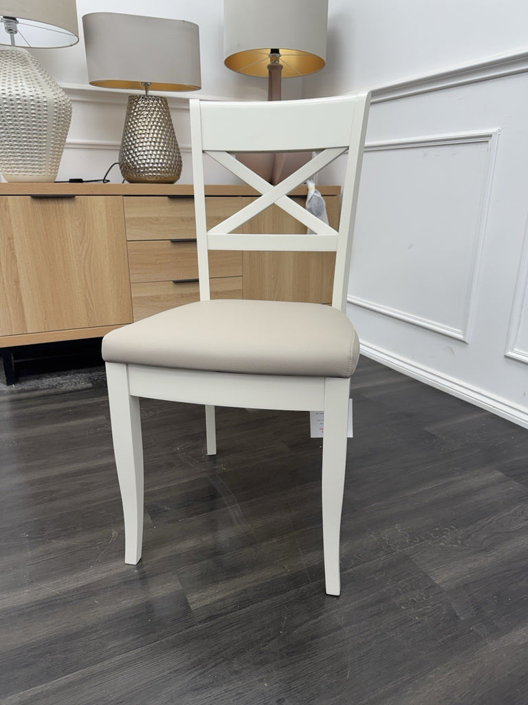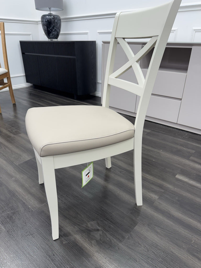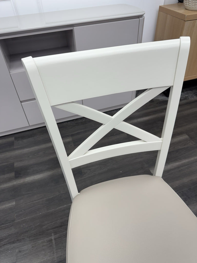 FV Annecy Cross Back Leather Dining Chair White Painted Wooden (Choose Quantity)