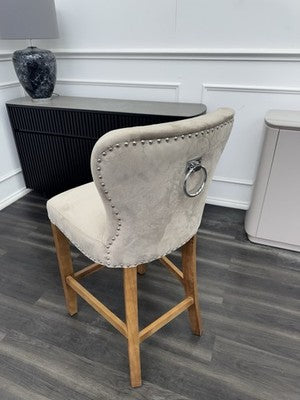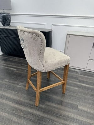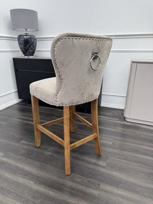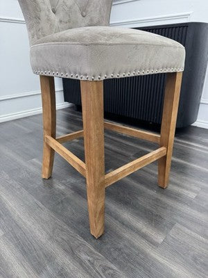 FV Chennia Taupe Fabric Wooded Leg Dining Barstool (Choose Quantity)