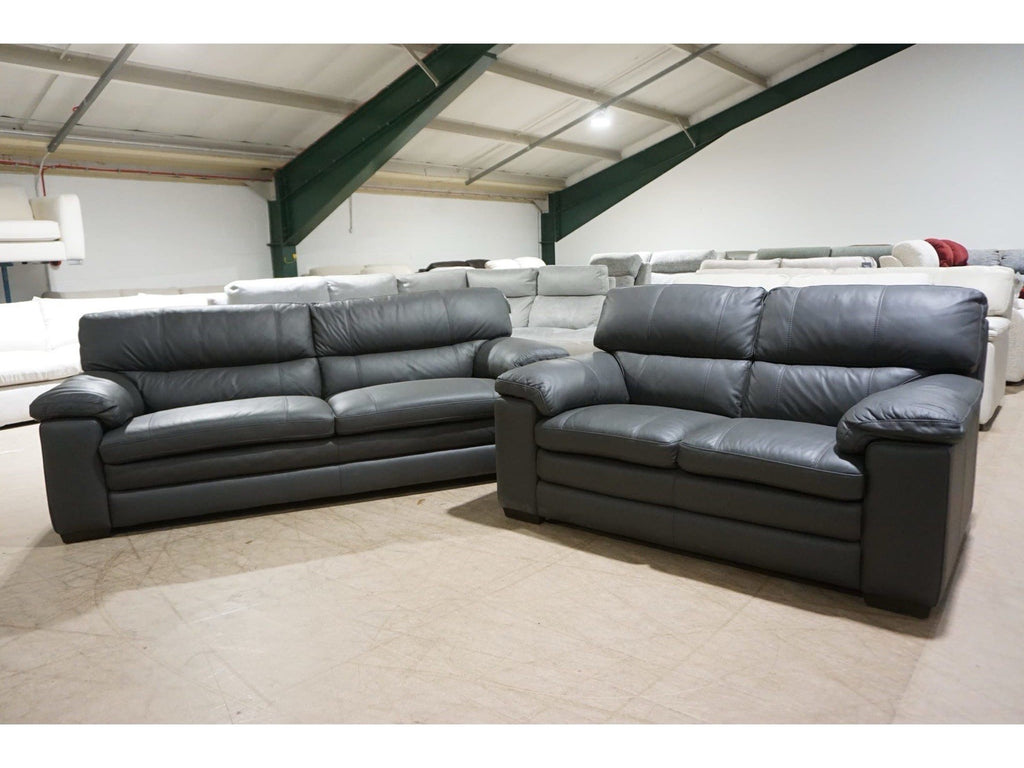 FV Cozee charcoal grey leather fixed back 3 + 2 seater sofas Set