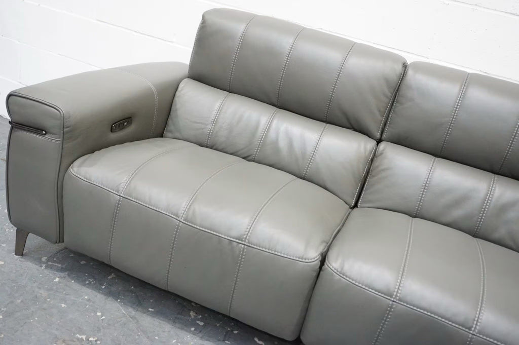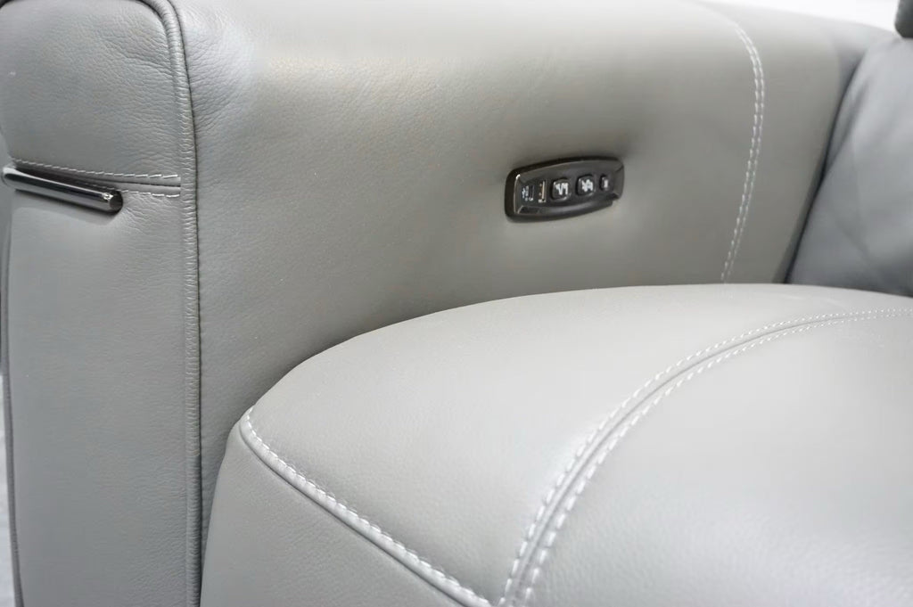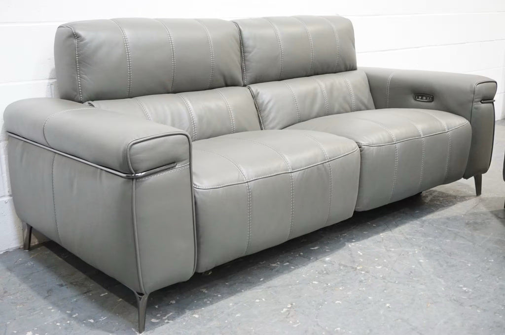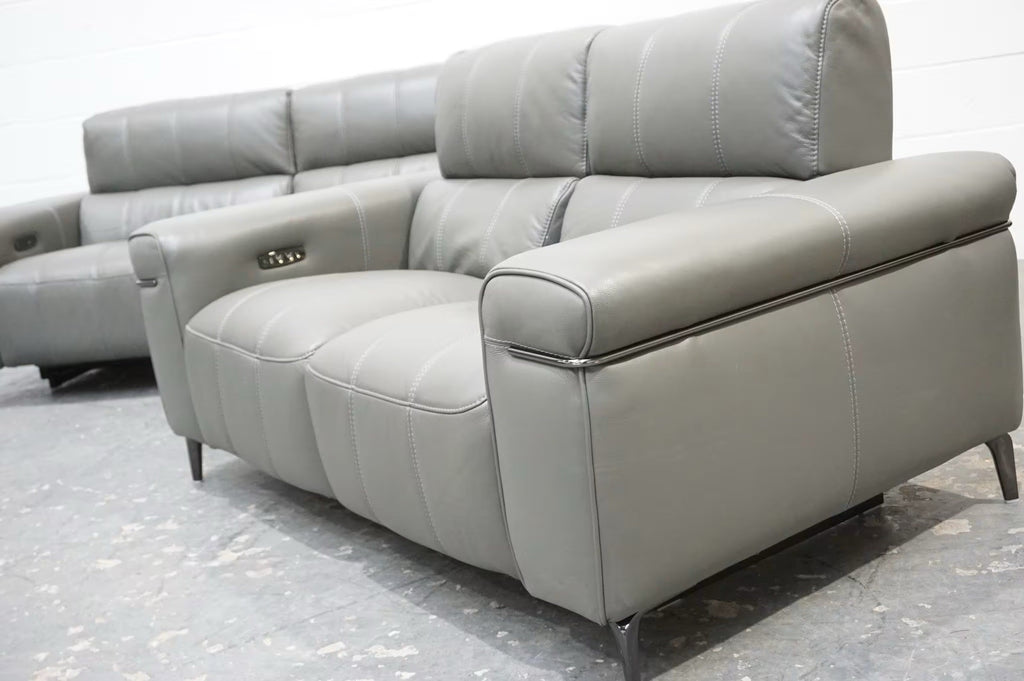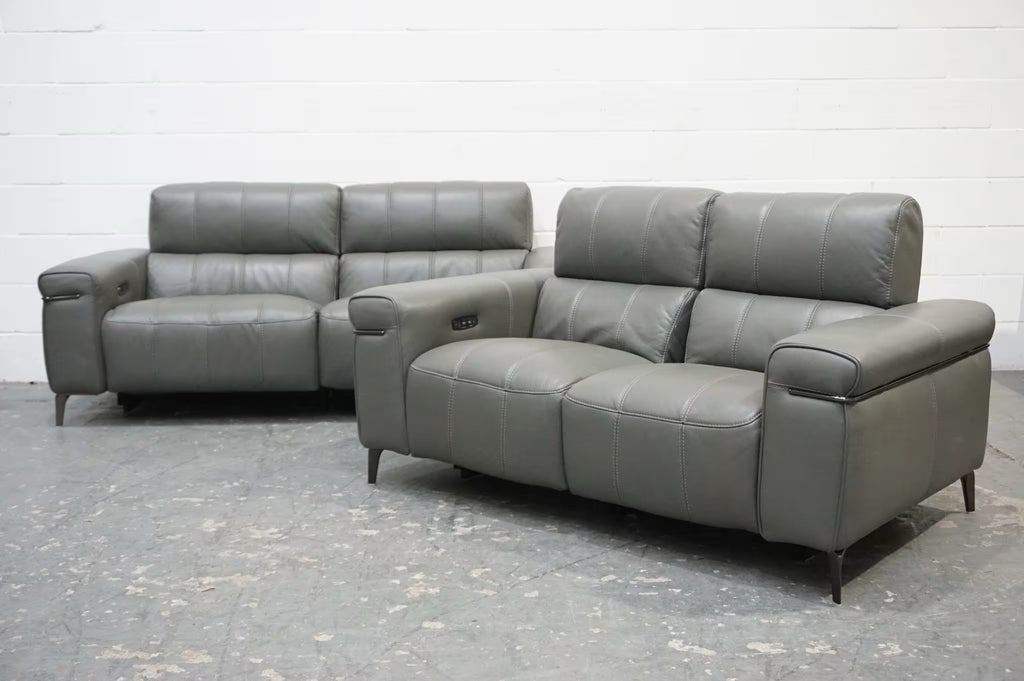 FV Homestage Grey Leather 3+2 Seater Sofa Set Pwr Recliner & Headrest (Delivery)