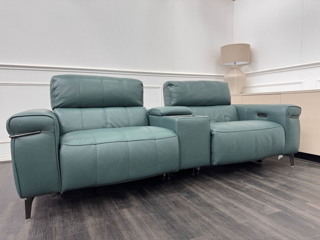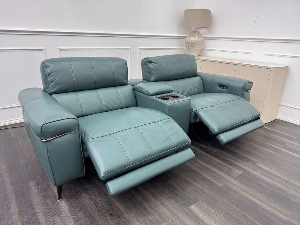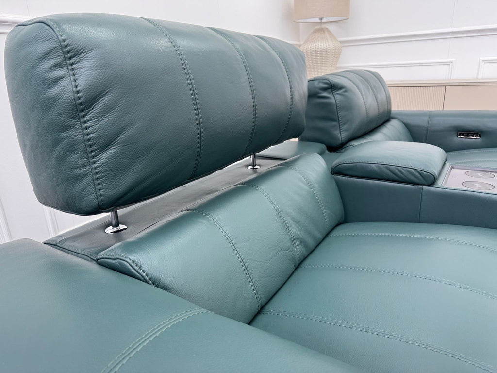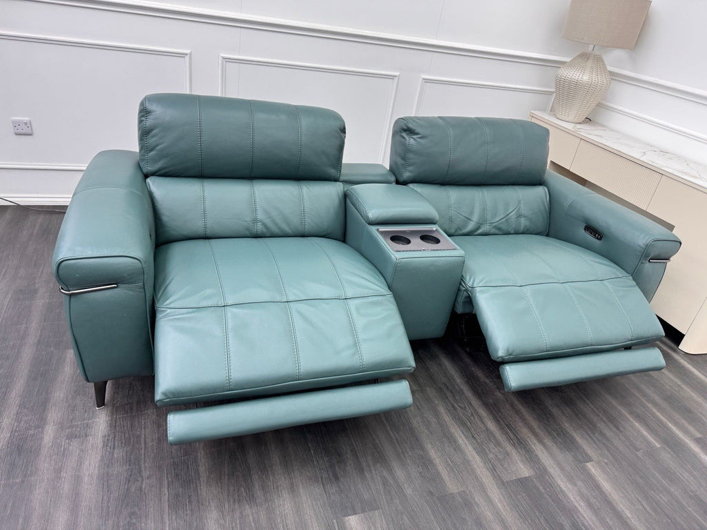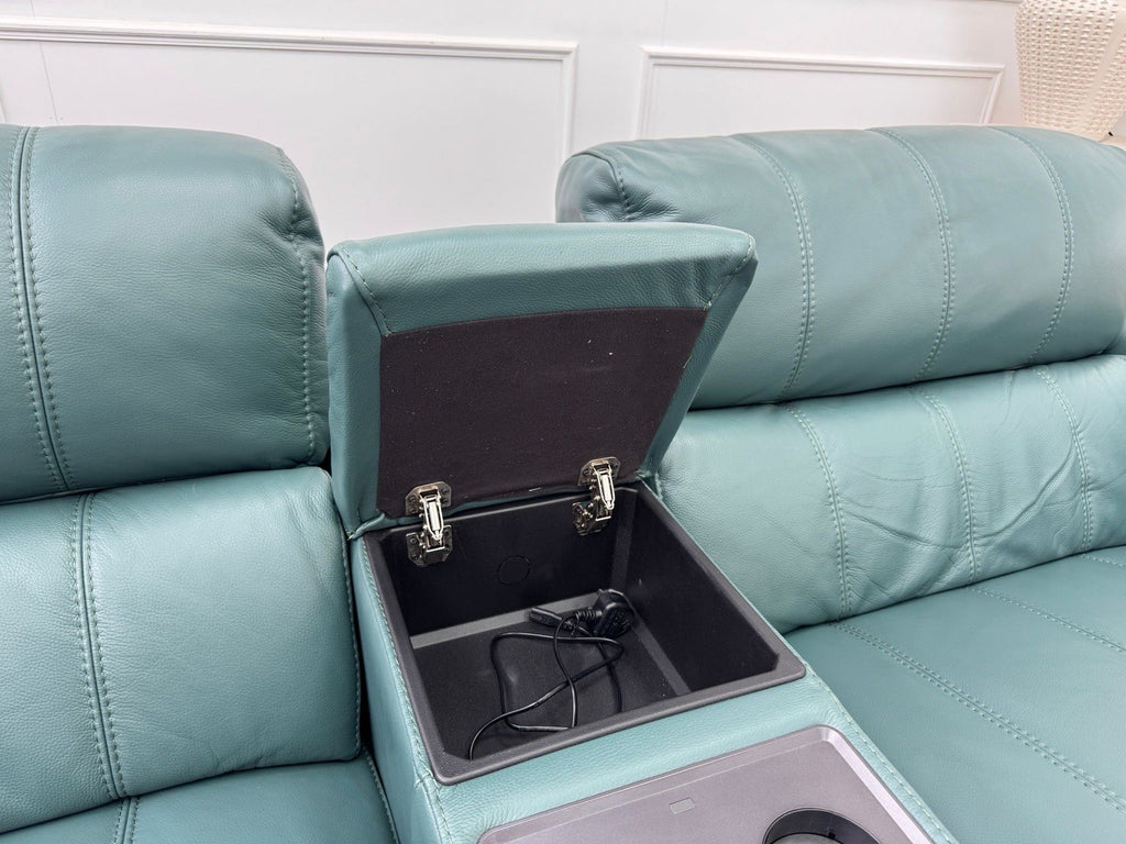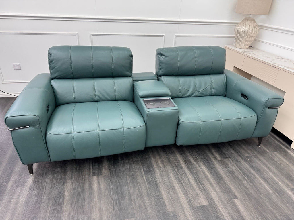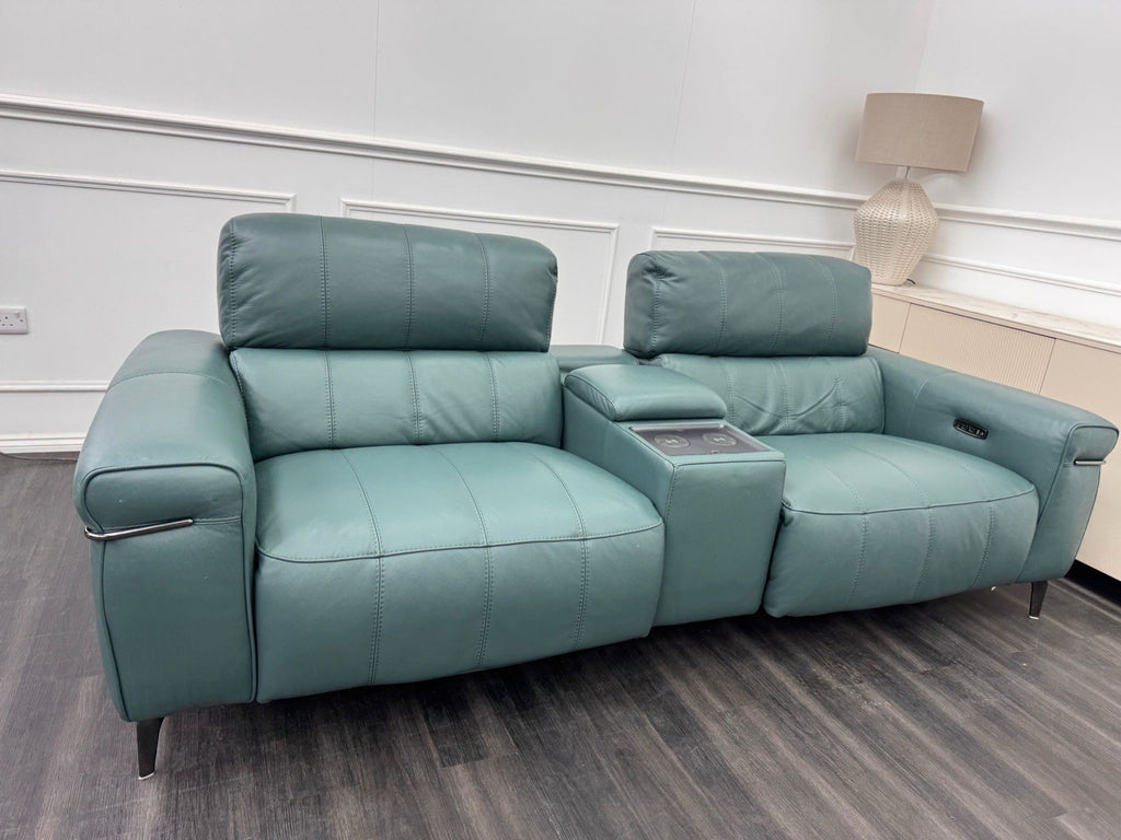 FV Homestage Leather 2 Seater Power Recliner & Headrest Media Sofa with Console