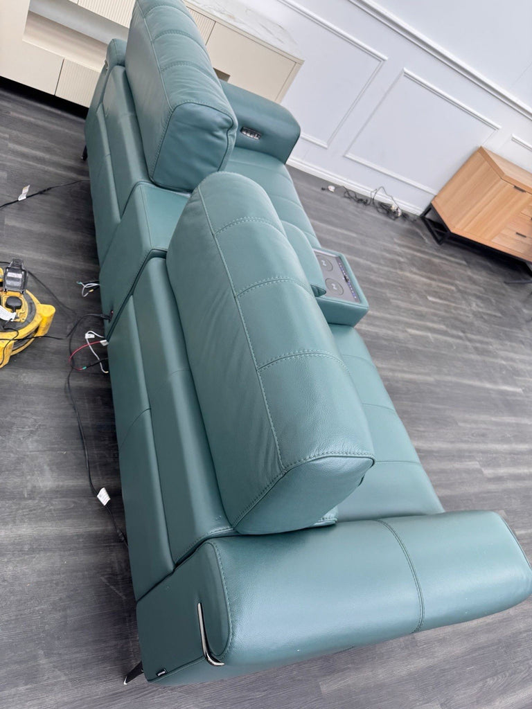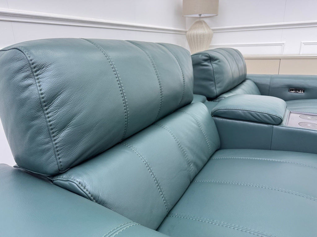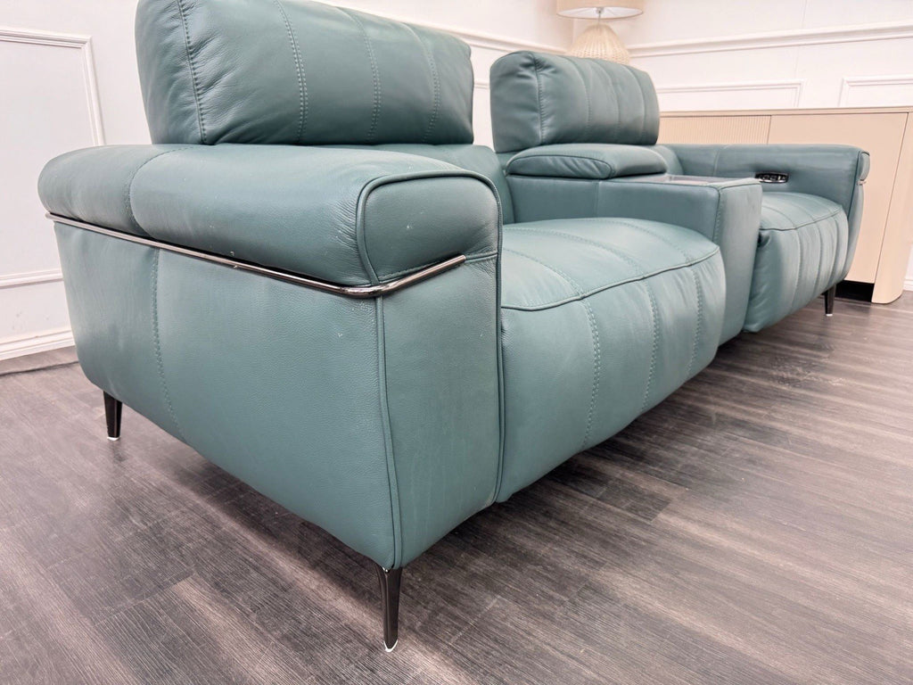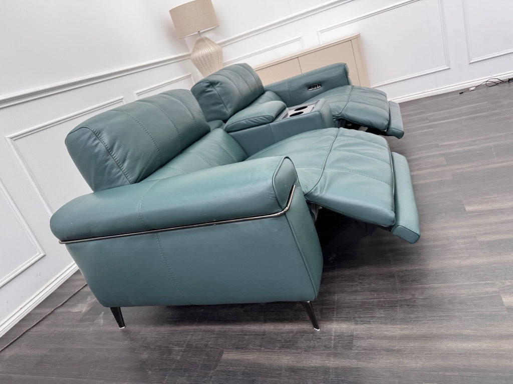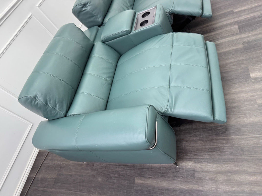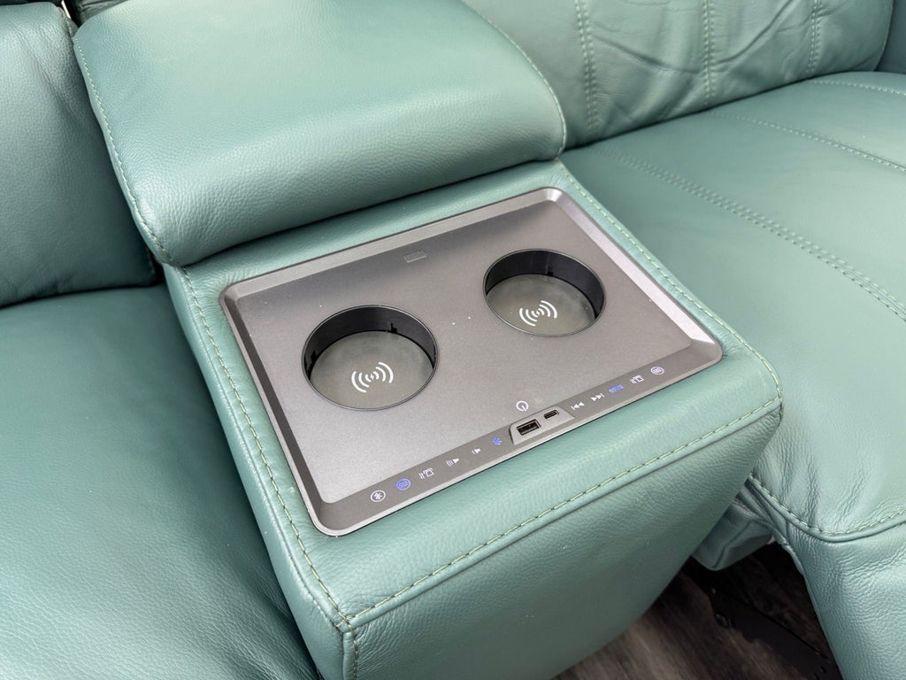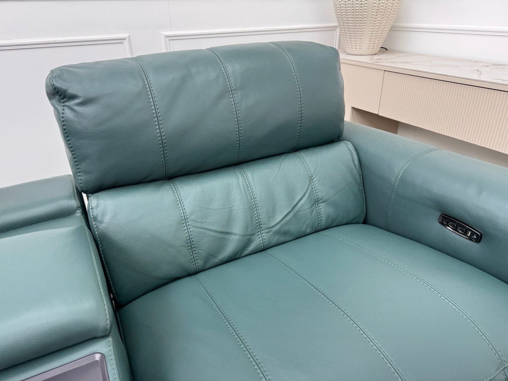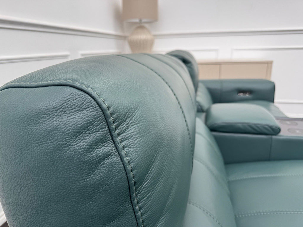 FV Homestage Leather 2 Seater Power Recliner & Headrest Media Sofa with Console