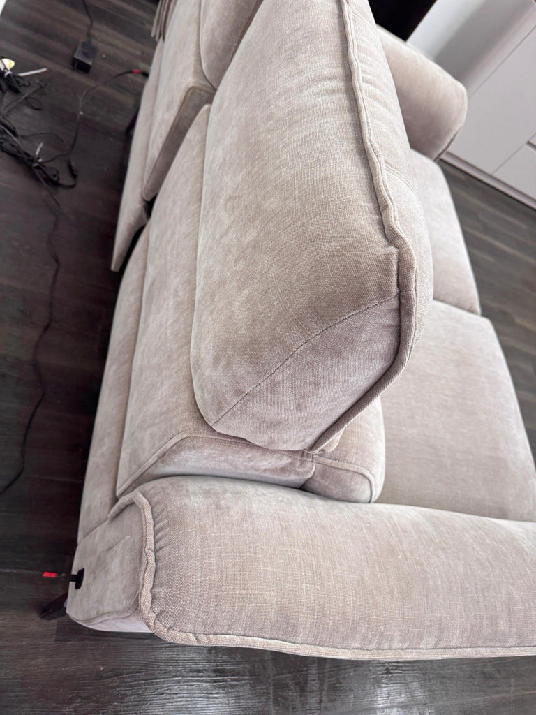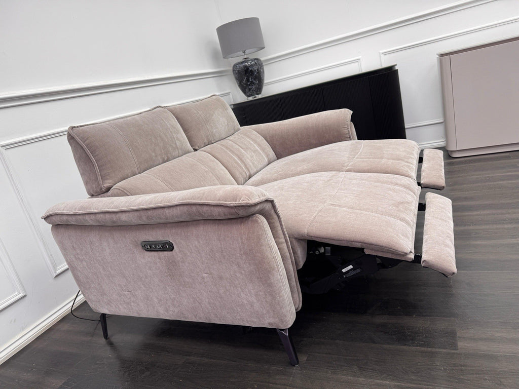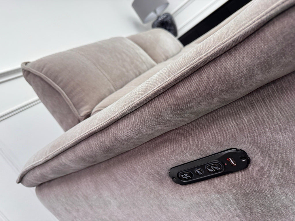 FV Jude 2 Seater Beige Chenille Power Recliner Sofa with Telescopic Headrests