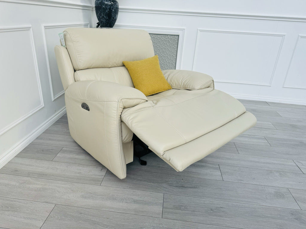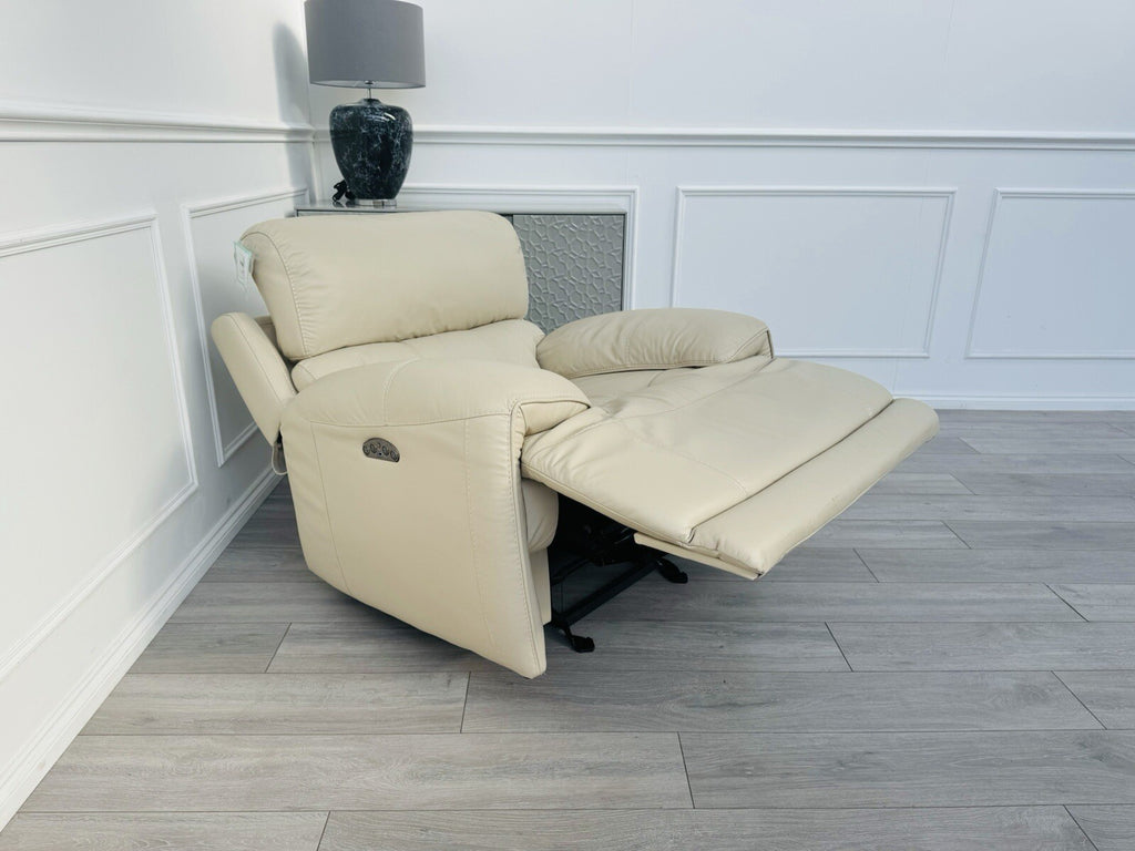 Furniture Village Link Beige Genuine Leather - This chair benefits from an electric power recliner, headrest and has a rocking feature as well as a USB port