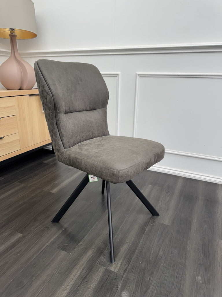 FV Loki Steel Grey Fabric Swivel Dining Chair With Handle (Choose Quantity)