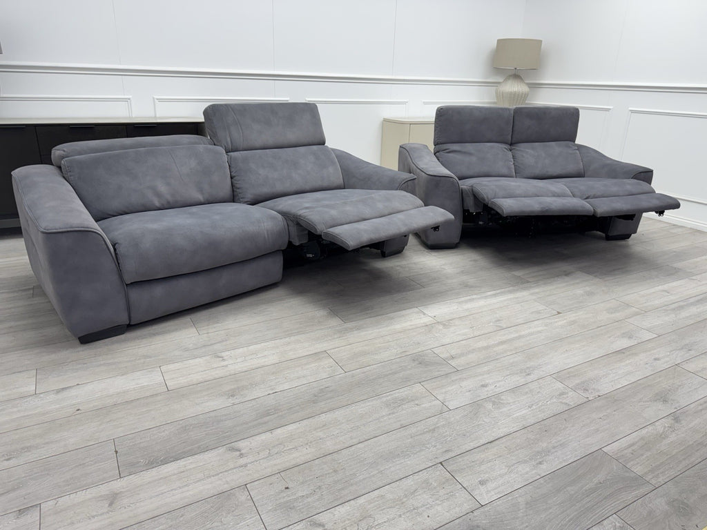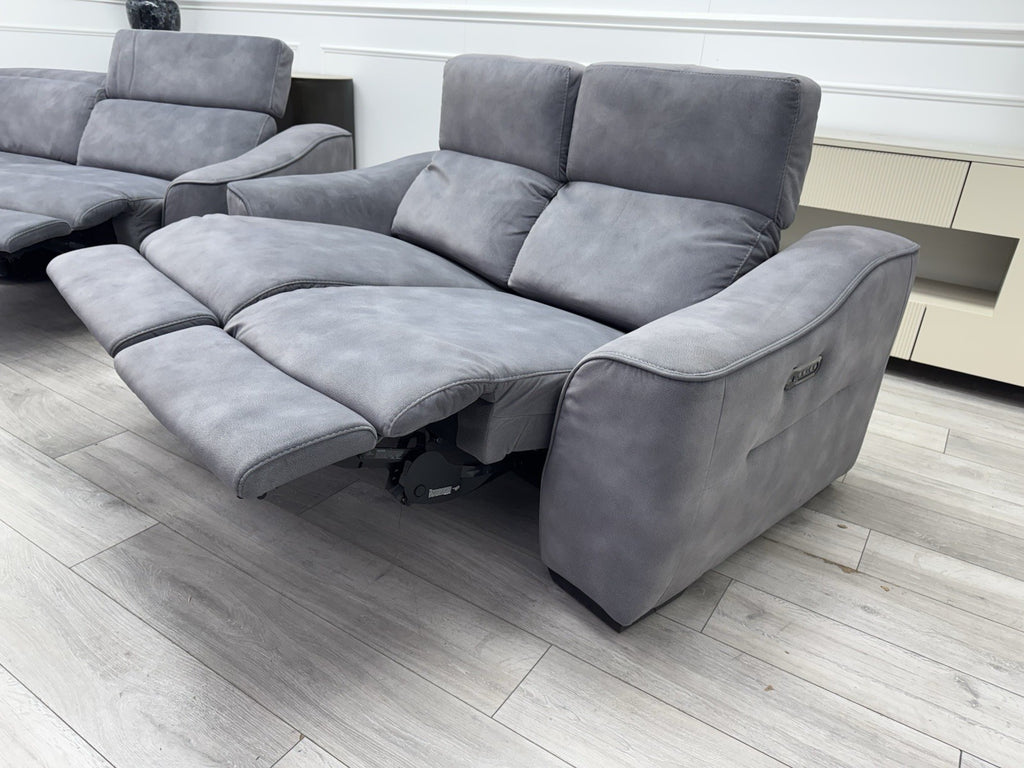 FV Xavier Grey Velvet 3+2 Seater Sofa Set Power Recliners & Headrests