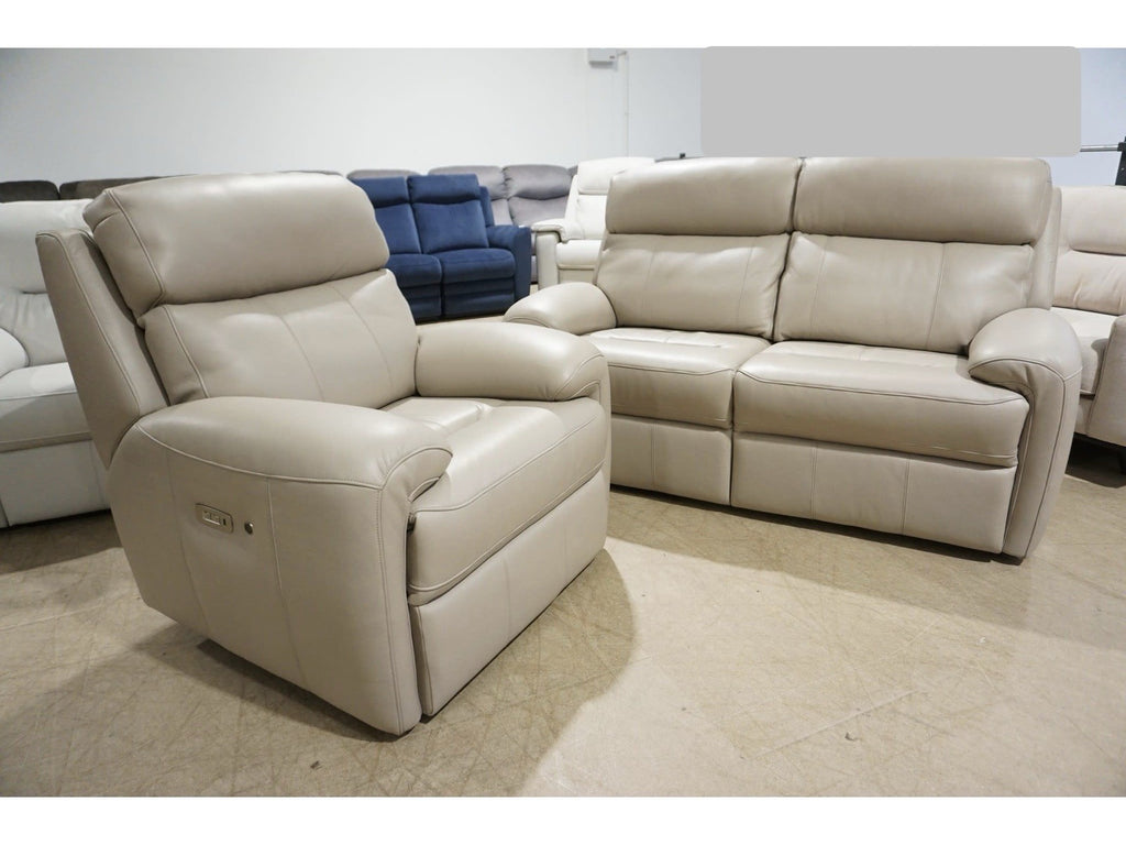 G Plan Hardy husk alabaster leather 2 seater heat sofa & Pwr Recliner Armchair