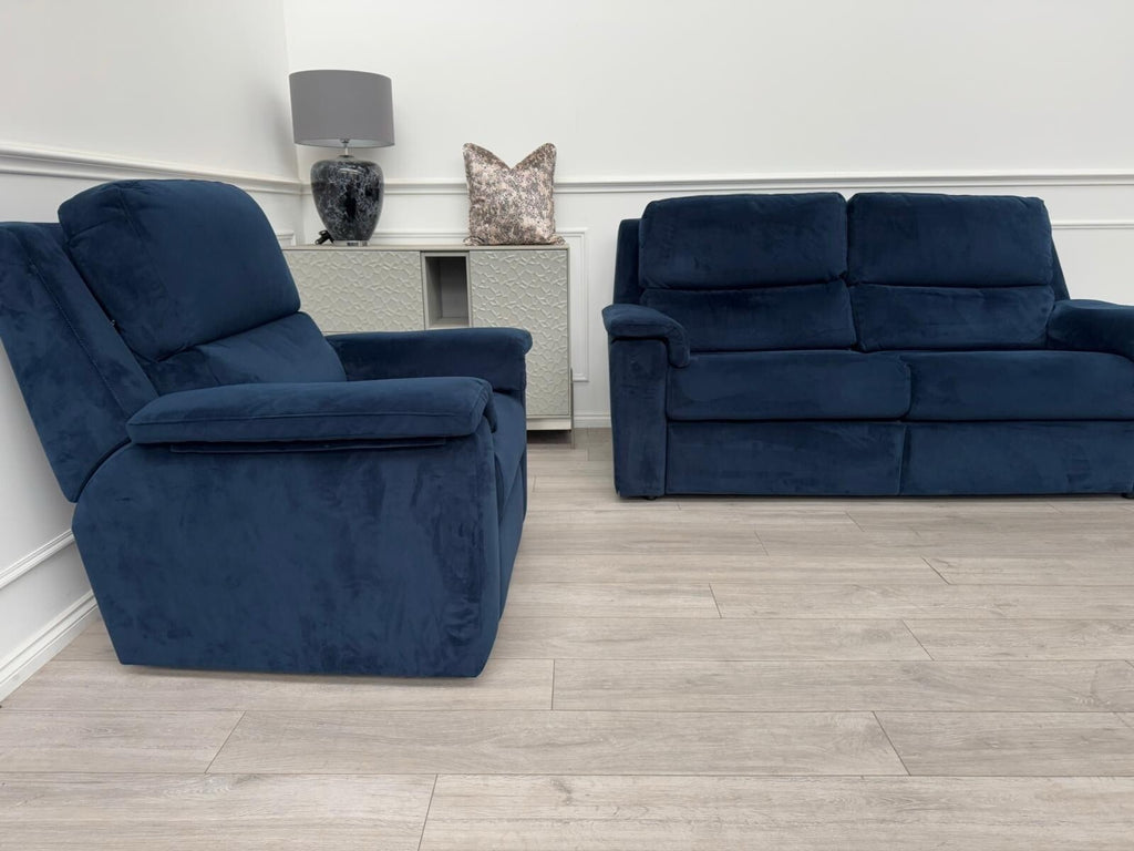 G Plan Harper Plush Indigo Premium Velvet Static 3 Seater + Armchair RRP £3,952