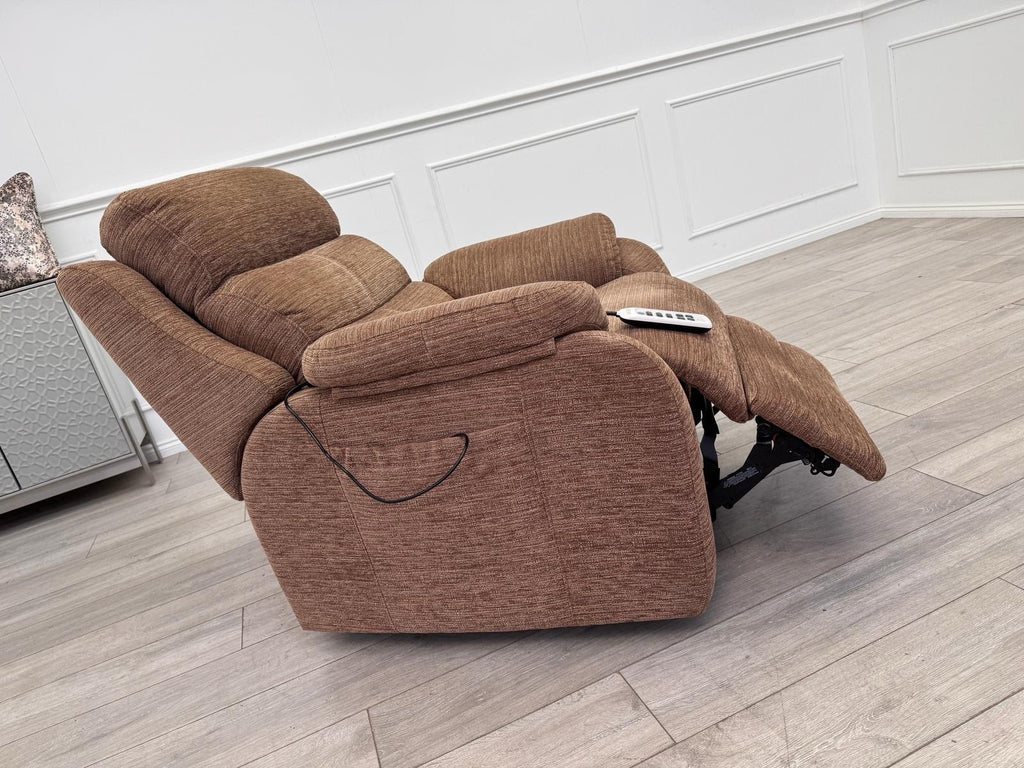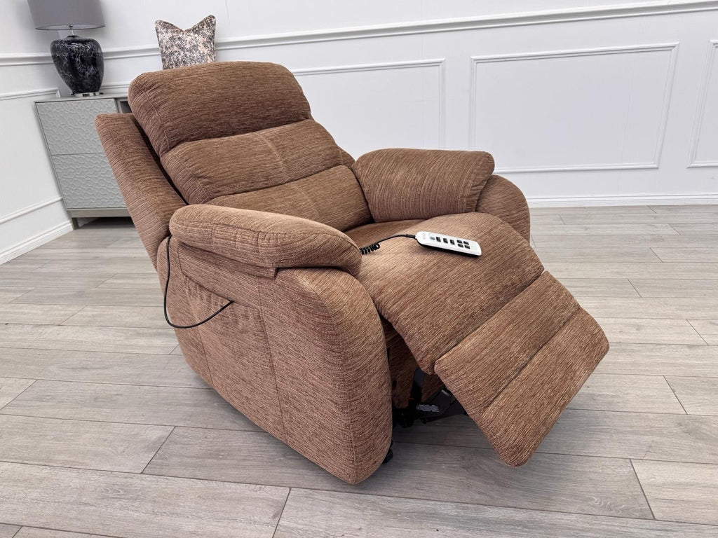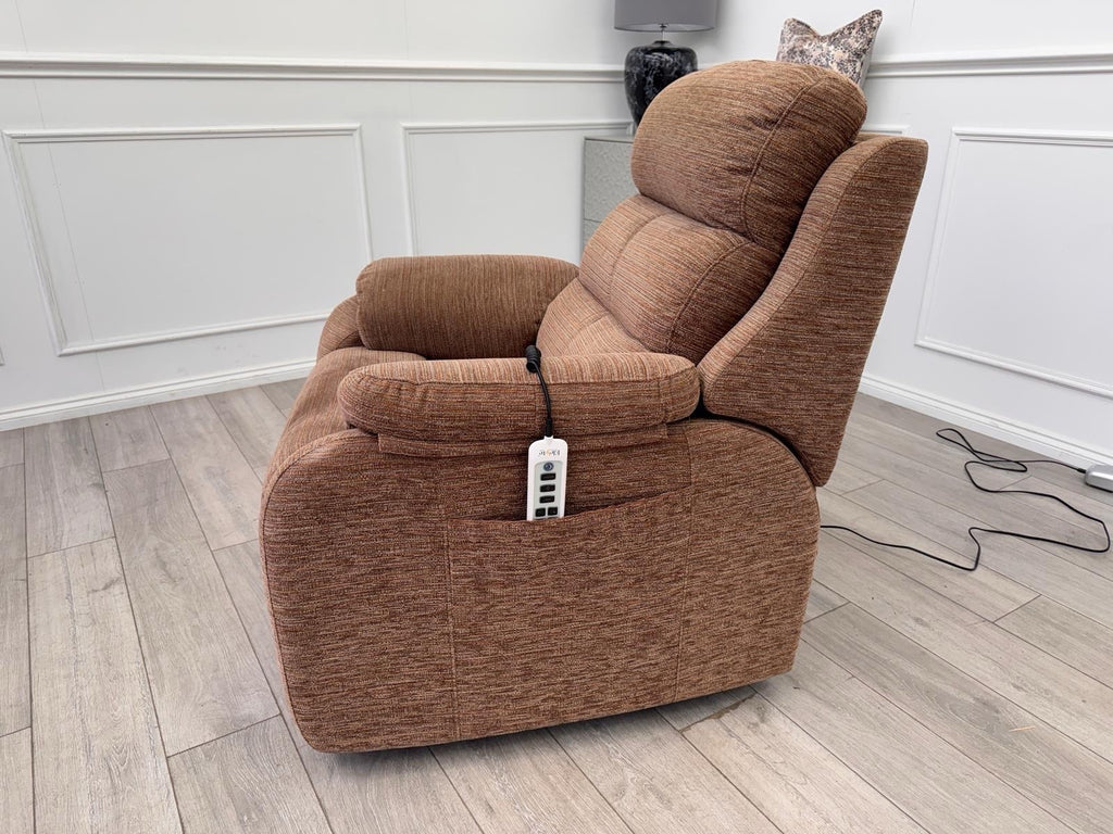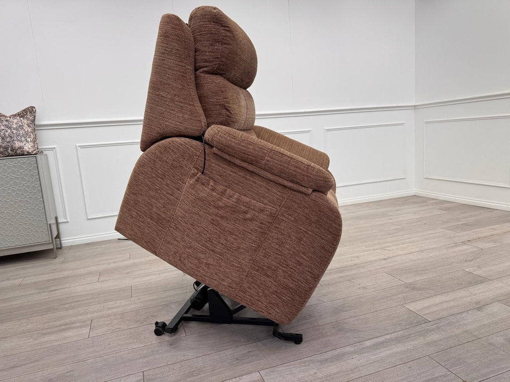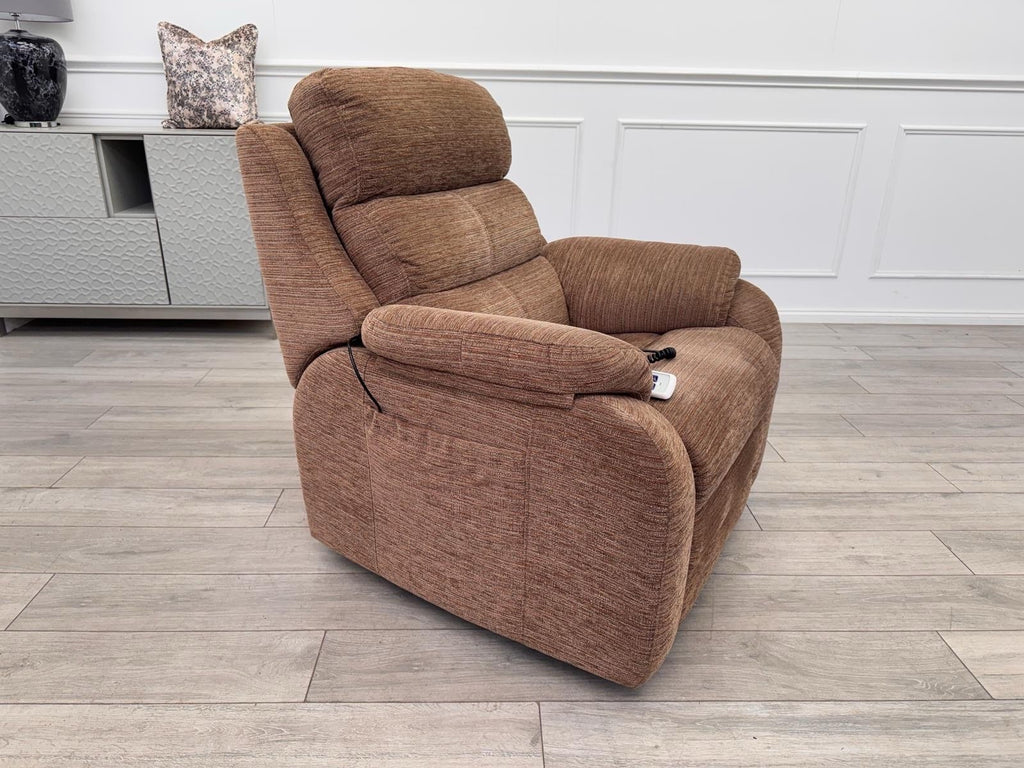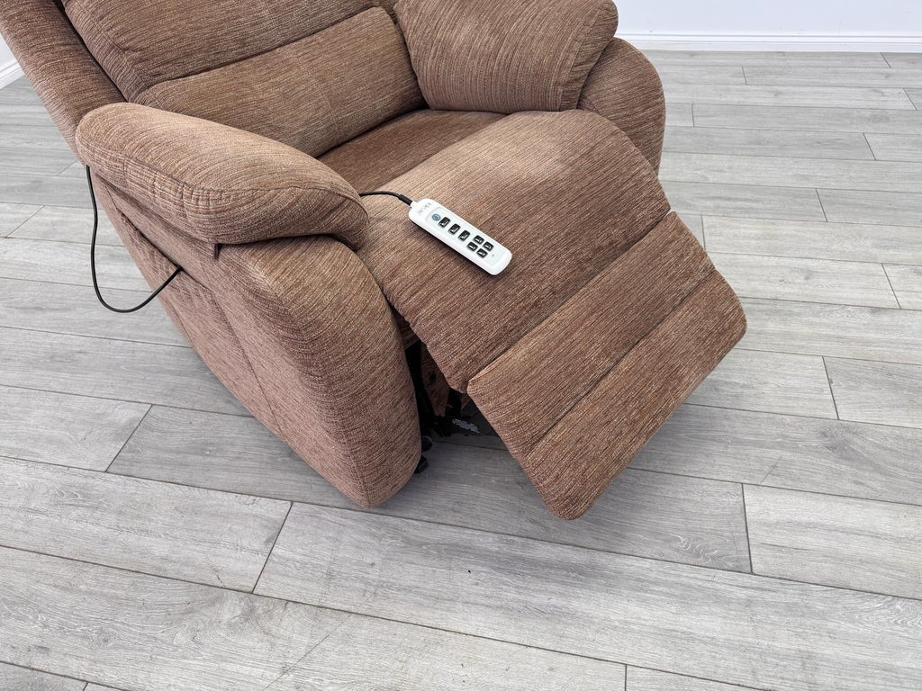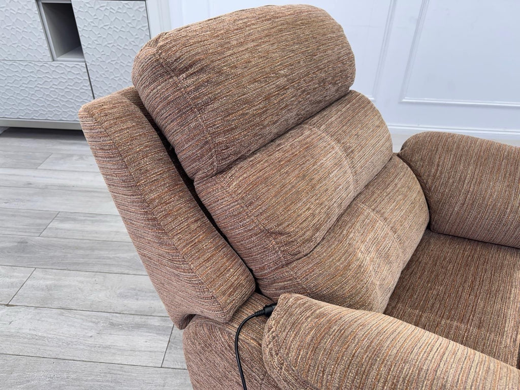 G Plan Kingsbury Brown Fabric Power Rise And Recliner Armchair Headrest Adjust