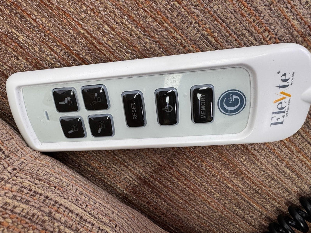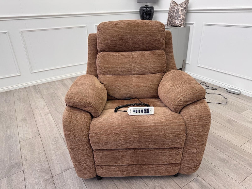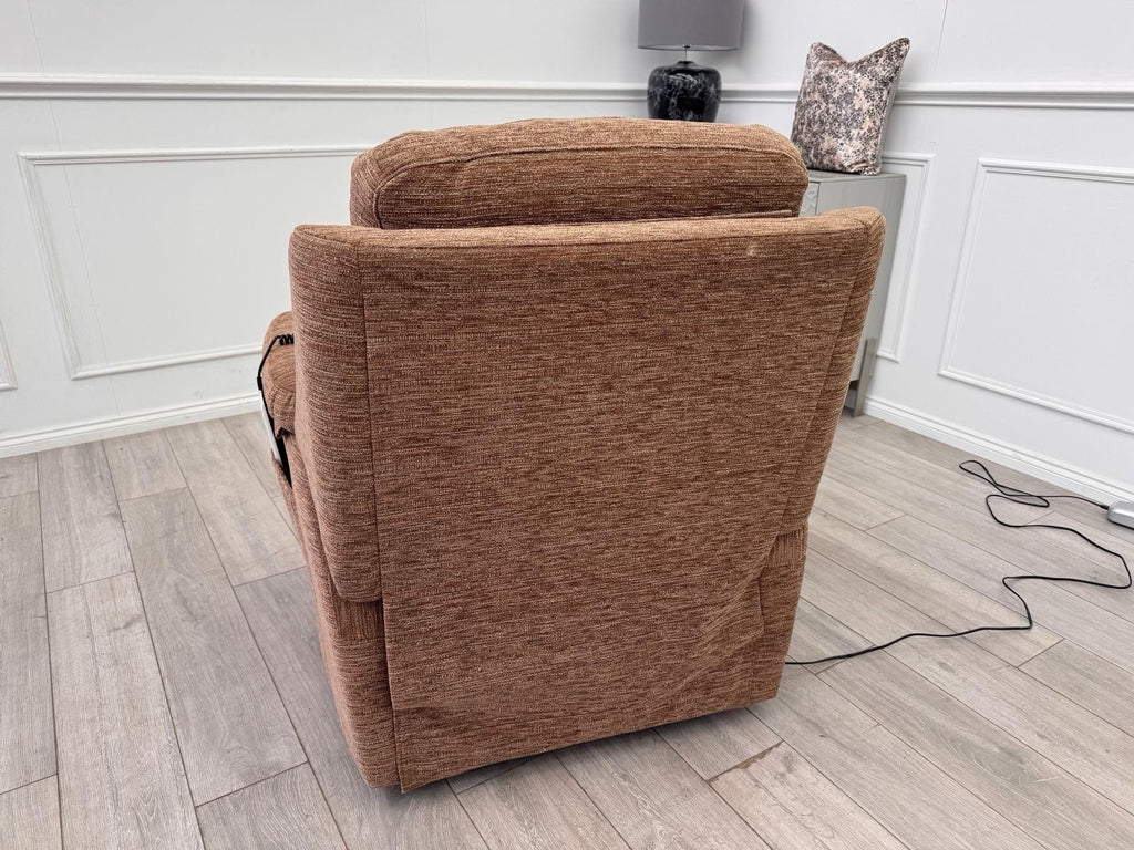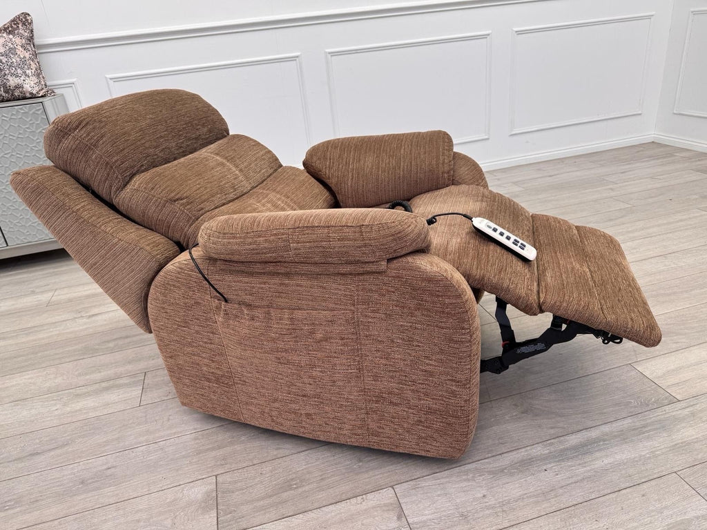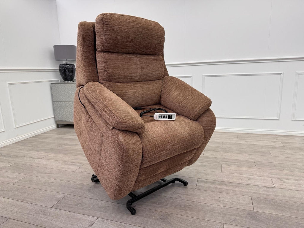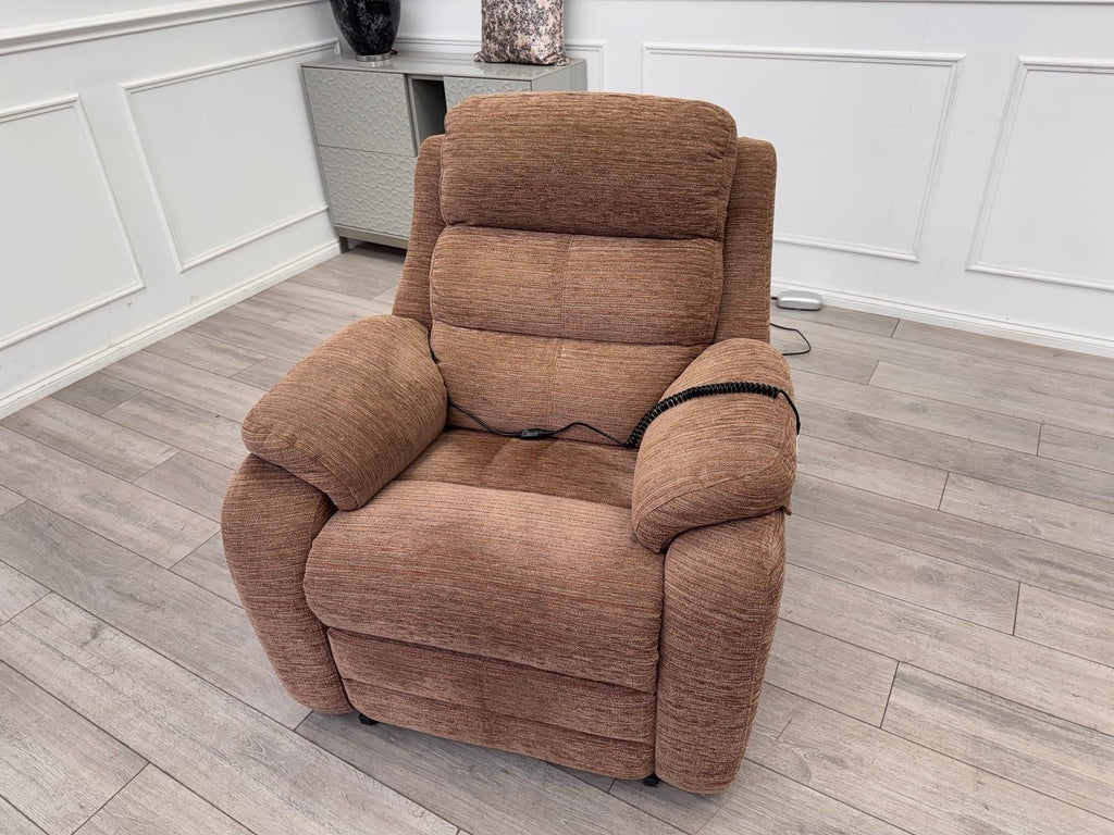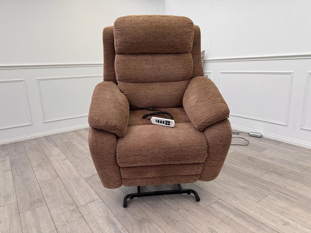 G Plan Kingsbury Brown Fabric Power Rise And Recliner Armchair Headrest Adjust