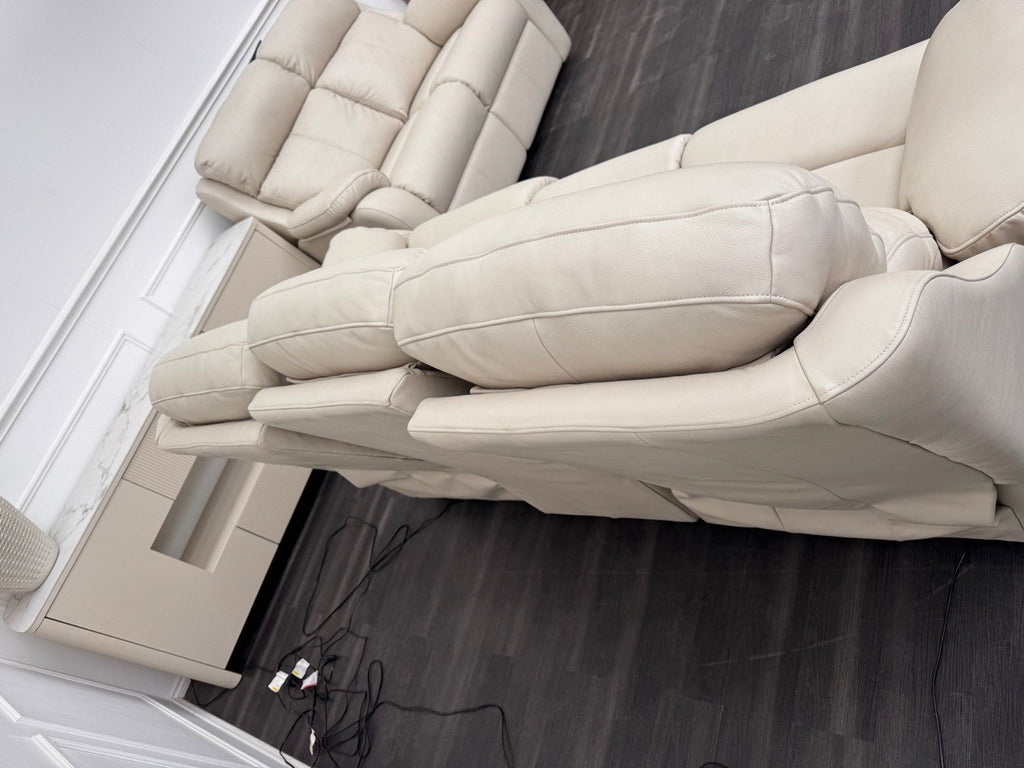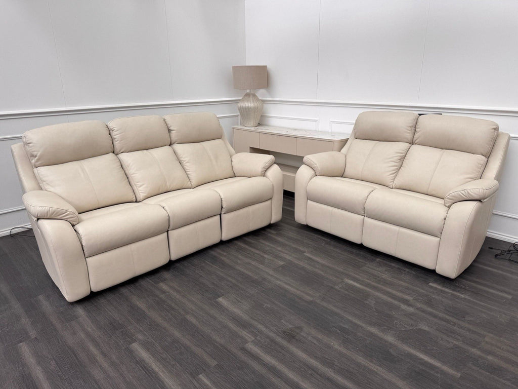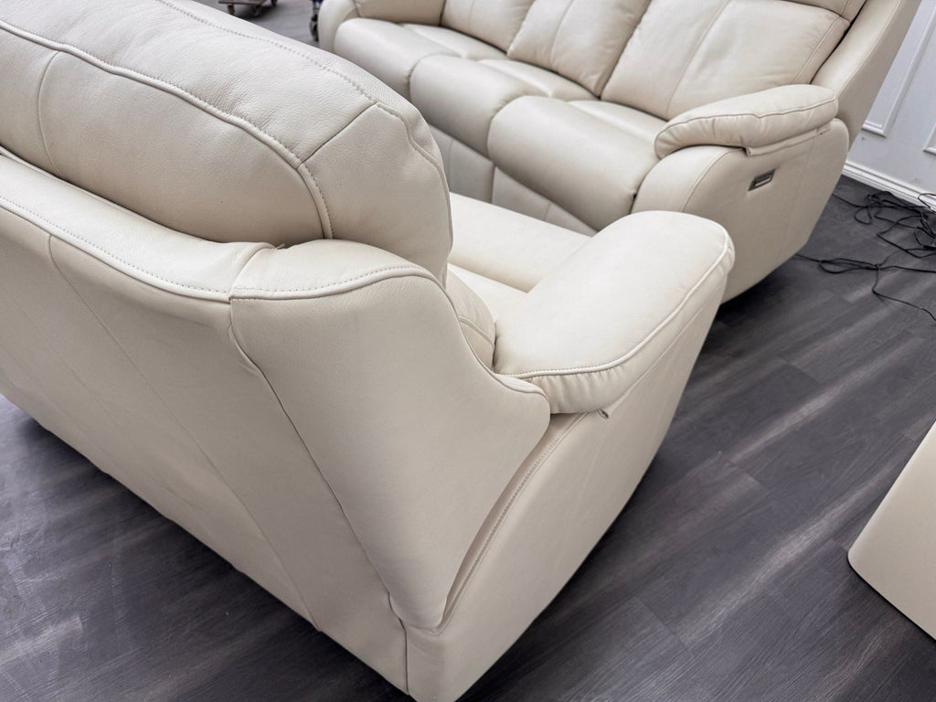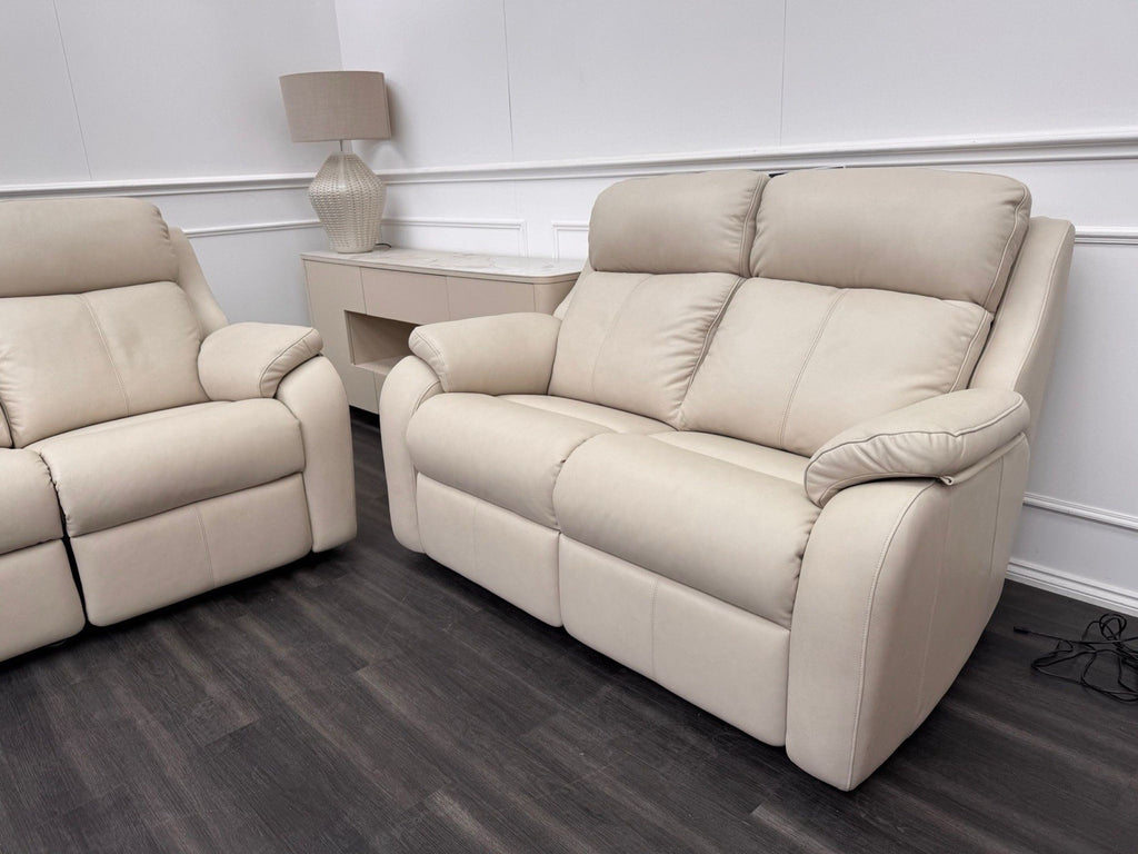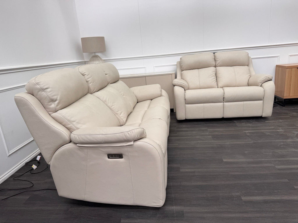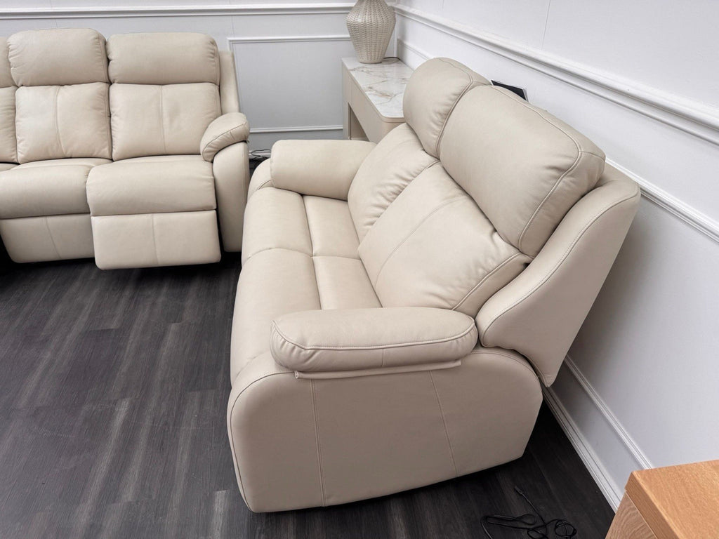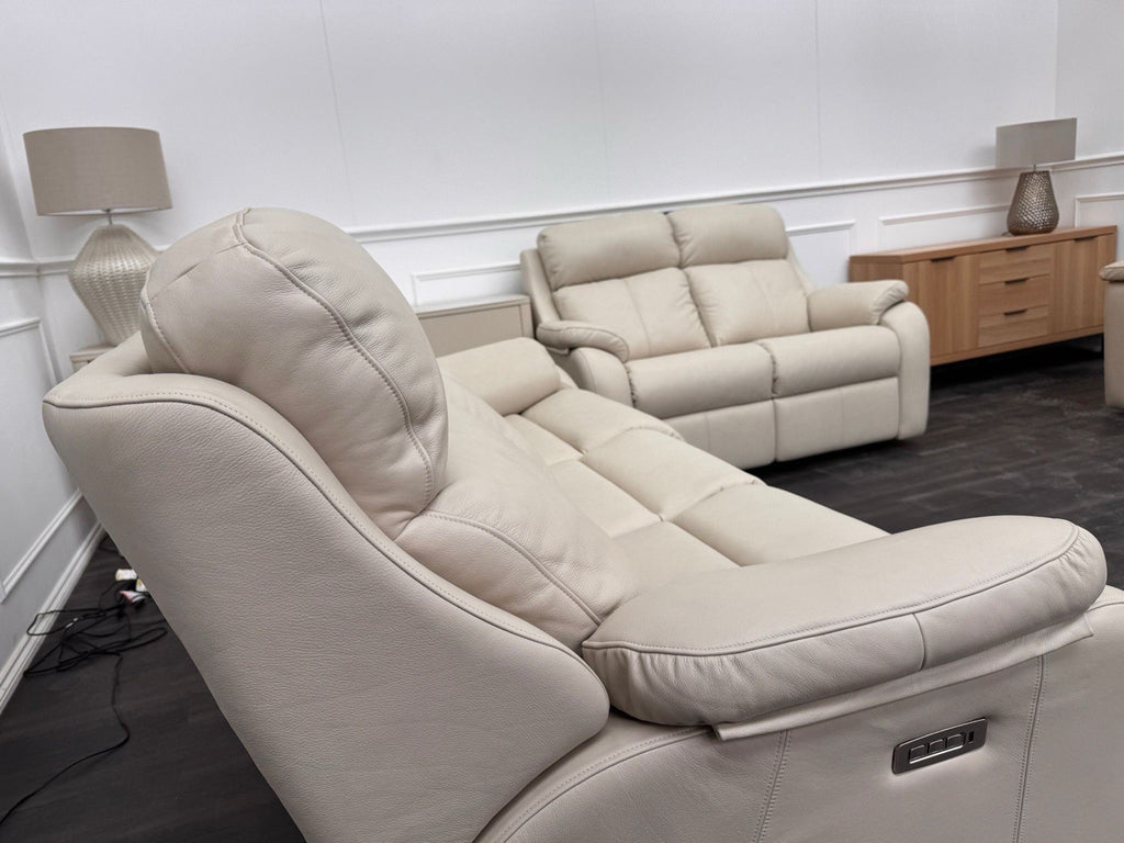 G Plan Kingsbury Cambridge Stone Leather Power Recliner 3 Seat + Static 2 Seat