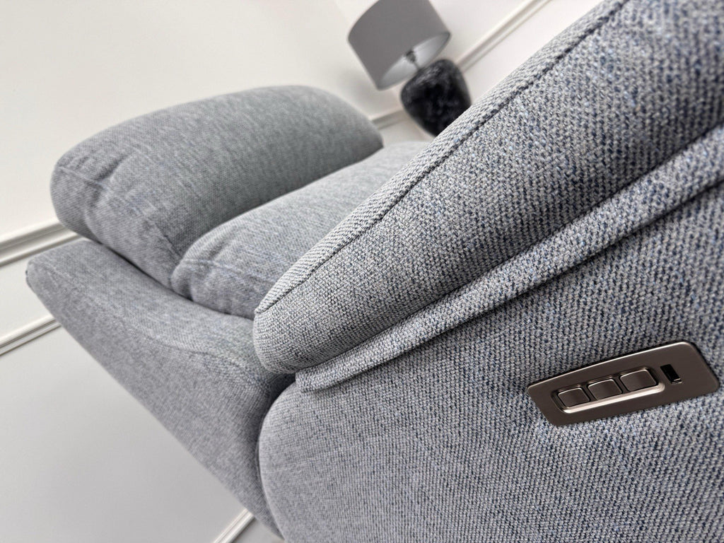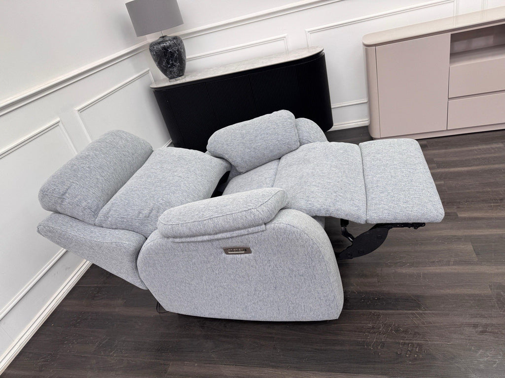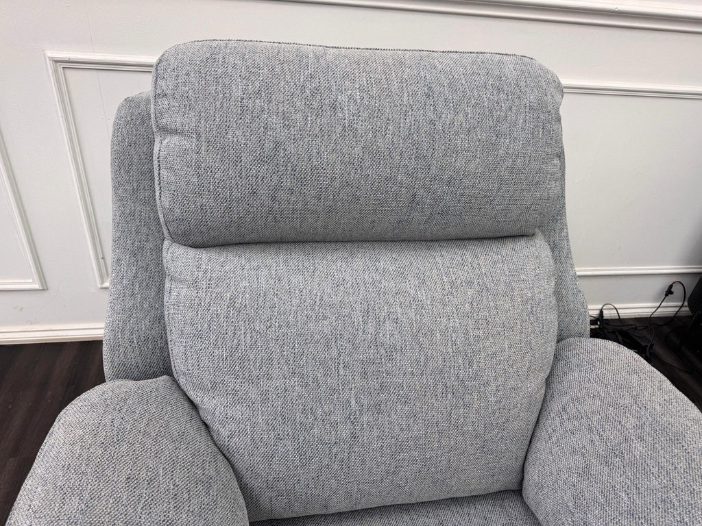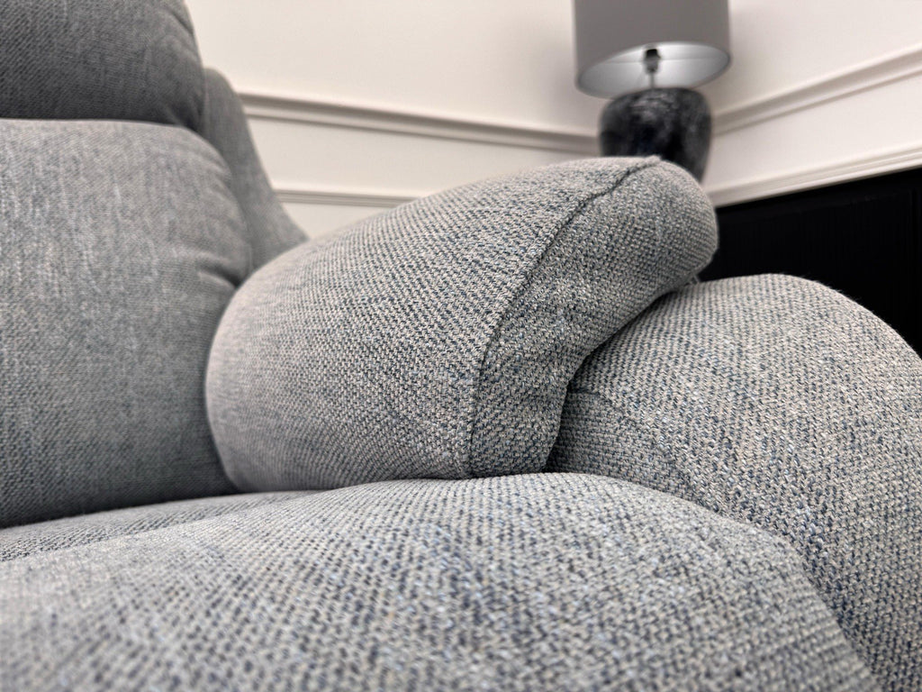 G Plan Kingsbury Power Recliner Armchair Woven Light Blue/ Grey RRP £2425