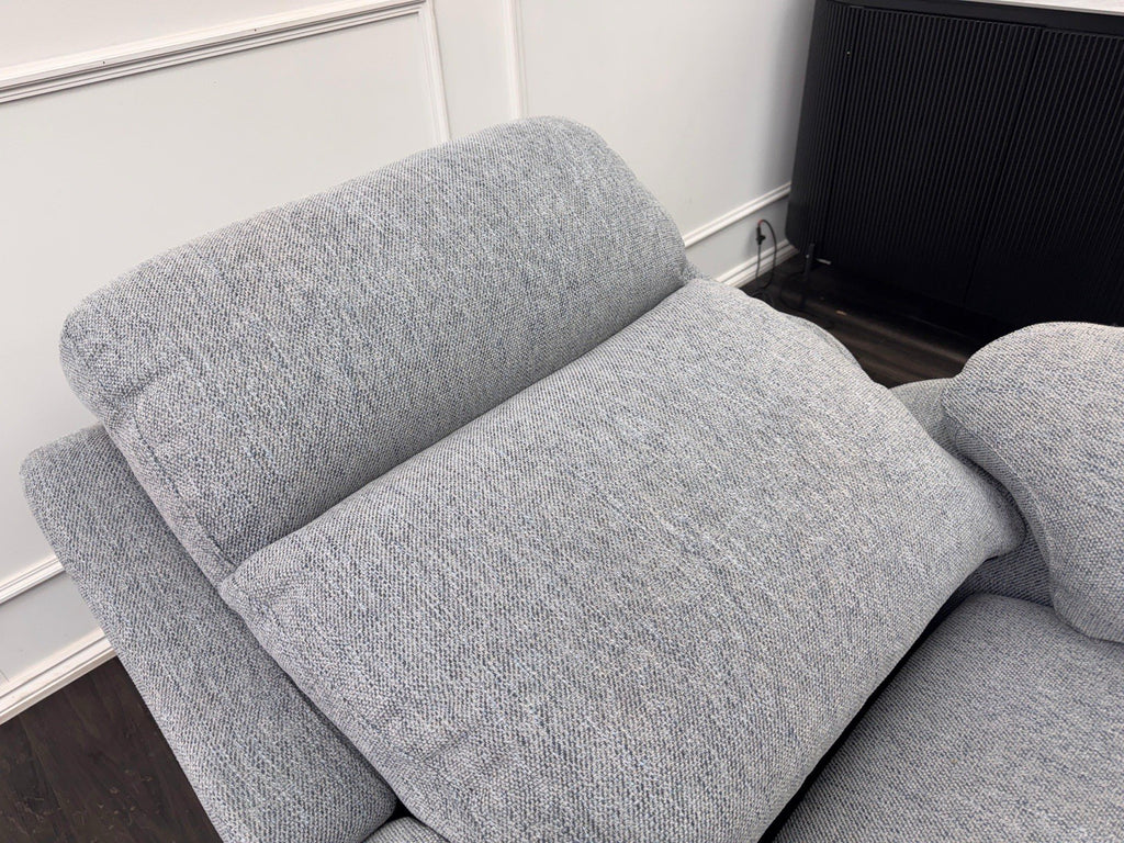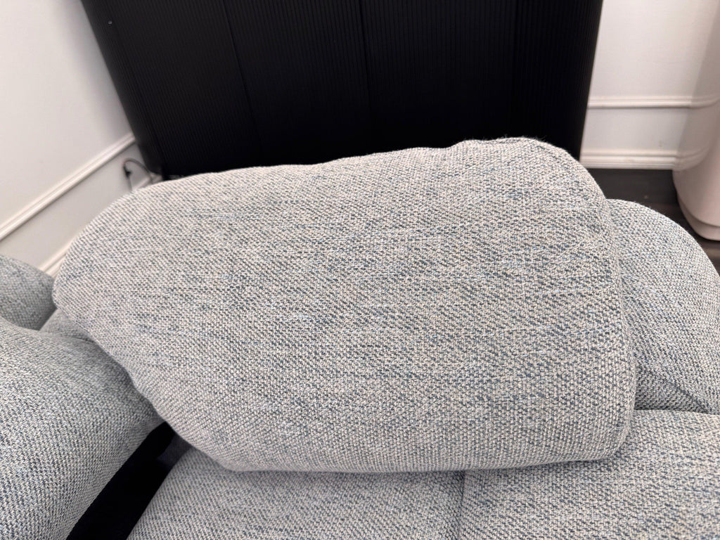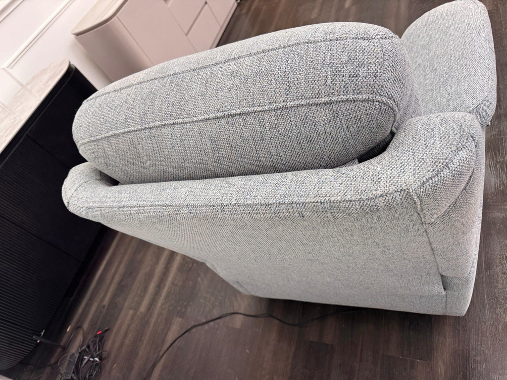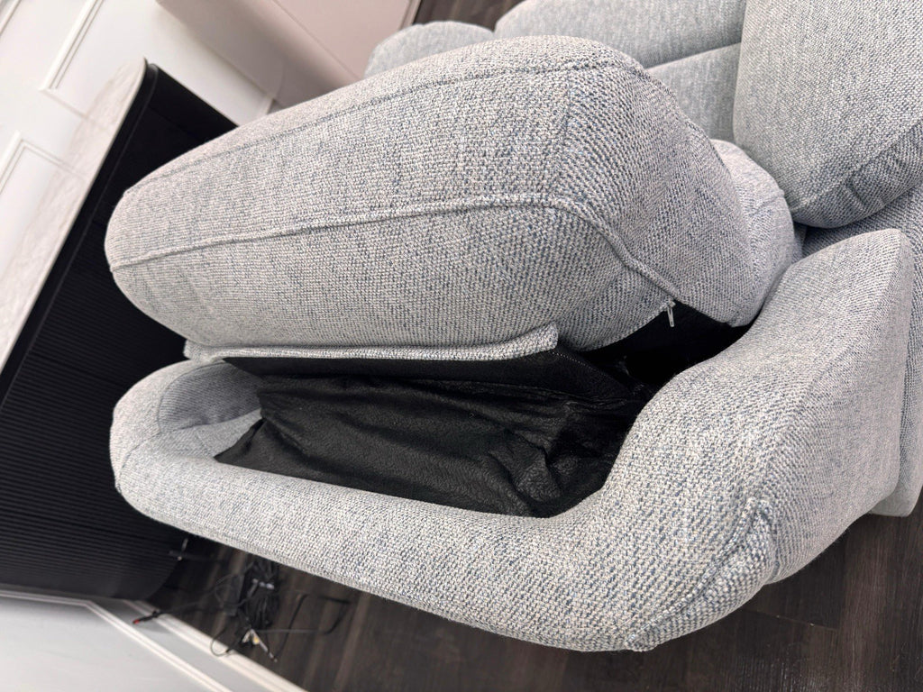 G Plan Kingsbury Power Recliner Armchair Woven Light Blue/ Grey RRP £2425